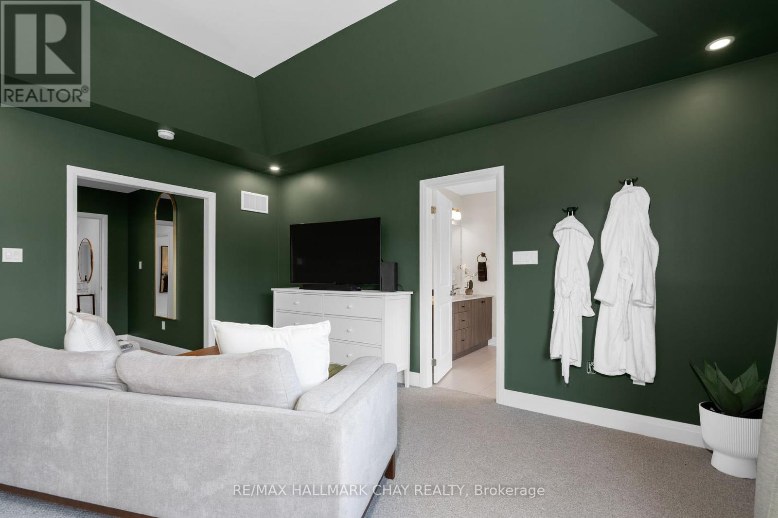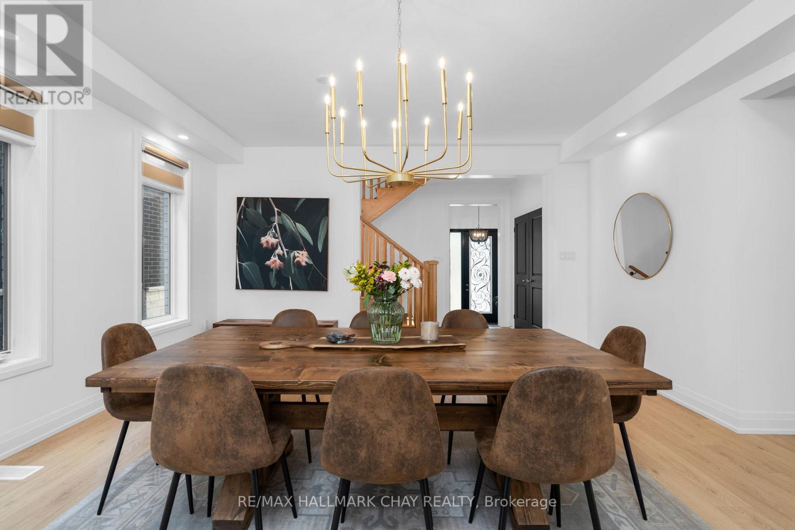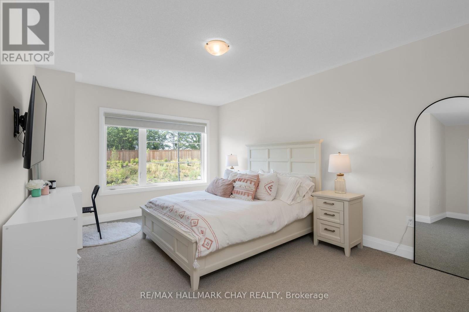 Welcome to 43 Calypso Avenue, Midhurst Valley - Springwater's Premier Family-Centric Community. This stunning 3,500 sq.ft. contemporary home blends the perks of new construction with the convenience of move-in readiness. Thoughtfully designed interiors go beyond builder's basics - tasteful décor, upgraded lighting, custom window treatments, and fully fenced yard are already in place. Step into a grand foyer with soaring 11' ceilings and upgraded 12" x 24" tile flooring. A versatile front "flex" room offers endless possibilities - home office, media room, or guest suite. The elegant dining area features a ship-lap accent wall and designer lighting, seamlessly connecting to the open-concept kitchen and family room. The chef's kitchen is a showstopper with extended-height cabinetry, quartz countertops, oversized island, and a Butler's Pantry for extra prep space and storage. The adjacent family room boasts expansive windows and a wood-paneled gas fireplace, creating a warm and inviting hub. Main floor highlights include a stylish 2-pc powder room, mudroom with built-in bench/storage, and direct access to the double garage. Hardwood staircase leads to the upper-level private space, where four spacious bedrooms each enjoy walk-in closets and private ensuites - as well as upper level laundry. The luxurious primary suite evokes resort vibes with a tray ceiling, sitting area, and spa-inspired ensuite featuring a stand-alone soaker tub and glass-walled shower. Situated in Simcoe County - with easy access to key amenities and commuter routes north to cottage country/south to the GTA. Everything a busy household might require is just minutes away - schools, parks, services, big box and boutique shops, fine and casual dining, entertainment, as well as the four season outdoor activities this area is known for - skiing, golf, hiking/biking trails, lake and waterfront seasonal fun! This turnkey home is exceptional in every way, and truly is a move in ready gem! Take a look tod (id:4555)