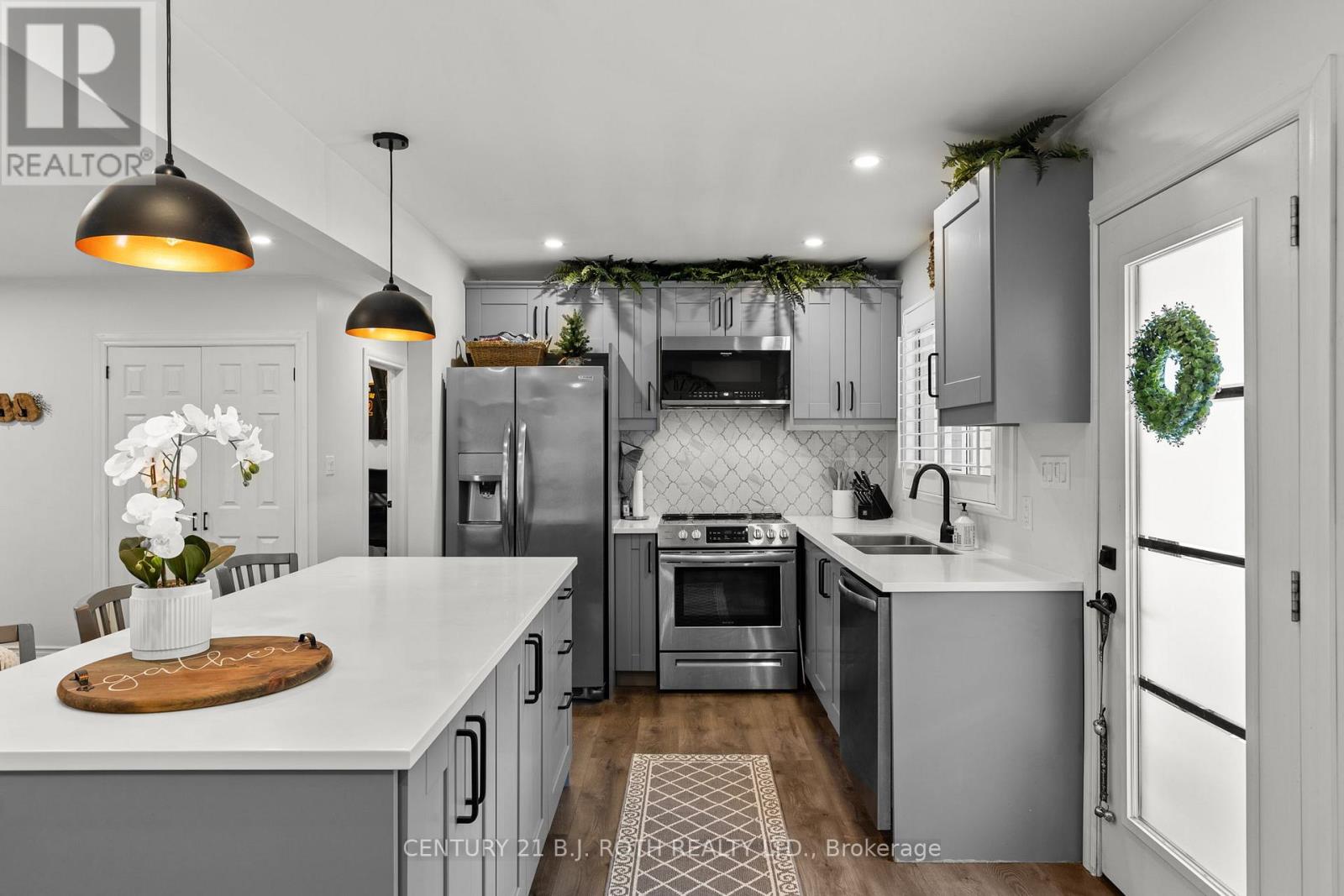 Presenting 1551 Gill Road, Springwater. This fully renovated open-concept bungalow sits on a spacious 60x363 ft lot in peaceful Midhurst, just minutes from the highway and Barrie amenities. The private yard offers no rear neighbors, updated inground pool with newer liner, concrete surround, pool shed, garden shed, and a relaxing hot tub. Parking for 8, including a paved driveway, provides plenty of space for boats, RVs, or trucks! Inside, enjoy modern updates (2020) including electrical, plumbing, insulation, drywall, furnace, A/C, on-demand water heater, and flooring. The kitchen features Frigidaire Gallery appliances, a stylish backsplash, and island seating for 4. The spacious living room includes a cultured stone gas fireplace. The primary bedroom boasts a walk-in closet and updated 3-piece ensuite with walk-in shower. Two additional bedrooms share a renovated 4-piece bath. Main floor laundry adds extra convenience. This beautifully updated home offers a perfect blend of modern comfort and serene outdoor living. (id:4555)