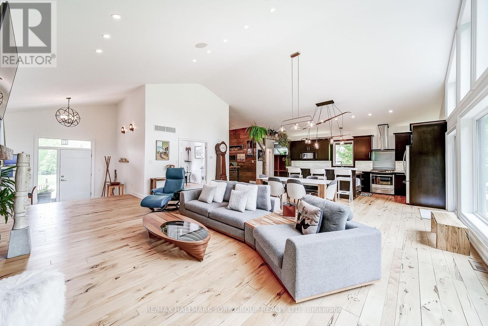 Custom-built raised bungalow showpiece set on a private half-acre lot in the desirable Snow Valley area of Springwater, offering more than 3,600 sq ft of finished living space just minutes from the City of Barrie. The open-concept main level features soaring cathedral ceilings, a wall of windows, and 3/4' hickory flooring throughout. The thoughtfully designed kitchen includes custom cherry cabinetry, a large centre island, and generous counter space-ideal for everyday living and entertaining. The primary bedroom offers a private 5-piece ensuite and walk-in closet. A versatile additional main-level room with custom built-in shelving provides flexible space for a home office, music room, or playroom. The bright lower level includes three bedrooms and a spacious open living area, all with extra-large windows creating an above-grade feel. An oversized two-car garage provides excellent storage and workspace. Enjoy a wraparound deck with covered and open sections, extending main-floor living outdoors, surrounded by a treed and private yard. Ideal for four-season recreation with Snow Valley Ski Resort nearby, walking trails steps from the door, Simcoe County Forest trails minutes away, a golf course two minutes away, and easy access to biking, hiking, snowshoeing, and cross-country skiing. A wonderful opportunity to enjoy peace of mind, comfort, and community in an inviting home! (id:4555)