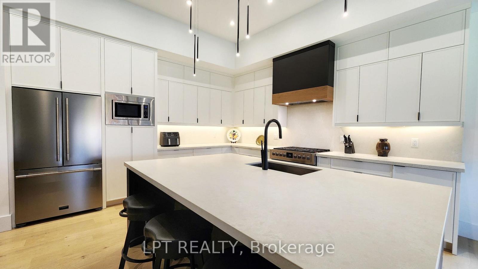 Perfectly Located In One Of Springwater's Most Prestigious And Sought-after Neighbourhoods, This Stunning Modern Bungalow Offers Upscale Living With A Peaceful Country Feel-Just Minutes From Snow Valley Ski Resort, Vespra Hills Golf Club, And Barrie Hill Farms. Set Within A Quiet Enclave With No Through Streets, The Area Is Surrounded By Forest And Scenic Trails, Ideal For Hiking, Biking, And Daily Walks, All While Enjoying Minimal Traffic And Exceptional Privacy. From The Moment You Arrive, The Home's Striking Exterior Impresses With Contemporary Brickwork, Natural Wood Accents, And Professional Landscaping. A Covered Front Porch Provides A Welcoming Place To Relax, While The Expansive Driveway And A Triple Car Garage With A Car Lift Making Room For 4 Vehicles. Inside, The Bright Open-concept Layout Is Designed For Both Everyday Comfort And Entertaining. The Custom Kitchen Is A True Showpiece, Featuring Built-in Appliances, Sleek Cabinetry, A Large Centre Island With Seating, And Impressive Statement Lighting. Oversized Windows Flood The Space With Natural Light And Showcase Serene Views Of The Surrounding Greenery. The Living And Dining Areas Flow Seamlessly, Anchored By A Stunning Linear Gas Fireplace That Adds Warmth And Architectural Appeal. Hardwood Flooring Runs Throughout, Except in the Basement Bedrooms And Theatre Room, Which Are Comfortably Finished With Carpet. The Main Floor Offers Three Spacious Bedrooms And Three Full Bathrooms, Including A Tranquil Primary Suite With A Spa-inspired Ensuite Featuring A Freestanding Tub, Dual Vanity, And Modern Fixtures. The Fully Finished Basement Expands The Living Space With Two Additional Bedrooms, A Full Bathroom, A Dedicated Theatre Room, And A Wet Bar-ideal For Entertaining, Guests, Or Extended Family Living. Thoughtfully Designed Outdoor Spaces With Landscaped Lawns, Covered Seating, And Year-Round Privacy. A Perfect Blend Of Modern Style, Comfort, And Nature --- A Must-See Home You Won't Want To Miss. (id:4555)