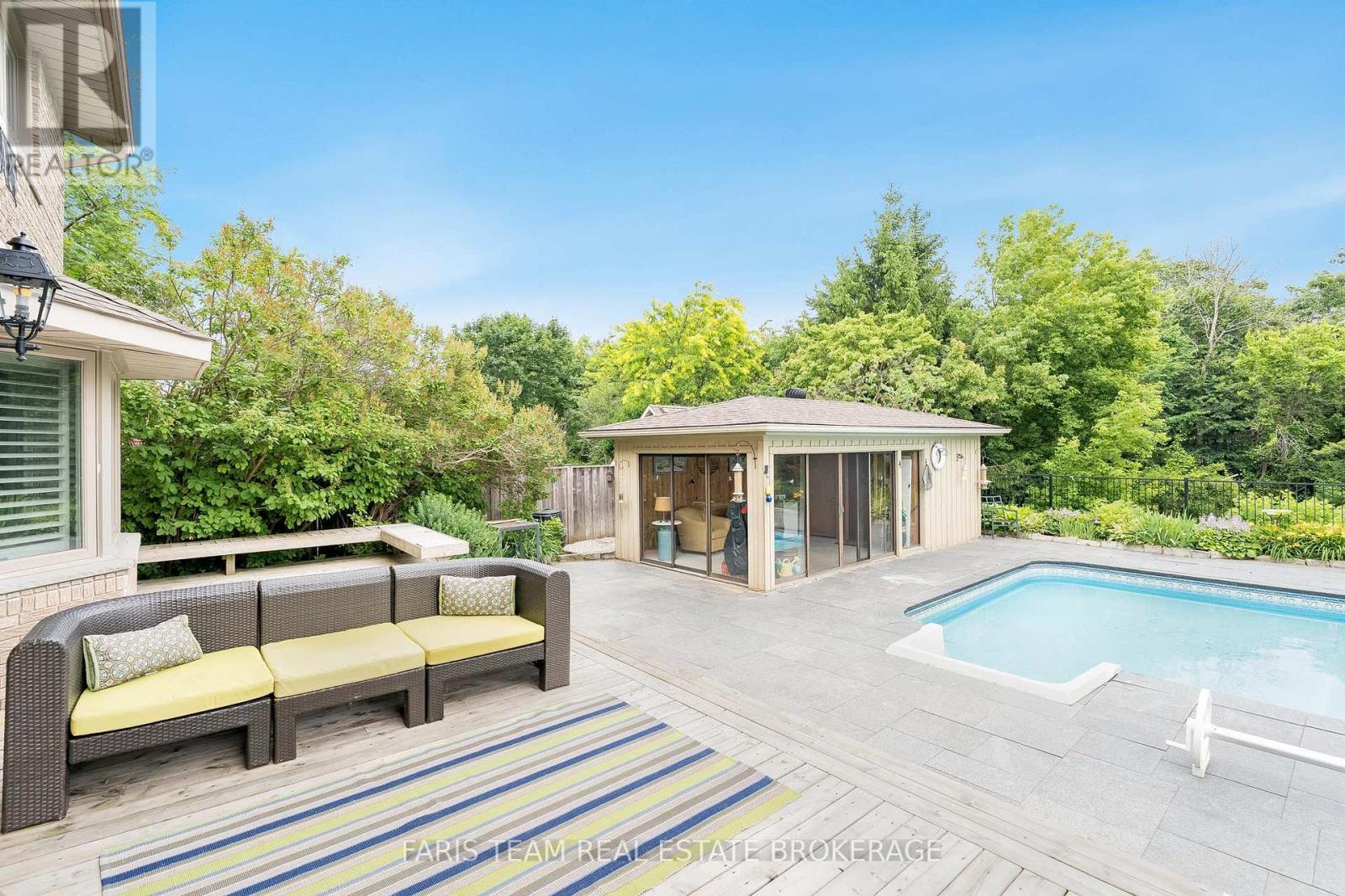 Top 5 Reasons You Will Love This Home: 1) Step into luxury living in the heart of beautiful Midhurst with this stunning executive residence, ideally suited for large or multi-generational families, nestled on a premium lot backing directly onto the tranquil Willow Creek and complete with extensive renovations and two spacious primary bedrooms 2) Your personal paradise awaits in the backyard, a private, serene oasis designed for relaxation and entertaining, where you can take a dip in the inground saltwater pool, unwind in the custom pool house featuring a sauna, or host unforgettable gatherings on the sprawling deck complete with an awning for shade and comfort 3) The heart of the home features an updated chefs kitchen outfitted with granite countertops, stainless-steel appliances, and a bright eat-in area, perfect for casual mornings, while a separate formal dining room provides an elegant space for entertaining guests or hosting holiday meals 4) Warmth and character define the main living areas, highlighted by a stunning stone gas fireplace and beautiful French doors that add a touch of timeless elegance, alongside a winding staircase leading to the upper level, enhancing the home's sense of grandeur and charm 5) Enjoy the serenity of no neighbours in front or behind, your home feels like a retreat in the heart of cottage country, surrounded by nature, the setting is quiet, peaceful, and picturesque, with a charming front porch welcoming you home and a backyard that feels like your own private resort. 3,623 above grade sq.ft. plus a finished basement. (id:4555)