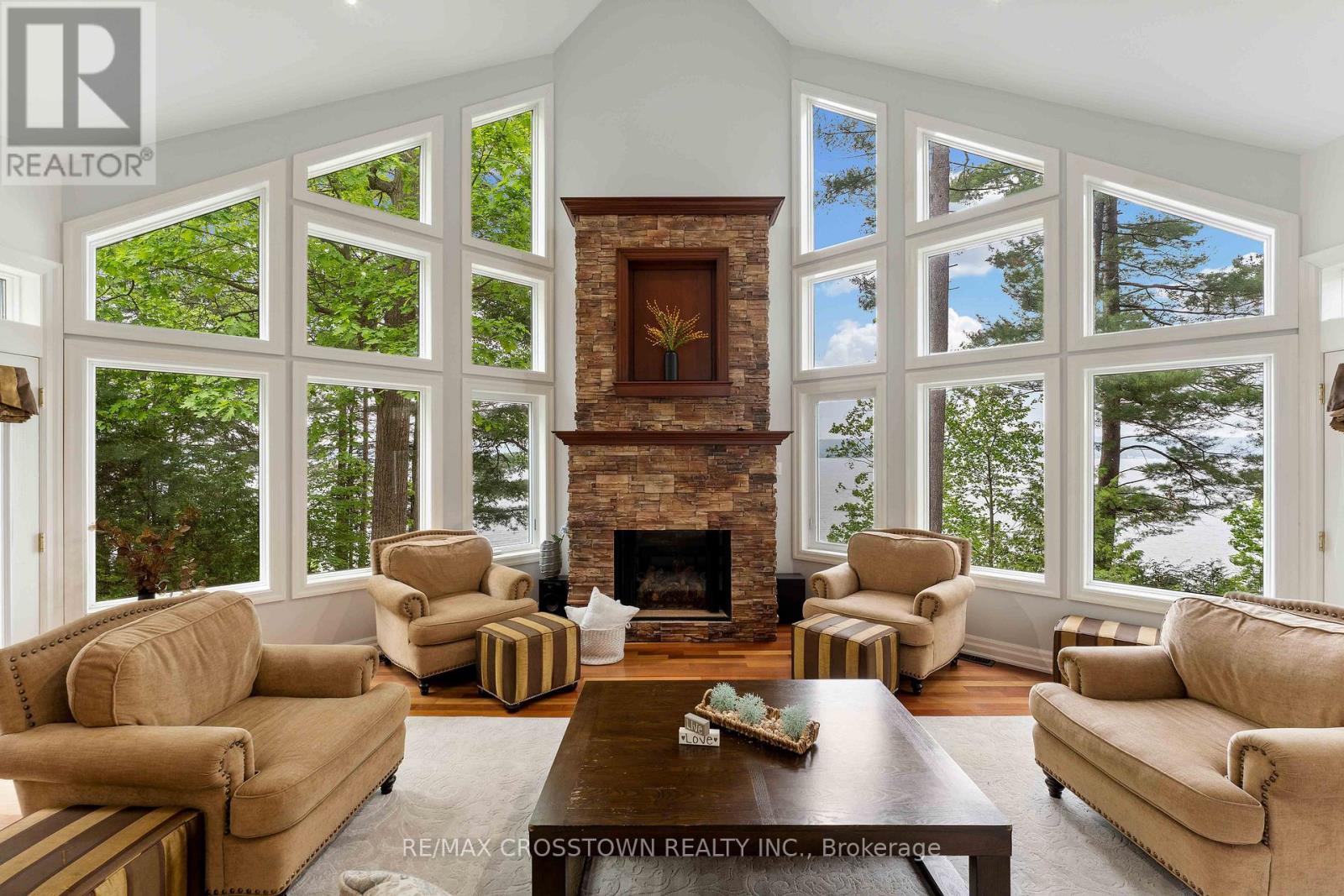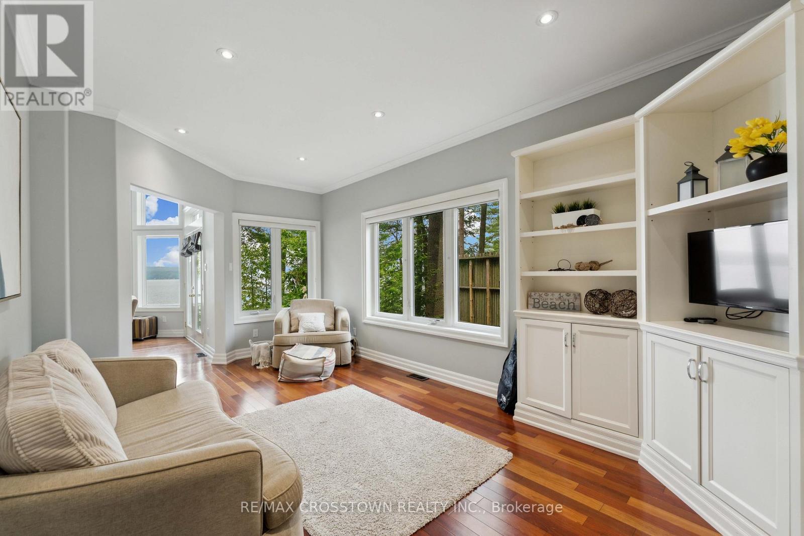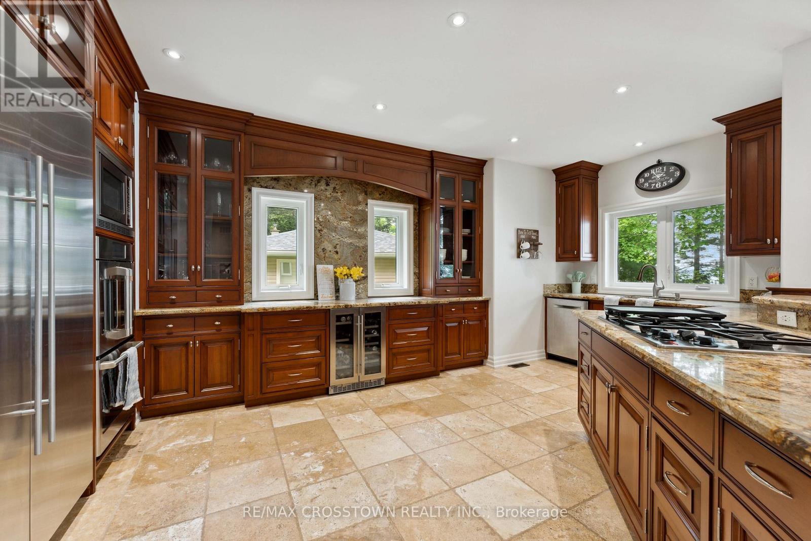 Experience refined waterfront living at this exceptional retreat on South Orr Lake. Thoughtfully designed to blend elegance, comfort, and natural beauty, this stunning home captures panoramic lake views from its prime shoreline setting. FEATURES: The kitchen is both stylish and functional, with custom cabinetry, stone countertops, and premium stainless steel appliances. The open-concept layout flows effortlessly into the dining and living areas, all filled with natural light from expansive windows that frame the lake beyond-perfect for entertaining or relaxed everyday living.The upper level offers generously sized bedrooms ideal for family or guests, along with a well-appointed 4-piece bathroom. The primary suite serves as a private retreat, complete with a custom walk-in closet with built-in shelving and a spa-inspired 4-piece ensuite designed for comfort and relaxation.The expansive lower level is an entertainer's dream, offering a bright second living space with oversized windows, a dedicated games area with pool table, and an elegant wet bar for hosting. Multiple walk-outs provide seamless indoor-outdoor flow, while a conveniently located laundry room adds everyday practicality. Set within a prime lakeside location, the home is complemented by cultured stone landscaping that enhances its polished, high-end appeal-making this a rare opportunity to enjoy sophisticated waterfront living in a truly tranquil setting. (id:4555)
