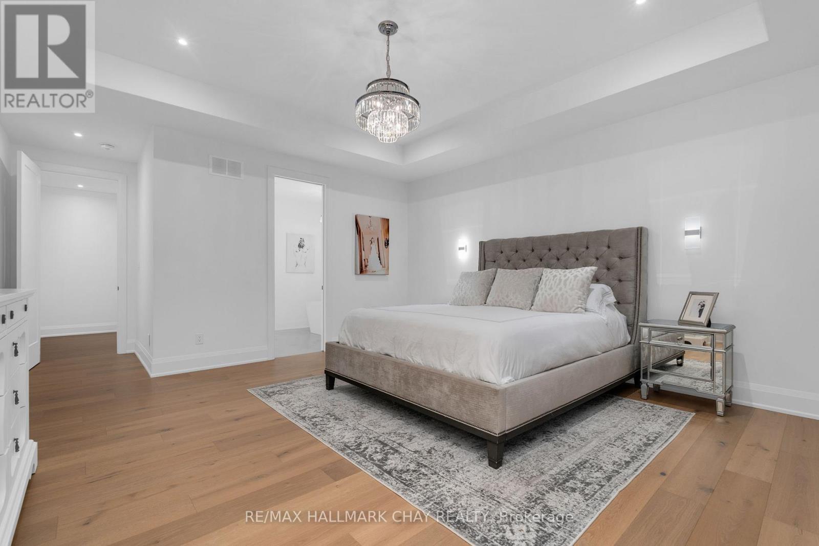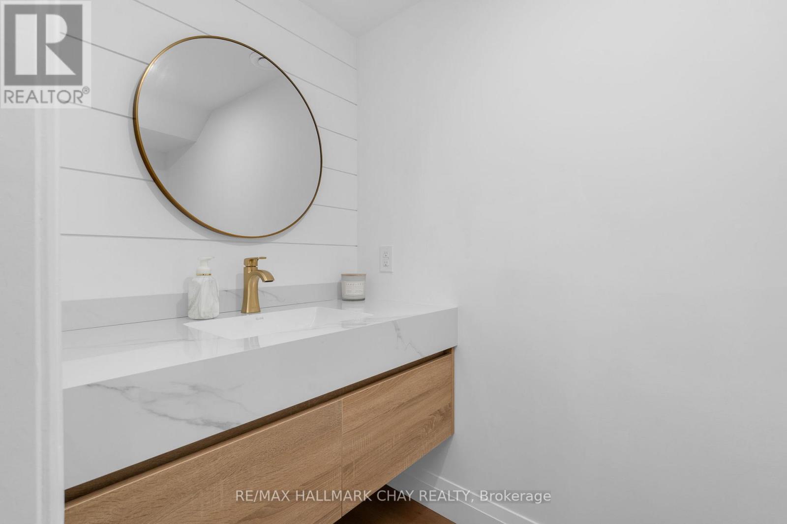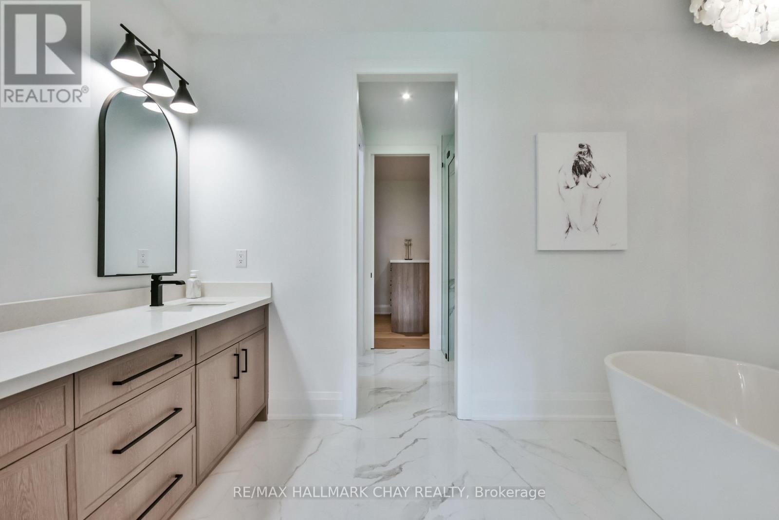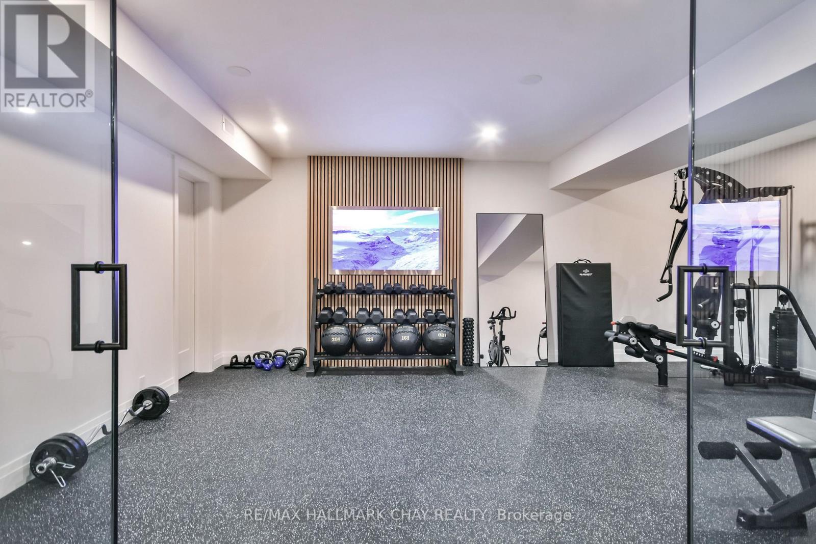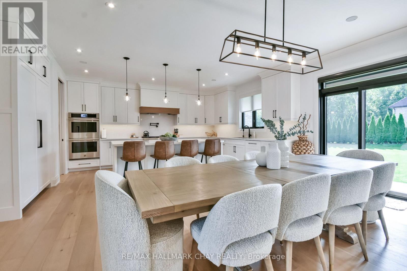PRESENTING luxury, lifestyle, privacy, and an exquisite location-all embodied in this stunning custom executive residence in Springwater's prestigious, family centric Cameron Estates. Set on a premium half acre corner lot, this exceptional bungalow offers 5,700+ sq.ft. of finished living space and an oversized 133'x187' private backyard framed by mature cedars and one of the community's largest reclaimed greenspaces. With over $550K in recent updates/upgrades, this home delivers an elevated living experience inside & out. The main level showcases a designer Chef's kitchen with expansive prep space, oversized island with integrated beverage centre, premium Jenn Air 6 burner + griddle range, dual ovens, Dacor fridge/freezer, and walk in pantry with prep sink. Great room impresses with a striking 63" floor to ceiling gas fireplace, vaulted ceilings, and wall to wall views of the private rear yard. Additional main floor features include a dedicated home office, guest 2 pc bath, spacious laundry/mudroom, and three generous bedrooms-each with its own ensuite and walk in closet. The full, finished lower level doubles the living space and continues the home's refined neutral palette. Purpose built for relaxation and entertainment, this level features a spa inspired steam room, home gym with heated padded flooring, guest suite, custom four queen designer bunk room, rec room with linear fireplace and built ins, games room, home bar, office, soundproof gaming room, and additional 2 pc bath. Energy efficient water heated flooring runs throughout. Smart home conveniences include whole home audio (14 zones, 7 Sonos amps, 37 speakers), remote electric blinds, 7 camera security system, wall mounted TVs, and Bell Fibre internet. Car enthusiasts will appreciate the oversized 1,600+ sqft heated 5 vehicle garage, complete with epoxy floors, storage, EV ready wiring, built in audio/TV, pressure washer system, direct basement access with mud room, and rear garage door to the backyard. (id:4555)
