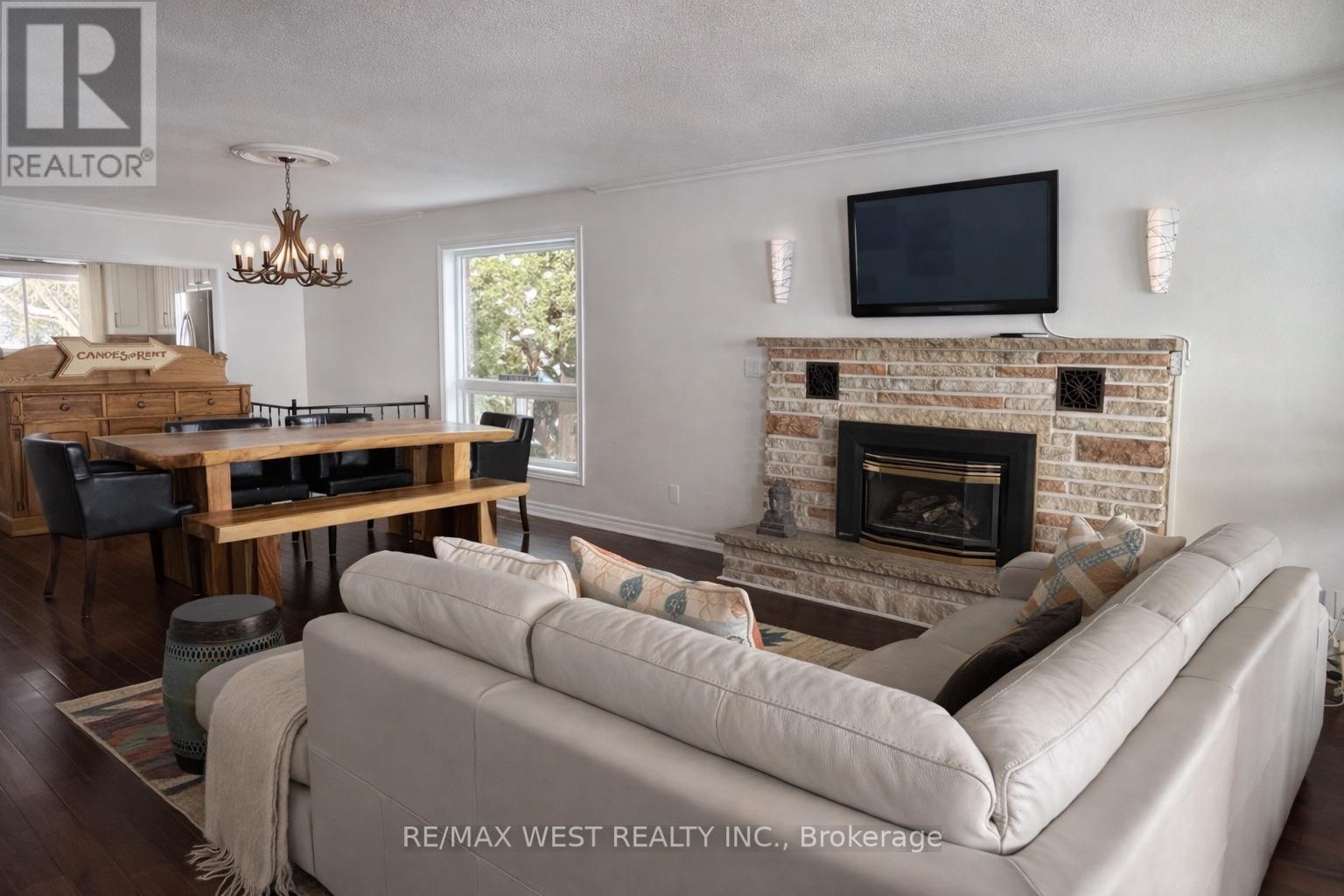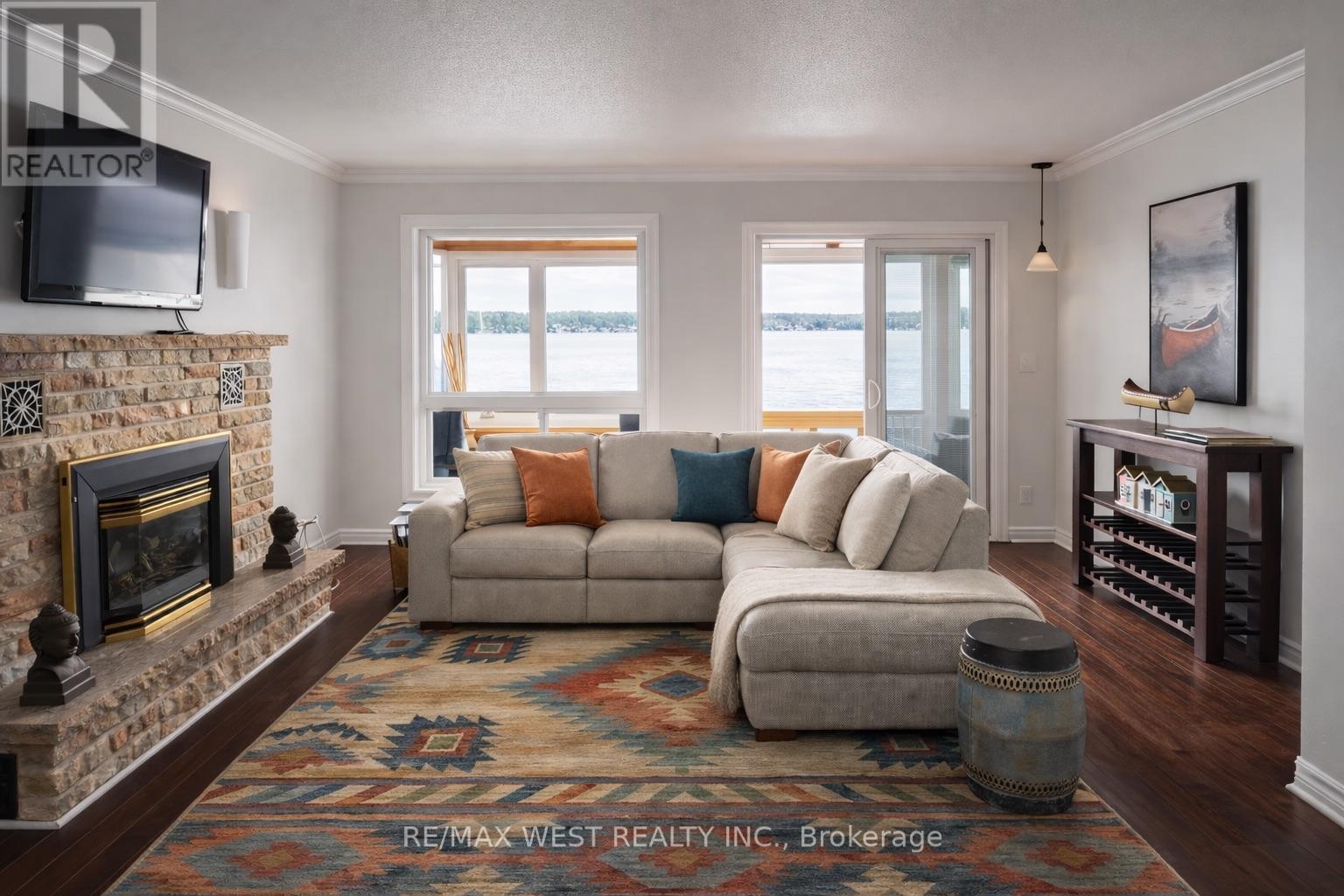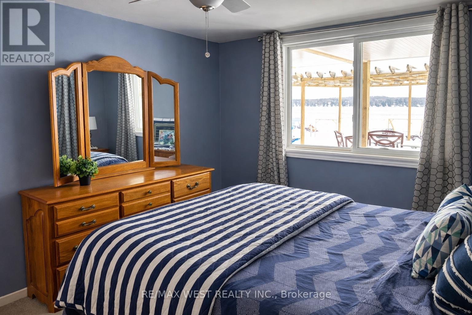 Experience the ultimate four-season lakefront lifestyle on the sparkling, crystal-clear shores of Orr Lake, where spectacular panoramic views and year-round recreation create a setting that feels like a getaway - every single day. This well designed 3 bedroom, 2 bathroom home offers year round enjoyment with cozy evenings by the natural gas fireplace with snowmobiling, boating, swimming, canoeing, fishing and more at the Lake. A fixed and floating dock with walk down shallow entry provides easy lake access for all ages from the property. A stunning sun room with rich wood panelled walls and recessed lighting overlooks Lake and a large outdoor patio with pergola, creating excellent space for dining, gatherings, and entertaining while enjoying the jaw dropping views. The open concept main floor features hardwood floors throughout the living and dining areas, along with a renovated kitchen with granite countertops, double sinks, stainless steel appliances, and a mobile island. The primary bedroom retreat offers wall to wall closets, lake views, and space for a home office or sitting area. A main floor laundry room with built in cabinetry provides excellent storage. Many updates, including kitchen, sun room, newer windows, and a new metal roof in 2024. The lower level offers expansive open concept living and dining space with a cozy fireplace and walkout to an outdoor entertaining area overlooking the lake, plus two additional bedrooms with closets and oversized above grade windows, a storage room, and utility room. Outdoors, two storage sheds provide ample space for recreational gear, with plenty of parking for family and guests. Located in a friendly lake community, steps to Orr Lake Golf Club, mins to Elmvale shops, restaurants, bakery, cafes, close to Wasaga Beach, Collingwood, Moonstone, Horseshoe Valley, ski resorts. Just 100 Km From Toronto,. (id:4555)