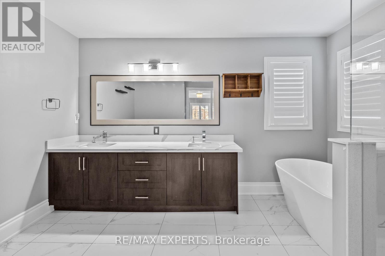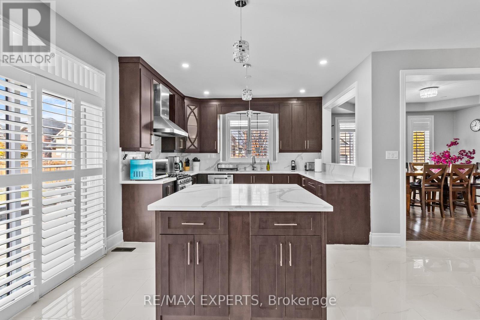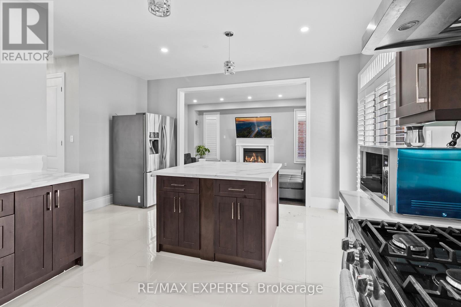 Extensively upgraded home in the coveted Ston emanor Woods community, backing directly onto the park! Welcome to 22 Travers Gate. This stunning 2-storey home blends modern design with functional elegance, featuring separate living, dining, and family rooms with a cozy gas fireplace. The chef's kitchen show cases a center island, stainless steel appliances including agas range, and granite countertops. Hardwood flooring runs throughout the main and second levels, complemented by an oak staircase and pot lights inside and out. Upstairs, the spacious primary suite offers his and hers walk-in closets and a spa-like ensuite with a soaker tub and glass shower. The second and third bedrooms share a convenient Jack & Jill ensuite. The home also features a legally finished basement with a walk-up entrance, complete with a full kitchen and bathroom-ideal for extended family or potential in-law suite. Enjoy a beautifully interlocked backyard and fully interlocked driveway on a wider premium lot. A rare opportunity in a highly sought-after, family-friendly neighborhood. (id:4555)