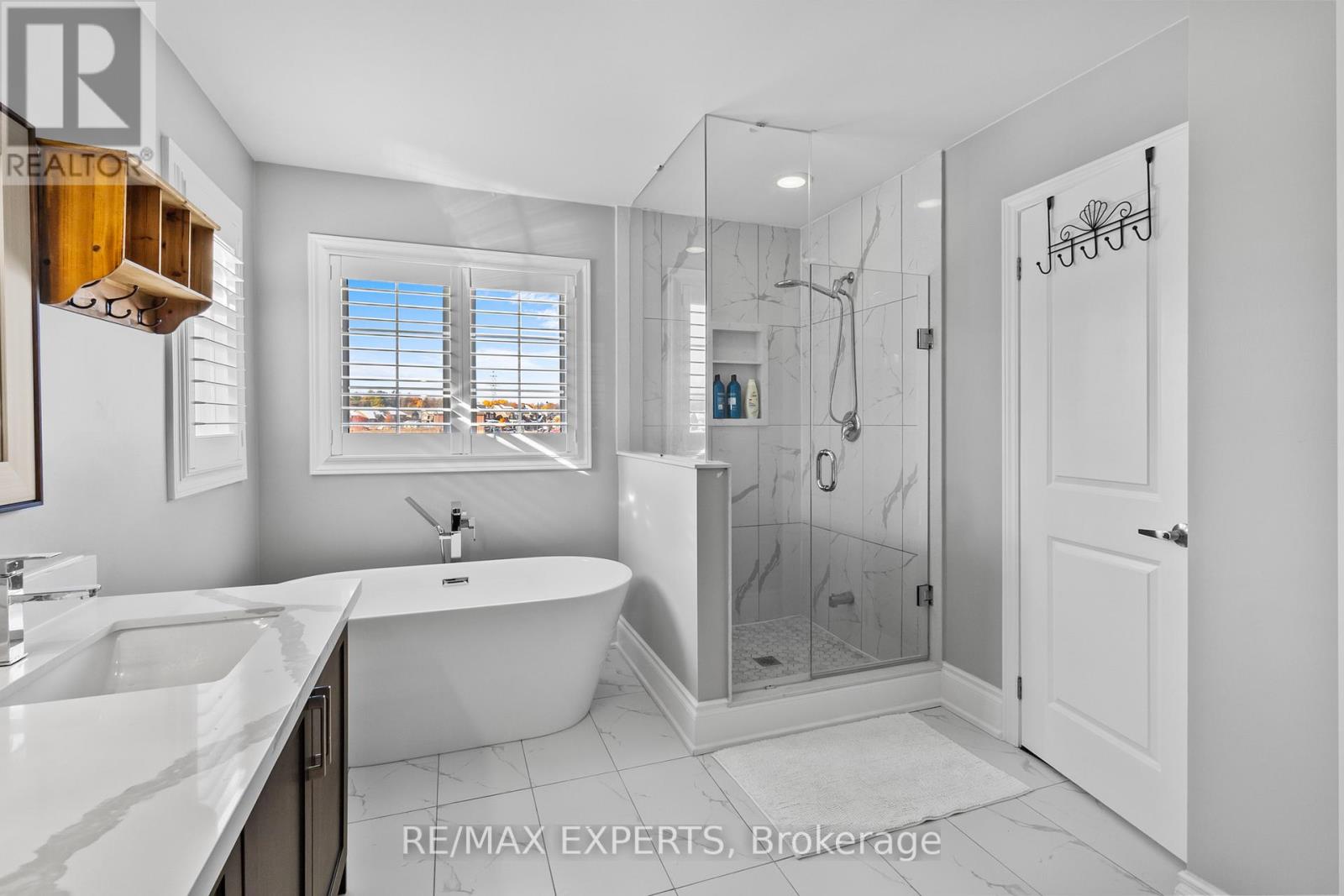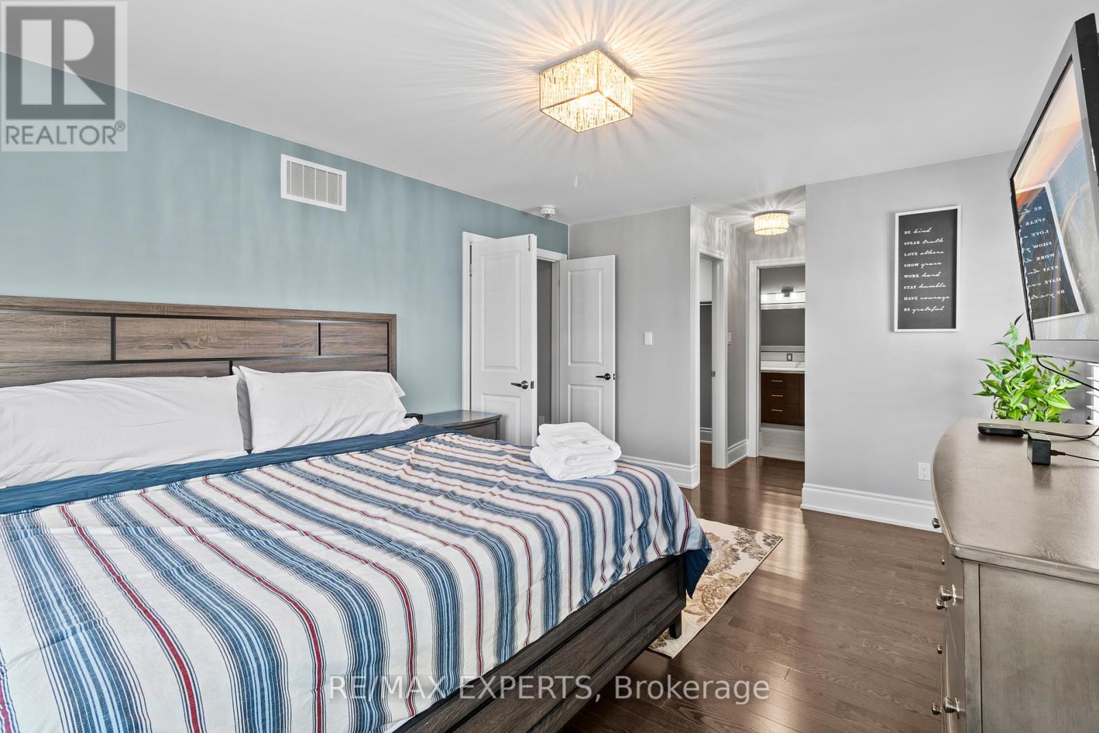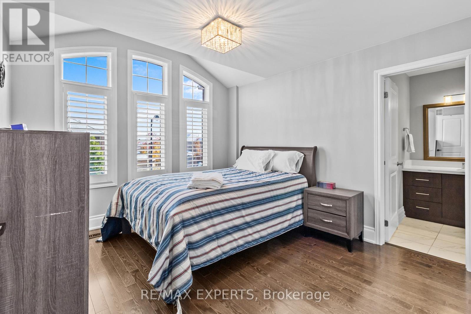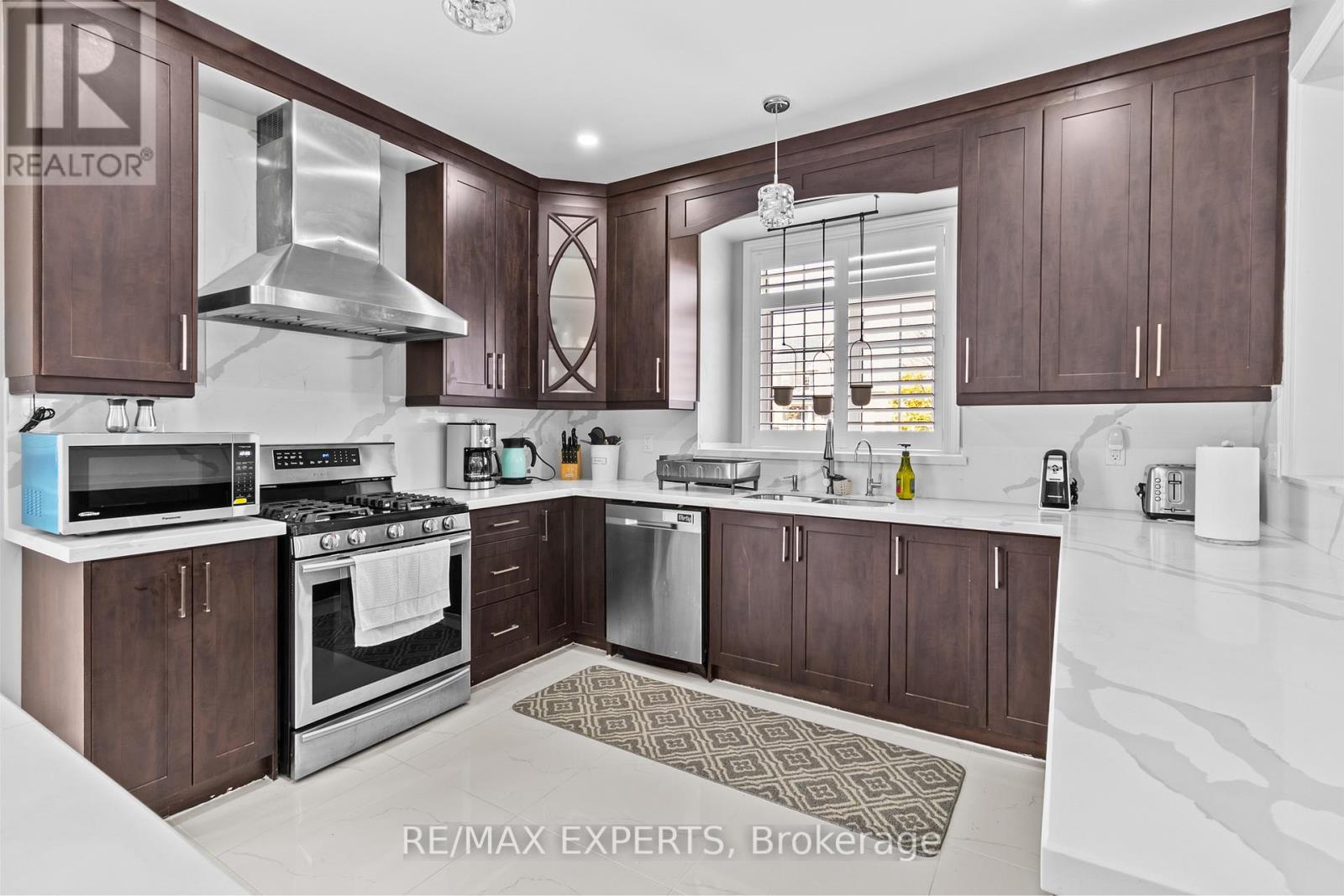 Extensively upgraded home in the coveted Ston emanor Woods community, backing directly onto the park! Welcome to 22 Travers Gate. This stunning 2-storey home blends modern design with functional elegance, featuring separate living, dining, and family rooms with a cozy gas fireplace. The chef's kitchen show cases a center island, stainless steel appliances including agas range, and granite countertops. Hardwood flooring runs throughout the main and second levels, complemented by an oak staircase and pot lights inside and out. Upstairs, the spacious primary suite offers his and hers walk-in closets and a spa-like ensuite with a soaker tub and glass shower. The second and third bedrooms share a convenient Jack & Jill ensuite. The home also features a legally finished basement with a walk-up entrance, complete with a full kitchen and bathroom-ideal for extended family or potential in-law suite. Enjoy a beautifully interlocked backyard and fully interlocked driveway on a wider premium lot. A rare opportunity in a highly sought-after, family-friendly neighborhood. (id:4555)