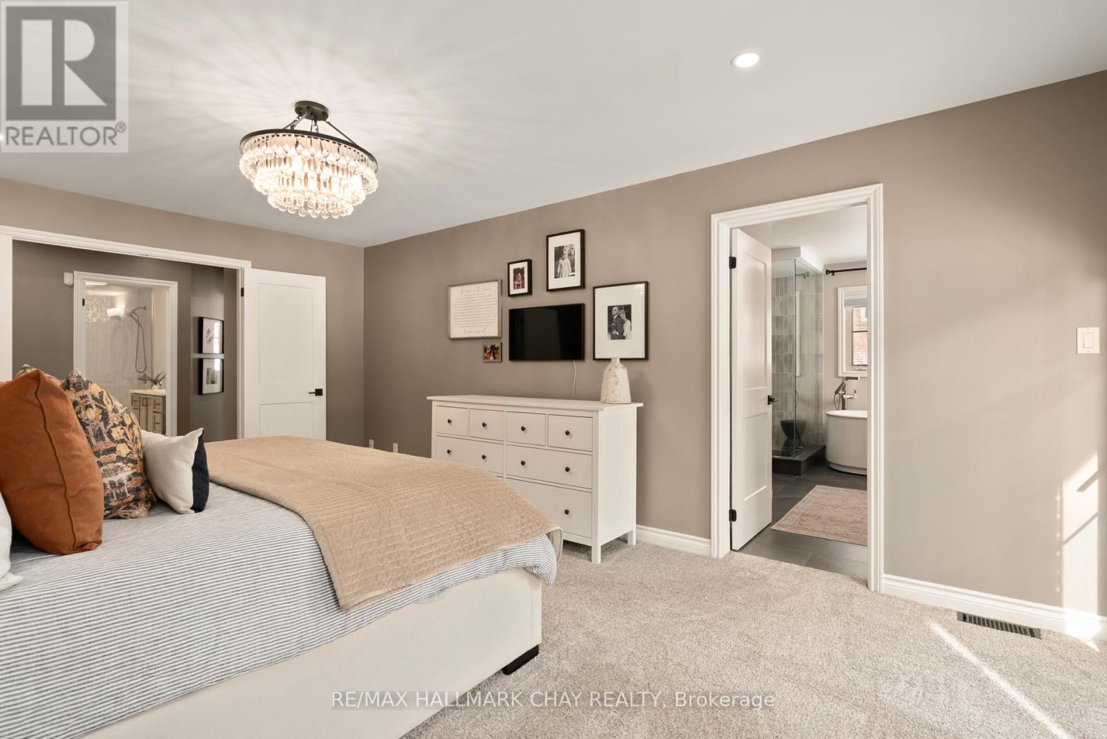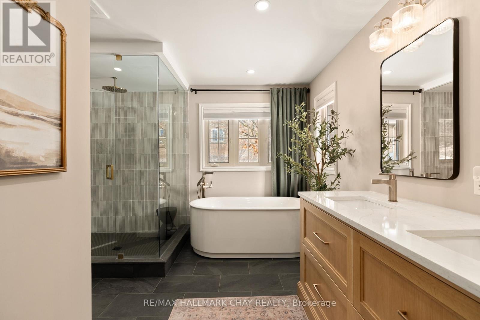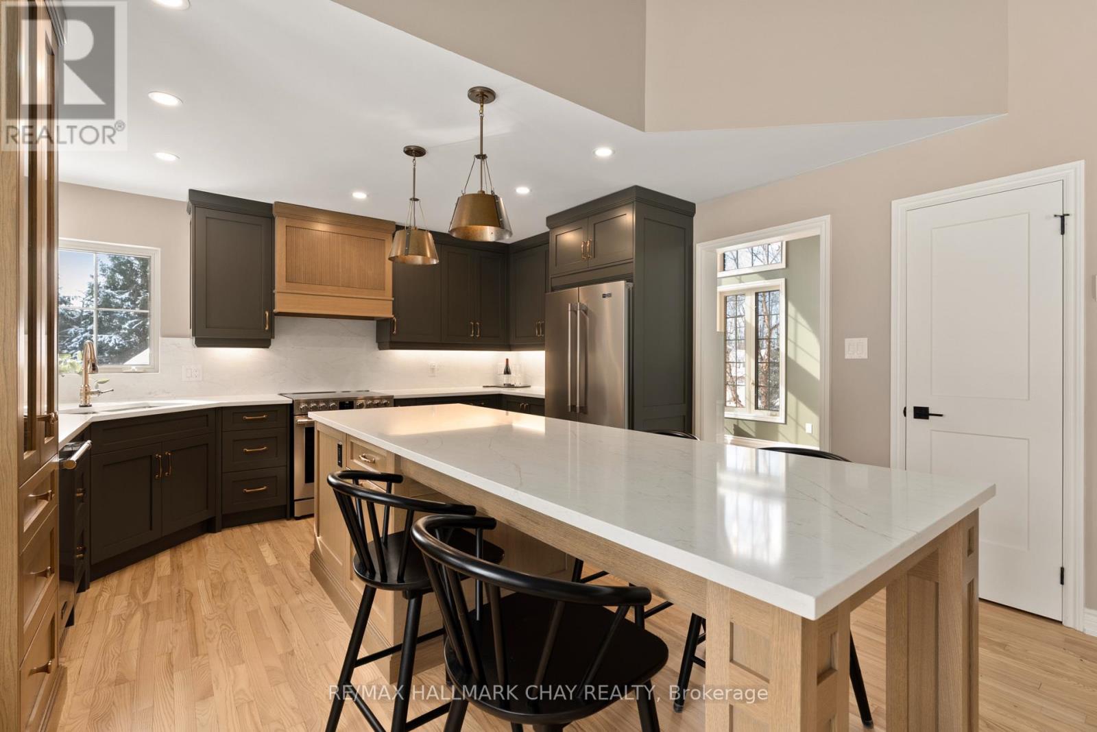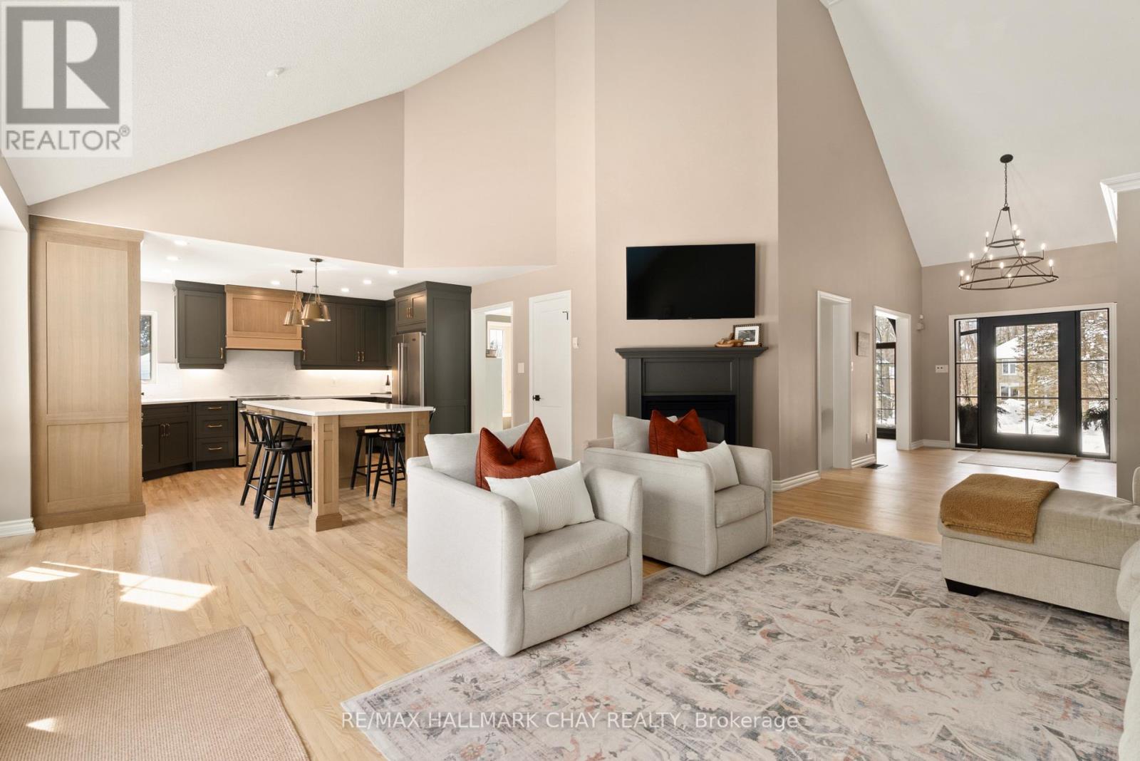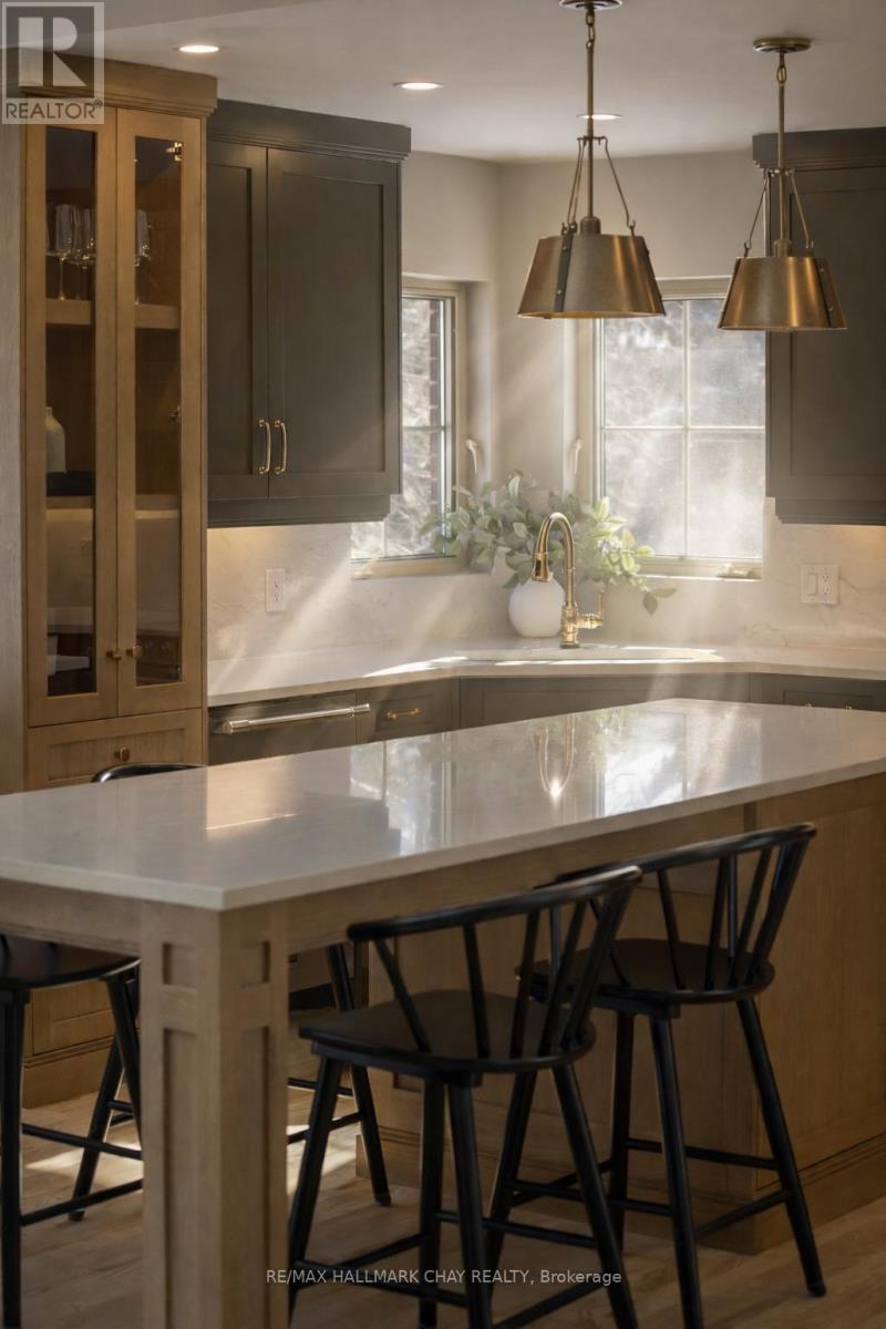 Elevated Luxury in Prestigious Forest Hill Estates, Midhurst. Welcome to an exceptional residence where refined design meets everyday comfort, set on a stunning 102' x 197' park-like lot. This beautifully updated 3+1 bedroom, 3 full bathroom home offers approximately 3,309 sq. ft. of finished living space and a rare full-size triple car garage-perfect for a full-size truck or SUV. A soaring main level with vaulted and cathedral ceilings creates an immediate sense of grandeur, complemented by a spacious layout featuring a formal dining room, inviting den, main-floor laundry, and an open-concept living room with gas fireplace. The custom kitchen showcases rift-cut oak cabinetry, quartz countertops and backsplash, premium appliances, and elevated lighting-designed for both style and function. The bedroom wing includes three generous bedrooms, highlighted by a luxurious primary suite with custom walk-in closet and spa-inspired ensuite. A recently renovated main bath and an upper loft/recreation space offer flexibility for a home office or media lounge. The lower level provides excellent in-law potential with separate garage access, a spacious bedroom, full bath, abundant storage, and expansive unfinished space ready to customize. Outside, the fully fenced backyard is a private retreat with mature trees, newer deck with pet ramp, hot tub, irrigation system, and ample room to entertain. NOTABLE UPGRADES include the custom kitchen, refinished hardwood, newer carpeting, updated doors, exterior stonework and front steps, soffits/eaves/downspouts, new furnace, lighting, paint, renovated bathrooms and garage doors. Ideally located near top-rated schools, parks, trails, and amenities-this is a rare offering in sought-after Midhurst. (id:4555)