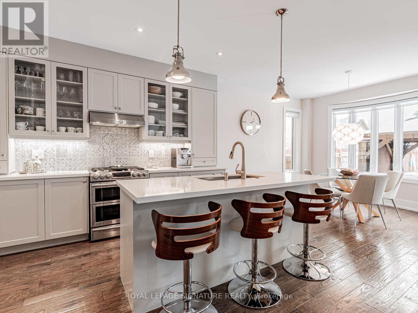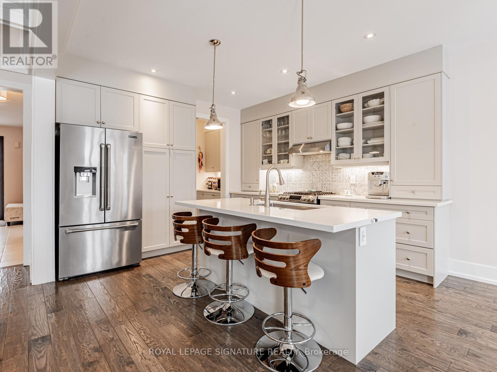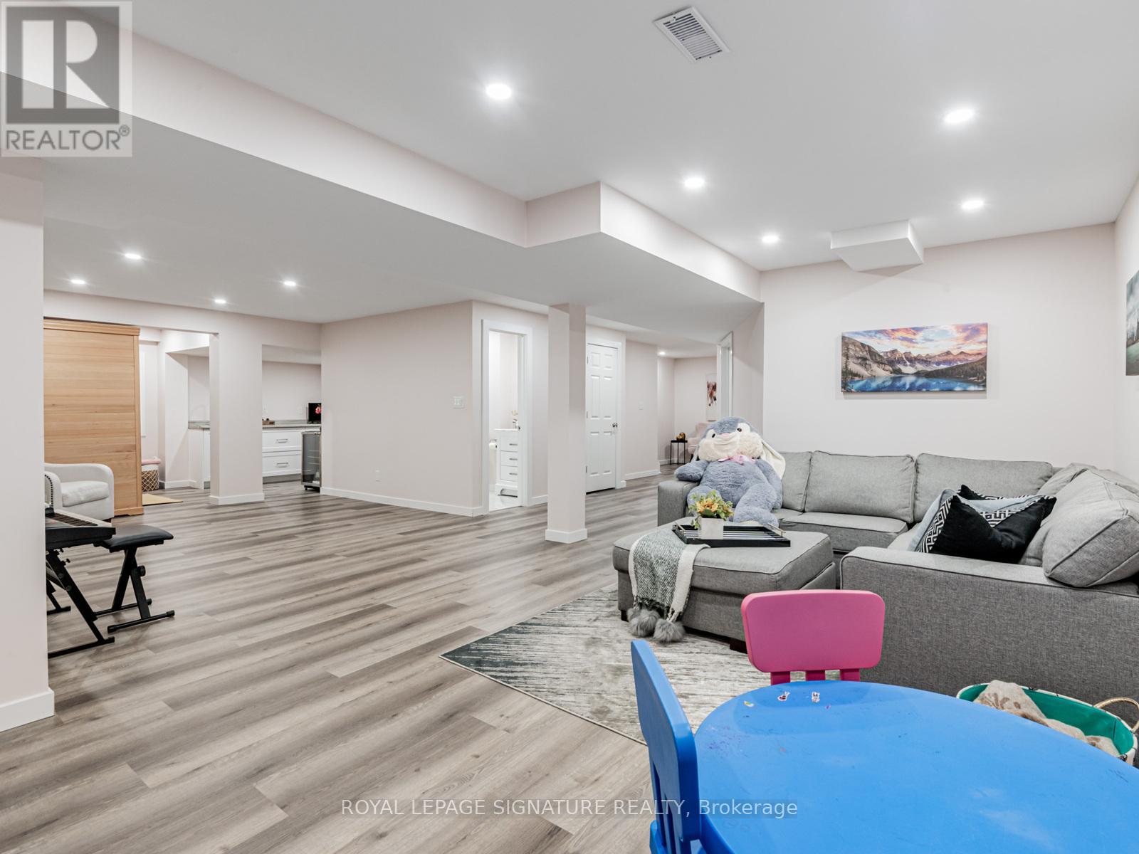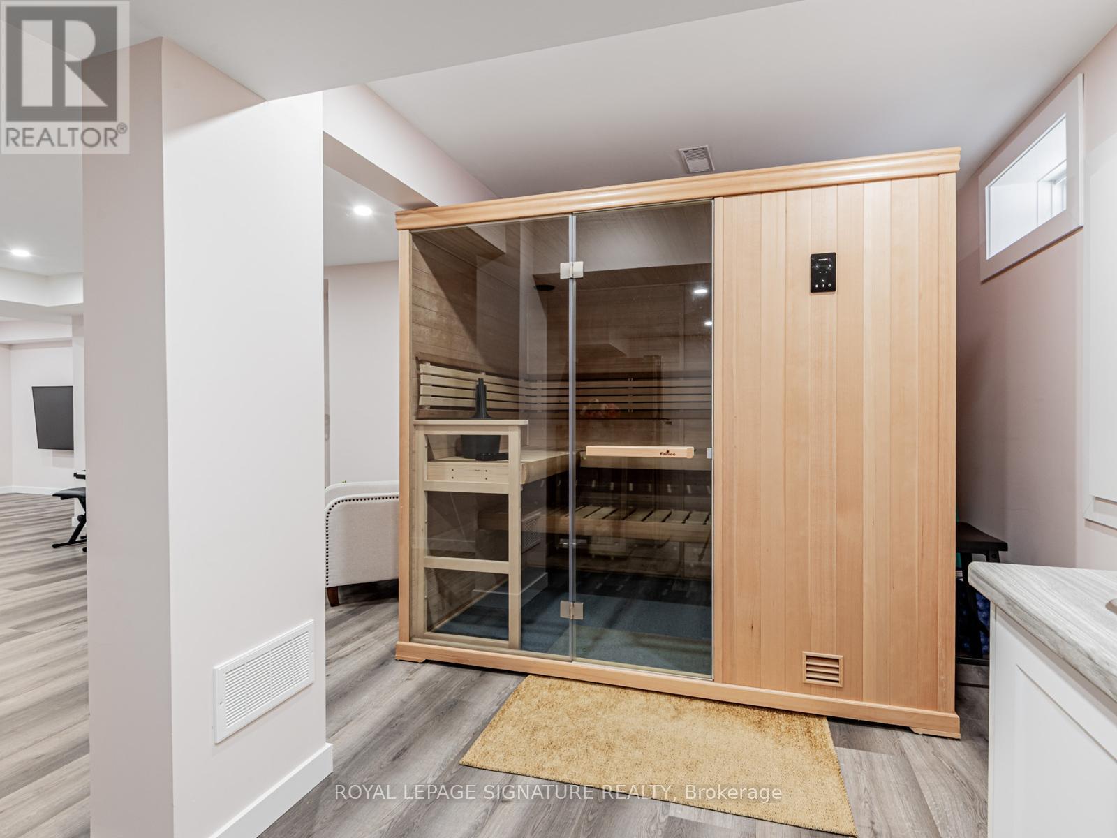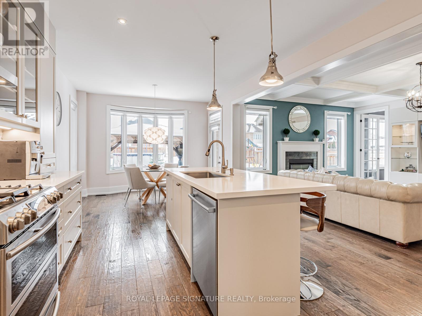 Presenting 26 Marks Road - Beautifully maintained 4-bed, 4-bath family home with thousands in upgrades. 3480 sq ft of total living space. Located in the sought-after Stonemanor Woods community, surrounded by parks, trails, ski hills, top-rated schools, and all of Barrie's amenities. Bright main floor with 9-ft ceilings, hardwood floors, oak circular staircase with iron pickets, powder room, family room with coffered ceilings, built-in TV unit and gas fireplace, plus a main-floor office with built-in shelves and direct garage access. Gourmet open-concept eat-in kitchen with stainless steel appliances, gas stove, large center island, butler's pantry, and breakfast area with walkout to the professionally landscaped backyard. Primary bedroom - a spacious private retreat with walk-in closet and 5-pc ensuite featuring double sinks, soaker tub, and glass shower. Generously sized additional bedrooms. Fully finished basement with rec room, kitchenette / bar, bedroom, 3-pc bath, and sauna. Set on a premium 52 x 141 ft lot with resort-style backyard featuring interlocking stone, gazebo, above-ground pool, playground, swing, trampoline, BBQ gas line, and ambient landscape lighting. A wonderful place to grow, gather, and call home. Visit the virtual tour for more details. (id:4555)