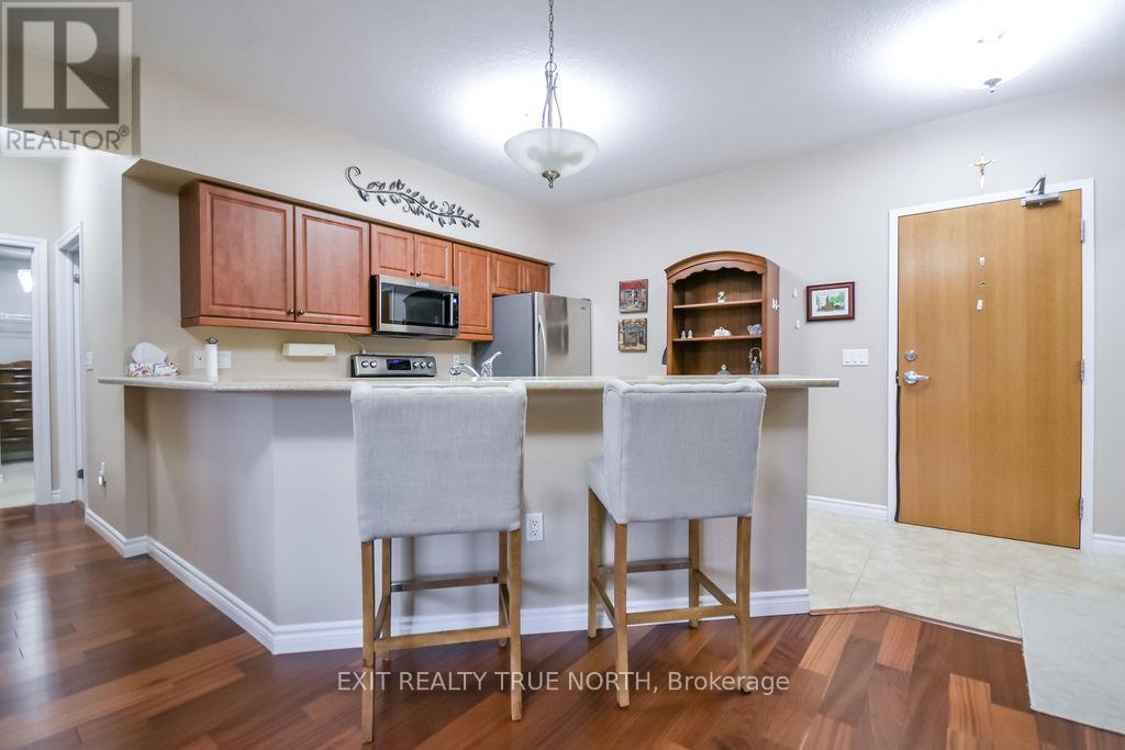 Tucked inside the sought-after Maplecrest building, this beautifully maintained condo offers the kind of easy, comfortable living that just feels right the moment you walk in. Welcome to 19B Yonge Street, Unit 204 in Elmvale. A bright and thoughtfully designed two-bedroom, two-bathroom home where convenience and low-maintenance living come together. The spacious kitchen is a true highlight, offering plenty of room to cook, gather, and entertain. The layout flows effortlessly into the living space and out to your private balcony with peaceful east-facing views overlooking the back of the property, an ideal spot to enjoy your morning coffee while surrounded by greenery and privacy spring through fall. This well cared for unit also features key fob entry, elevator access, and an owned parking space conveniently located right beside the main entrance for easy day to day access. Residents enjoy access to shared amenities including the party room and gazebo area-perfect for relaxing or spending time with friends. Located just steps from Elmvale's local shops, restaurants, and everyday services, everything you need is within easy reach. And when you're ready for a day by the water, the sandy shores of Wasaga Beach are only a 10-minute drive away, with Barrie and Midland both just 20 minutes from your door. Comfortable, convenient, and exceptionally well kept, this is condo living at its best. (id:4555)