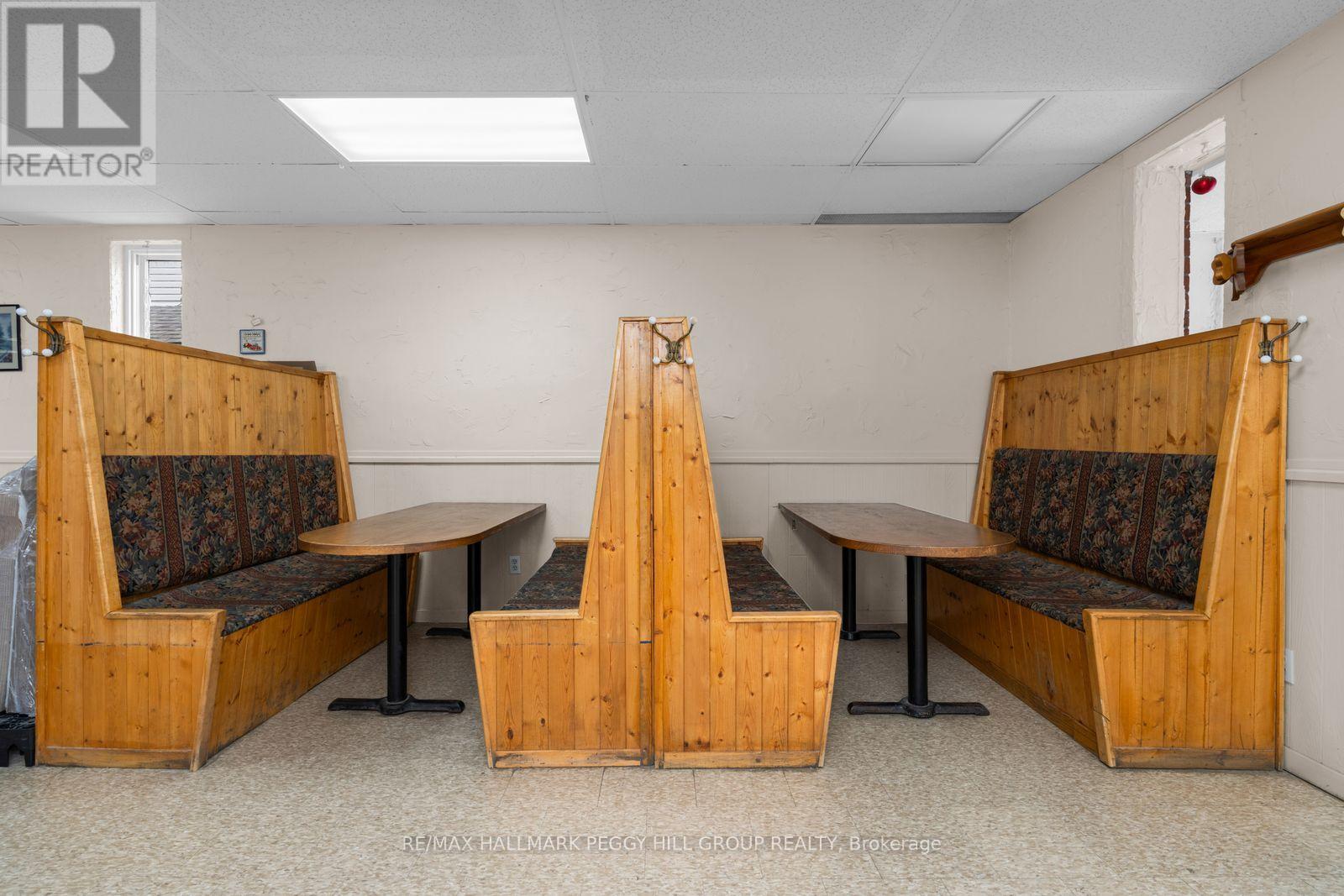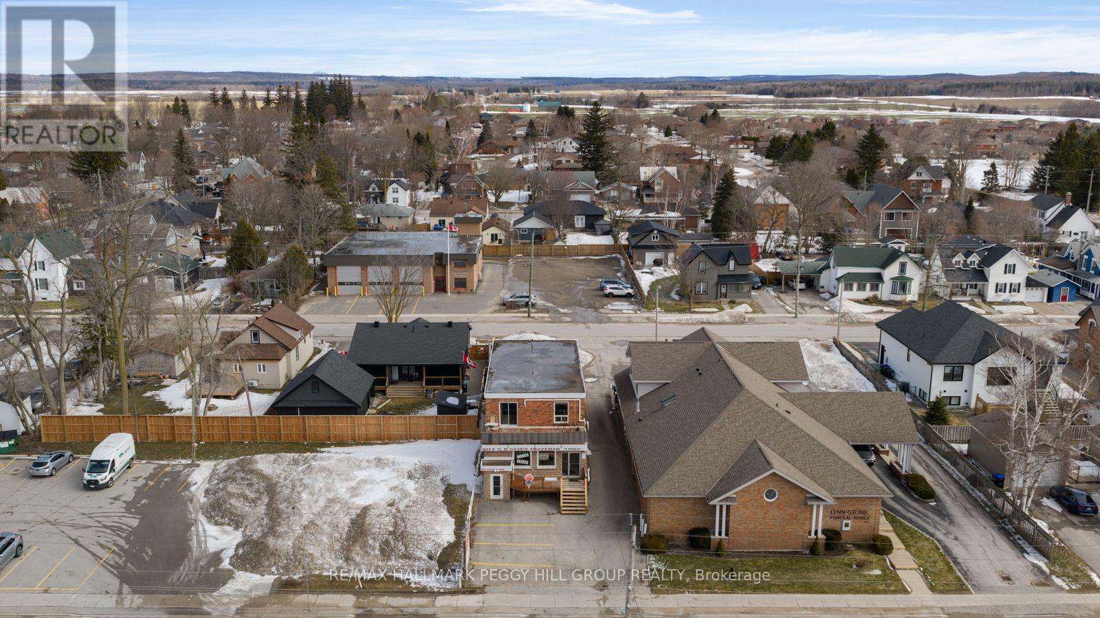 FLEXIBLE MIXED-USE BUILDING WITH DOWNTOWN EXPOSURE, FULLY EQUIPPED COMMERCIAL SPACE, & UPPER LIVING QUARTERS! Positioned in the heart of downtown Elmvale, this mixed-use commercial building presents a strategic opportunity for investors and business owners seeking visibility, flexibility, and rental potential in a prominent downtown location. Set along a well-travelled corridor, this property benefits from steady local traffic, seasonal cottage country flow, and two-street access. CG zoning opens the door to a range of permitted uses, including restaurant or take-out, bakeshop, retail, personal service, office, clinic, and more. The main level, previously operated as a successful pizza shop, features a commercial kitchen with included equipment, multiple dining areas with generous seating space, and two washrooms. Upstairs, spacious residential quarters with two bedrooms, one full bathroom, and a private deck create flexibility for owner occupancy or future rental use. A finished basement adds even more usable space with a den, office area, extensive storage, and two bathrooms, while parking for 12 vehicles, three hot water tanks, multiple furnaces, and 400 amp service further strengthen the long-term value of the property. This is a smart downtown Elmvale opportunity for investors and business owners seeking a well-positioned property with commercial presence and residential versatility. (id:4555)