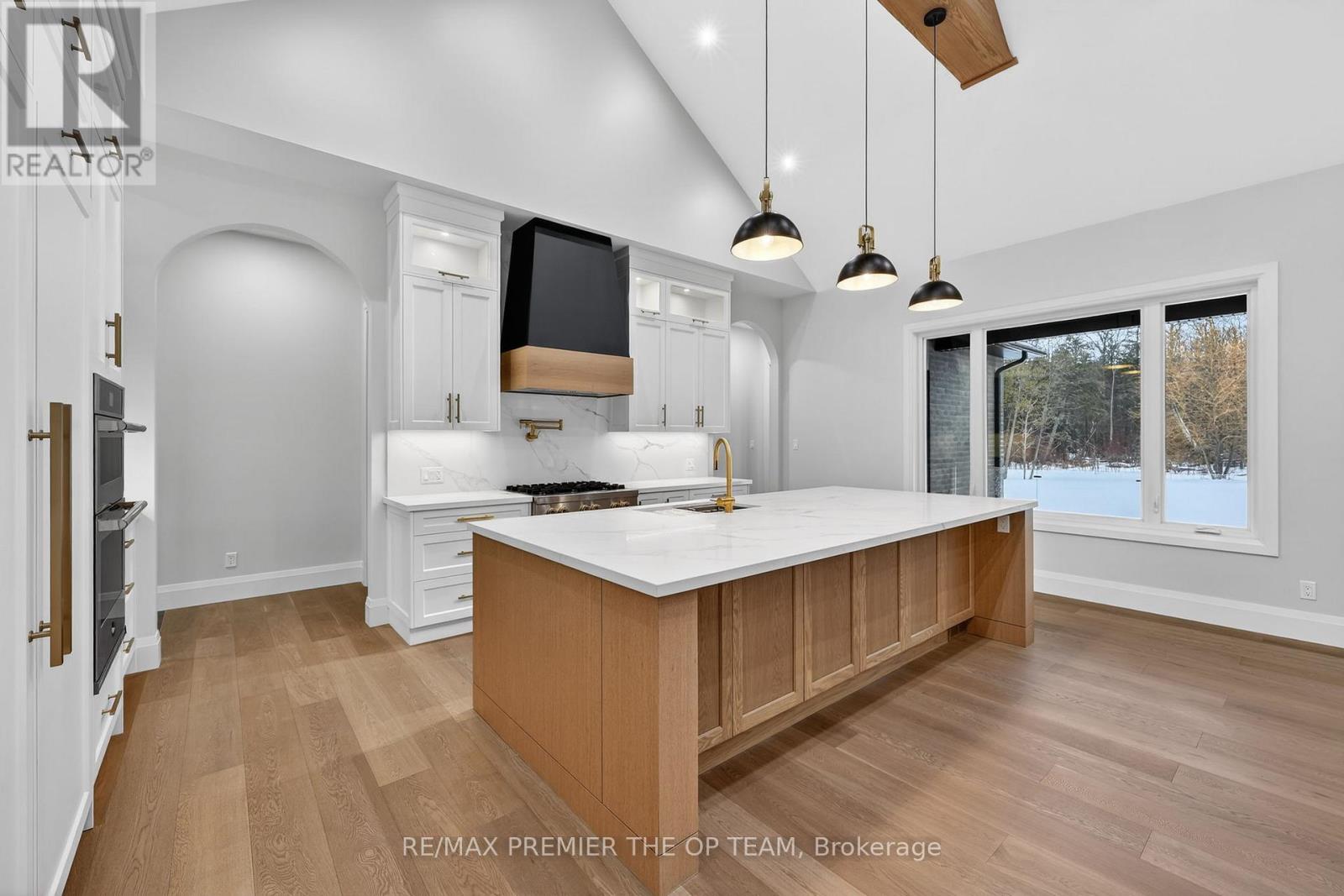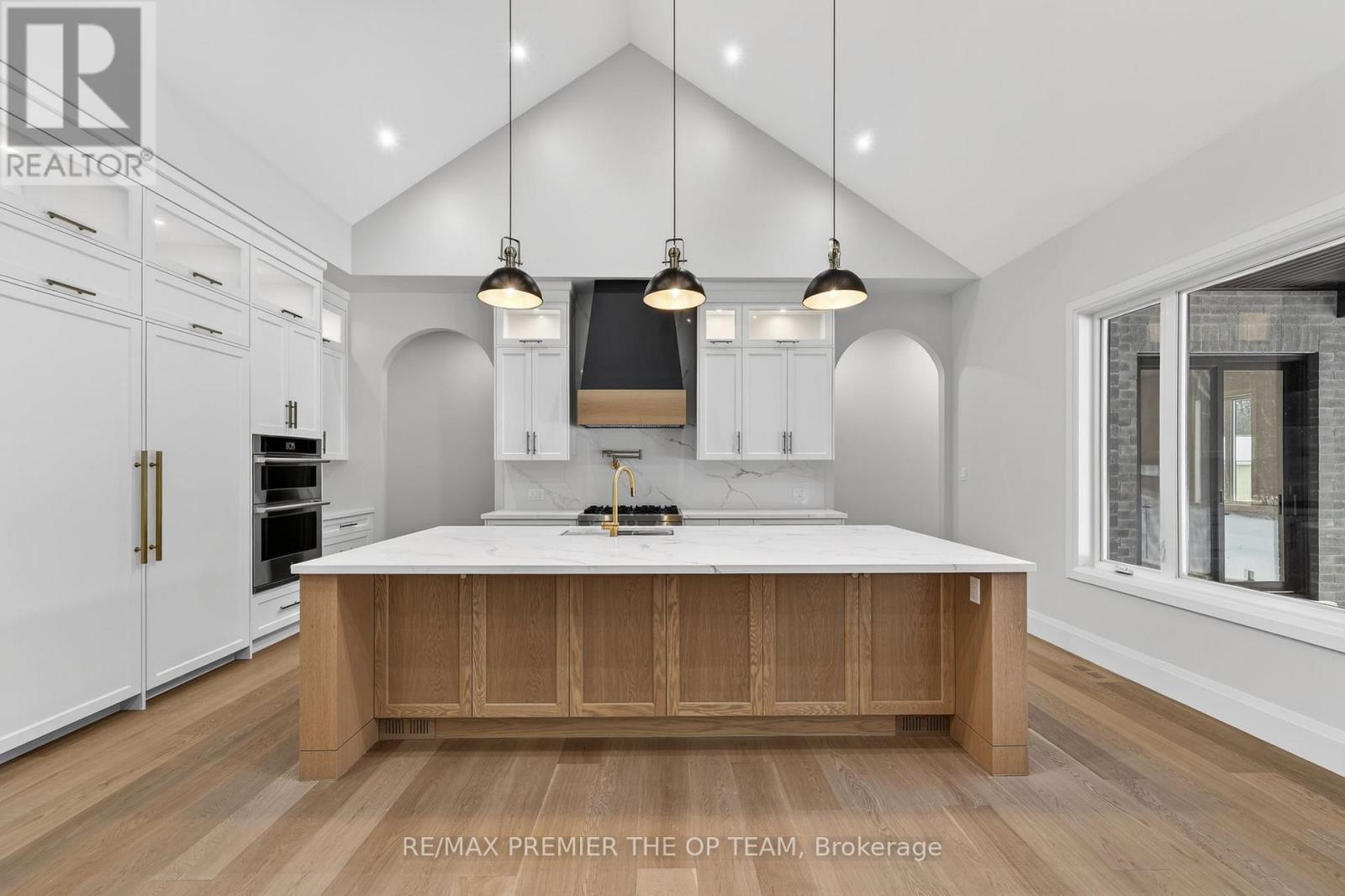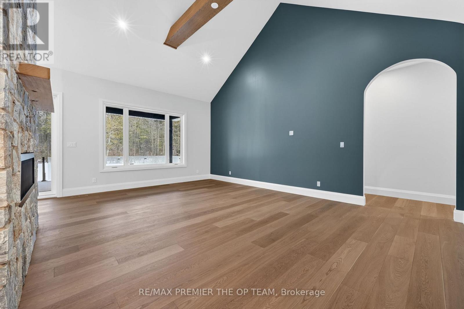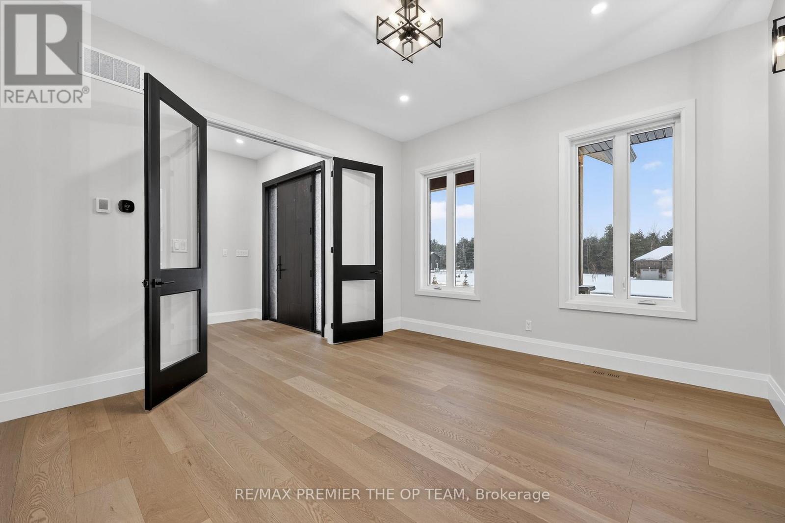 New 3,200 sq. ft. custom stone and brick bungalow on over an acre, built by a quality builder and backed by Tarion warranty. This stunning home features wide plank hardwood floors, high-end light fixtures, JennAir appliances, and Riobel bathroom fixtures throughout. The open-concept kitchen and living area is highlighted by a massive island, butler's pantry with espresso bar, and a dramatic floor-to-ceiling double-sided stone fireplace, with walkout to a covered back deck overlooking a pool-sized yard and forest backdrop. The principal suite offers a feature wall, walk-through custom closet, and spa-inspired ensuite. Separate bedroom wing with 3 bedrooms and 2 full baths. Main floor laundry and mudroom off the impressive 40' x 30' garage with oversized doors, high ceilings for car lifts, and basement walk-up. Basement features 9 ft ceilings and rough-in for additional bath. Landscaping package includes exposed stone concrete walkway, entrance garden with two trees, sodded front yard, and hydro-seeded backyard. Excellent commuter location with easy access to Barrie and Hwy 400. (id:4555)