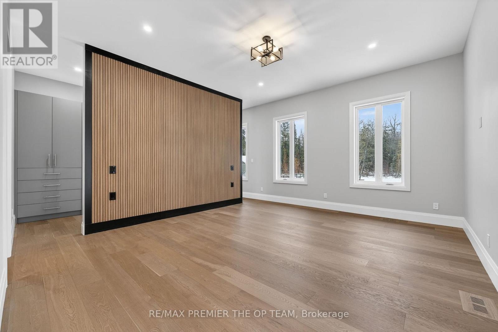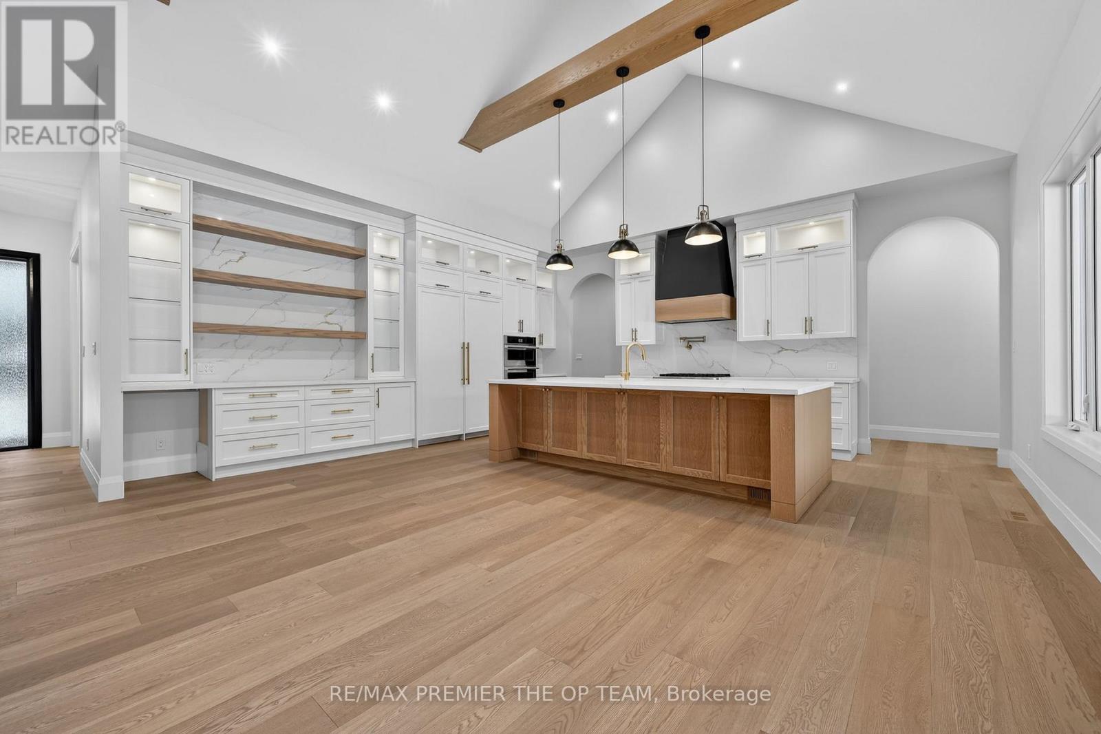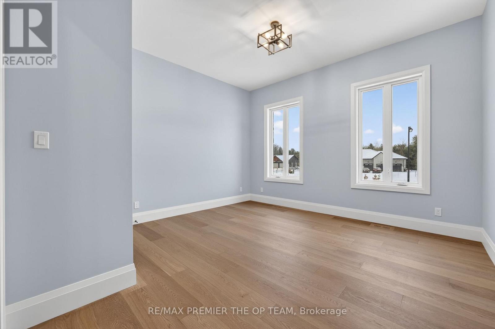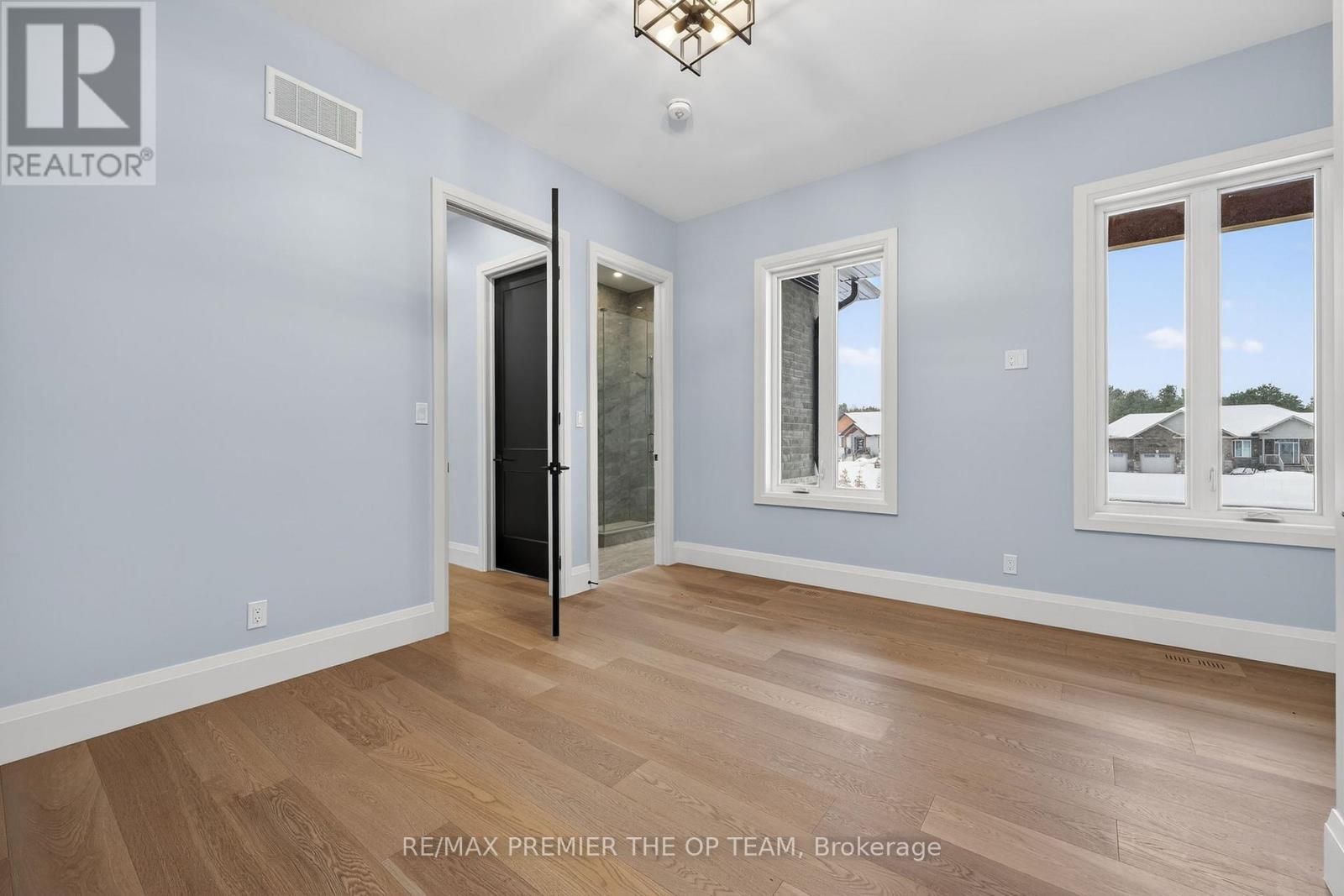 New 3,200 sq. ft. custom stone and brick bungalow on over an acre, built by a quality builder and backed by Tarion warranty. This stunning home features wide plank hardwood floors, high-end light fixtures, JennAir appliances, and Riobel bathroom fixtures throughout. The open-concept kitchen and living area is highlighted by a massive island, butler's pantry with espresso bar, and a dramatic floor-to-ceiling double-sided stone fireplace, with walkout to a covered back deck overlooking a pool-sized yard and forest backdrop. The principal suite offers a feature wall, walk-through custom closet, and spa-inspired ensuite. Separate bedroom wing with 3 bedrooms and 2 full baths. Main floor laundry and mudroom off the impressive 40' x 30' garage with oversized doors, high ceilings for car lifts, and basement walk-up. Basement features 9 ft ceilings and rough-in for additional bath. Landscaping package includes exposed stone concrete walkway, entrance garden with two trees, sodded front yard, and hydro-seeded backyard. Excellent commuter location with easy access to Barrie and Hwy 400. (id:4555)