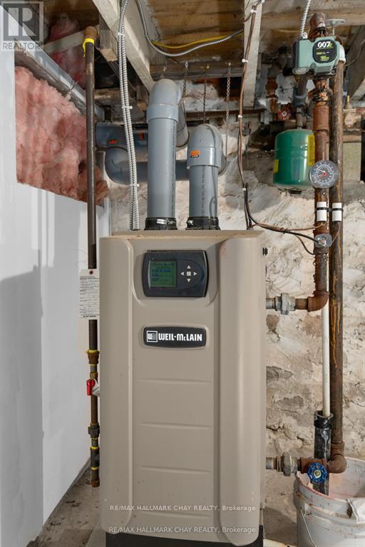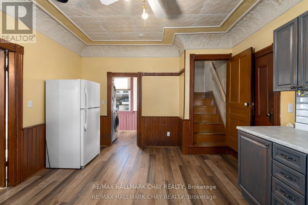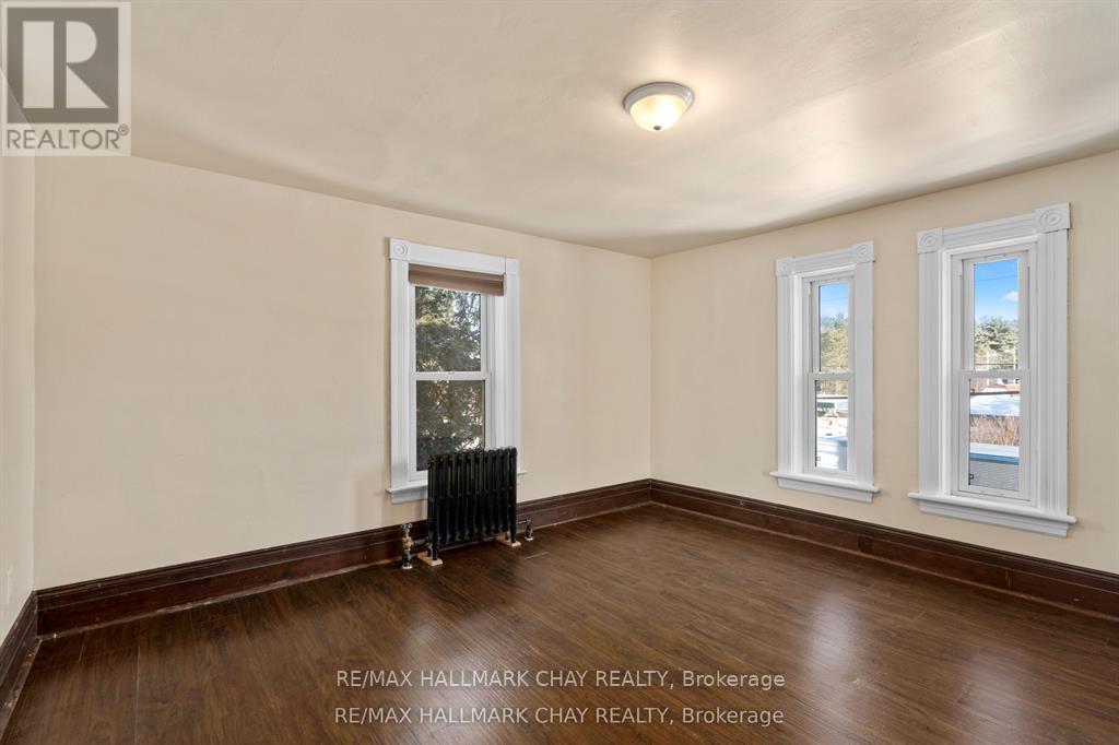 Welcome to the Davenport House. This beautiful century custom builders home will call you with it's unique custom finishes. The wrap around covered porch, original craftsman front door with stained glass. Custom wood work staircase, balusters and under staircase storage wood panels. Crown molding, 9 inch baseboards and wood detail custom ceiling. Classic century style with 2 separate stair cases. Kitchen offers the original Tin ceiling a walkout to side deck and a back 3 season den and enclosed storage room and back staircase to the upper level. Pantry/laundry room off kitchen. Separate dining room and living room. Main floor generous sized bathroom in addition to the upstairs full bathroom. Upper sunroom with walkout to the balcony. This home offers 3 upper bedrooms. This is an extremely well maintained century home. Updated gas hot water tank, updated copper electrical 200 amp breaker panel. Updated plumbing, basement walls have spray foam insulation and new septic. All exterior walls have been insulated. Most windows are updated, roof in in good condition. Heating cost is very efficient with the concrete exterior walls and added insulation. Outdoor structure a detached smaller barn and garden shed. Close hwy access 15 min from Barrie. Located across the road from a park. Close to skiing, golf, hiking and snowmobiling. (id:4555)