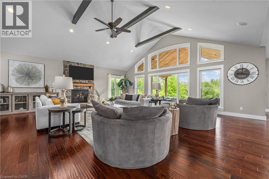 NEARLY 10,000 SQ. FT. OF LUXURY LIVING ON 22 ACRES WITH POOL, IN-LAW SUITE & CREEKSIDE PRIVACY Welcome to a rare blend of modern elegance, peaceful privacy, and country charm—a show-stopping estate on 22 scenic acres that redefines what it means to live in luxury. Nestled in the heart of Niagara’s countryside and backing onto the tranquil Twenty Mile Creek, this extraordinary home features nearly 10,000 sq. ft. of beautifully finished living space, combining function, style, and freedom like no other. Enter the expansive contemporary bungalow where light-filled rooms, refined finishes, and thoughtful design come together to elevate everyday living. With 6+2 bedrooms and 5 bathrooms, this property is built for growing families, multigenerational living, or entertaining on a grand scale. Closets throughout the home feature custom built-in organizers, adding style and function to every space. The home’s striking all-stone exterior creates timeless curb appeal, while in-floor heating in the lower level, attached garage, and detached garage ensures luxurious comfort year-round. With its fully finished walk-out lower level, this home adapts to your lifestyle, surrounded by nature and designed with peaceful living in mind. Outside, a resort-style setting unfolds with a heated pool, hot tub, and a stunning timber-framed porch—A front-row seat to the calming views of Twenty Mile Creek and the natural beauty that surrounds you. The winding driveway, lined with lamp posts and concrete curbs, leads to an attached 3-car garage and a 6-car detached garage with a modern 2-bedroom in-law suite above—ideal for family, guests, or rental opportunities. A separate cabin is also included, providing even more potential for relaxation, hobbies, or extended stays. With 22 acres to roam and creekside views to enjoy, this is country living without compromise—just minutes to schools, shops, wineries, and the towns of Smithville, Beamsville, and all Niagara has. (id:4555)
