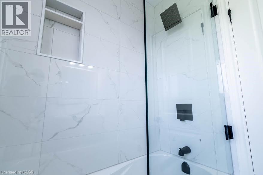 A MUST SEE!!! Welcome to this fully updated 2 Storey semi-detached, 2 + 1 bedroom home with over 1400 sq.ft. of finished floor space in sought after North End St. Catharines. A prime location that puts you minutes away from every convenience - shopping malls, grocery stores, and schools. This turn-key home was designed with comfort and style in mind. Brand new kitchen features new cupboards with sleek quartz countertops and brand new black stainless appliances. The upscaled bathrooms include new vanities, porcelain tile shower/tub with swinging glass door and glass shower enclosure. The eye-catching oak staircase and railing with iron balusters leads to the upstairs that houses two spacious bedrooms with ample closet space. Stylish Updates include: luxury flooring throughout the entire house sets the stage for modern living, complemented by a striking feature brick wall with a wood mantel and 50 sleek fireplace in the great room that is sure to be a conversation starter; all new LED lighting fixtures, window treatments and interior doors and custom trim. Peace of mind comes standard with a durable and long-lasting metal roof, ensuring your home stays protected through all seasons. The open concept basement boasts a huge recreation room or potential 3rd bedroom. The spacious 100 foot+ backyard offers endless opportunities for relaxation or entertaining, while the new driveway, landscaping, side fence, maintenance free brick & stone exterior with new exterior doors, aluminum railing enhances curb appeal and functionality. Every inch of this home has been meticulously revamped. This striking property is a must-see for anyone seeking a turn-key home, be the first to live here! (id:4555)