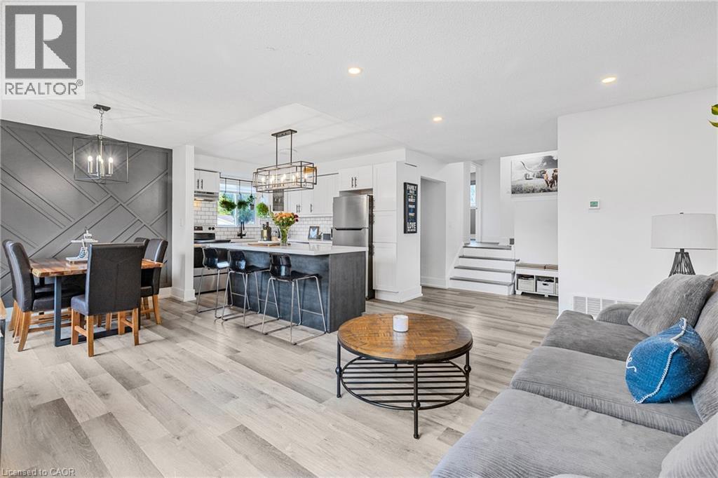 Welcome home to this spacious four-level backsplit with three bedrooms and two bathrooms, tucked away in the middle of a family-friendly court. The main floor boasts an inviting open-concept layout with a bright kitchen, dining, and living area, ideal for family living and entertaining guests, all overlooking the court. Upstairs you’ll find three comfortable sized bedrooms and a full bathroom. The finished recreation room offers additional space with an appealing three-piece bathroom, while the basement provides laundry, a freezer, utility room and extra storage. Outside, enjoy a large backyard with a fire pit, a detached garage that fits a car + work area, and a wide gate allowing access to store a boat, trailer, or larger items. With driveway parking fit for four to five vehicles. Also a second private entrance to the lower levels, with its own doorbell. A good location close to schools, bus stops, shopping, highway, and the Welland Canal, this home is the perfect setting for family life. (id:4555)