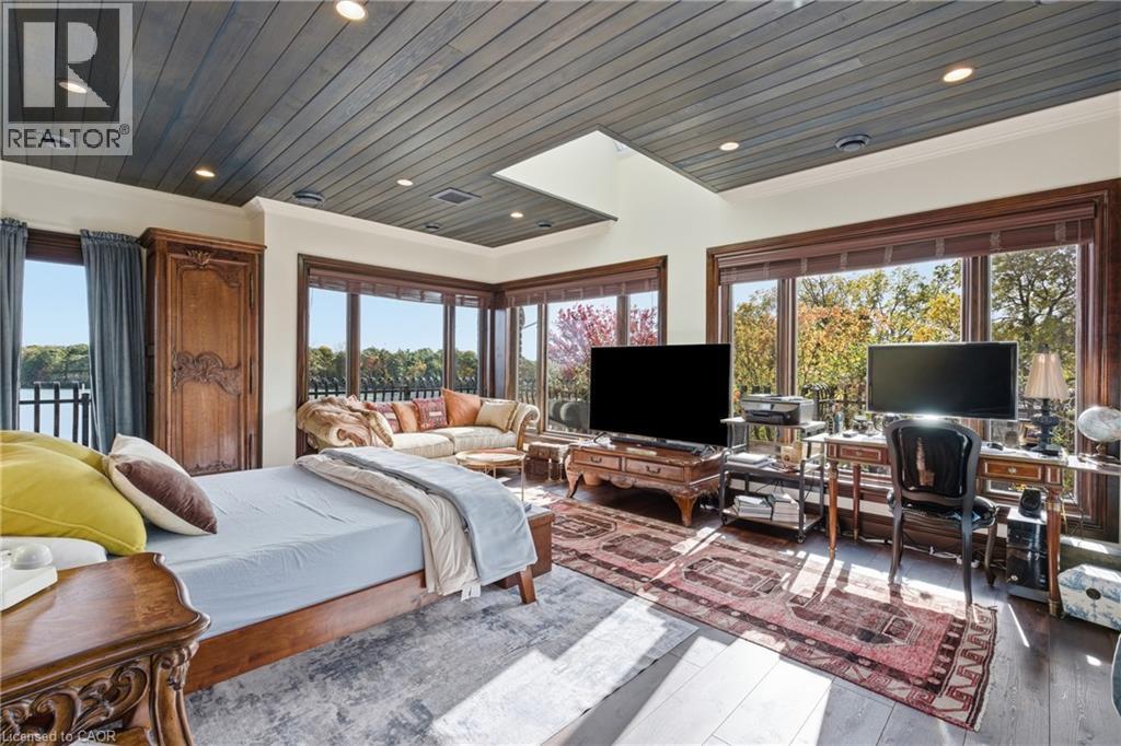 Pristine waterfront living meets timeless European elegance. This extraordinary custom built two-story residence offers over 4500 sq ft of beautifully crafted living space, designed to capture panoramic views of Martindale Pond. Home to the prestigious Royal Canadian Henley Rowing Course. From its graceful archways and terracotta rooflines to its warm brick exterior and charming wrought-iron accents, this home exudes Mediterranean charm and architectural sophistication. Step inside and be greeted by sun-drenched interior, soaring ceilings, elegant tile, custom hardwood flooring and expansive windows that frame tranquil water views in nearly every room. The heart of the home features a grand spiral staircase spanning three floors and a gourmet chefs kitchen that flows into spacious open-concept living and dining areas. Multiple walkouts lead to peaceful terraces, private gardens, and an intimate outdoor living area where you can enjoy morning espresso or evening wine by the waters edge. The second floor has a 15ft x 18ft primary suite with 17ft x 8ft custom walk-in closet and 5-pc ensuite featuring floor to ceiling tiled glass shower and spa-like tub with double sinks. The large second bedroom also includes beautiful panoramic views of the pond. Make your way to the third bedroom with large windows overlooking the pond with access to a roof-top patio for relaxation. The lower level features an additional living space with second kitchen, two additional bedrooms, large laundry area and built-in sauna to keep the relaxation going. The backyard features a custom inground stone hot-tub with outdoor shower area for enjoying those Zen moments in life. With pond access, the water enjoyment is limitless. Whether you're savoring the peaceful ambiance, hosting unforgettable gatherings, or simply enjoying the beauty of nature from your own backyard oasis, this property offers a lifestyle of serenity and sophistication. Luxury Certified. (id:4555)