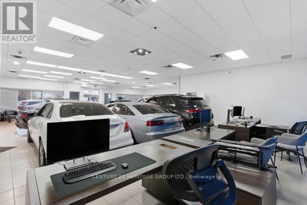 LOCATION, LOCATION, LOCATION. Stand along 7,402 sf Service Related/office building with ample parking located on high traffic road. Used as VW dealership. 6 car shop with floor drains, mezzanine area, offices, waiting room, kitchen and ample showroom. Men's and Women's washrooms. Gated fenced yard, outdoor pylon sign and Exterior lighting. OMVIC approved location. The building renewed partially and upgraded 300k in 2022. (id:4555)