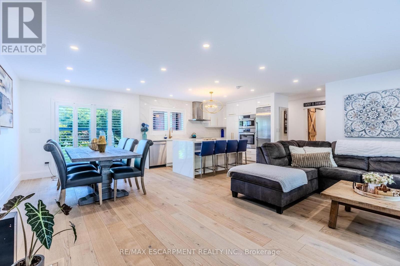 Welcome to 23 West Hampton Road - a stunning, fully renovated ranch bungalow where modern style meets everyday comfort. Perfectly situated just minutes from Hwy 406, the Welland Canal, Lake Ontario, schools, shopping, and all the conveniences of city living, this home offers both accessibility and tranquility. Step inside to find a bright, open-concept layout filled with natural light, highlighted by brand new hardwood floors, upgraded trim, pot lighting inside and out, and custom California shutters on every new window and door. The designer kitchen boasts quartz countertops, a stylish backsplash, and high-end stainless steel appliances, including an S/S fridge, cook-top, wall oven, wall microwave, and dishwasher. This home offers two luxurious new bathrooms with heated floors, as well as a lower-level bedroom with closet, washer and dryer, and convenient side entrance. Notable updates include: furnace & A/C (2021), doors & windows (2021), concrete patio (2021), driveway (2022), fence (2022), and a garden shed - ensuring peace of mind for years to come. Outside, enjoy your own backyard oasis with professional landscaping - the perfect setting for relaxation, family gatherings, or summer entertaining. Every detail has been thoughtfully updated from top to bottom, making this property completely move-in ready. (id:4555)