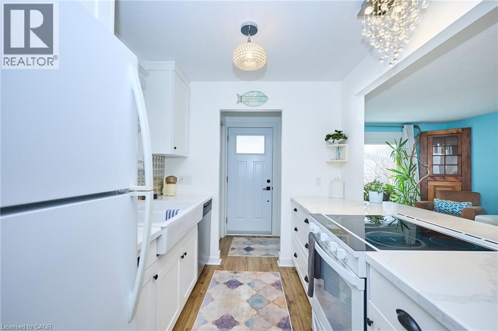 Welcome to this beautiful North End St. Catharines home, tucked away on a quiet dead-end street directly across from a park, offering a rare sense of privacy within a friendly, close-knit community. Located in the sought-after Port Weller area, this neighbourhood has a true beach community feel, where life slows down and it feels more like a weekend retreat than city living. You’re just a short walk to Sunset Beach, waterfront trails, parks, and the community center, making this an ideal location for families, retirees, and investors alike. The bright and open main-floor kitchen is a standout, featuring quartz countertops, soft white cabinetry, and a double sink, The main level offers comfortable living and dining areas filled with natural light, pleasant views of the park across the street and a new sliding door leading to a porch, perfect for easy indoor-outdoor living. Upstairs, you’ll find two spacious bedrooms with ample closet space and a 4-piece bathroom featuring a sun tunnel, providing beautiful natural light throughout the day. The walkout lower level offers exceptional flexibility and in-law potential, featuring a second kitchen, den, and 3-piece bathroom with a tiled shower. Thoughtfully laid out to provide privacy and separation from the main living areas, this level is ideal for extended family or guests. The family room is warmed by a cozy gas fireplace, creating an inviting space for movie nights, entertaining, or quiet evenings at home. Outside, enjoy a low-maintenance yard designed for easy living, complete with a hot tub acting as your own private retreat. Friendly neighbours and an exclusive, tucked-away feel complete the lifestyle this home offers. A versatile, move-in-ready home that truly feels like a coastal escape, right in the heart of Niagara. Roof 2012 Furnace- 5 years Eavestroughs- 3 years Driveway- 2019 Front Porch- 2022 Sliding Glass door- 2019 Hot tub- 2019 Basement backup valve- 2020 (id:4555)