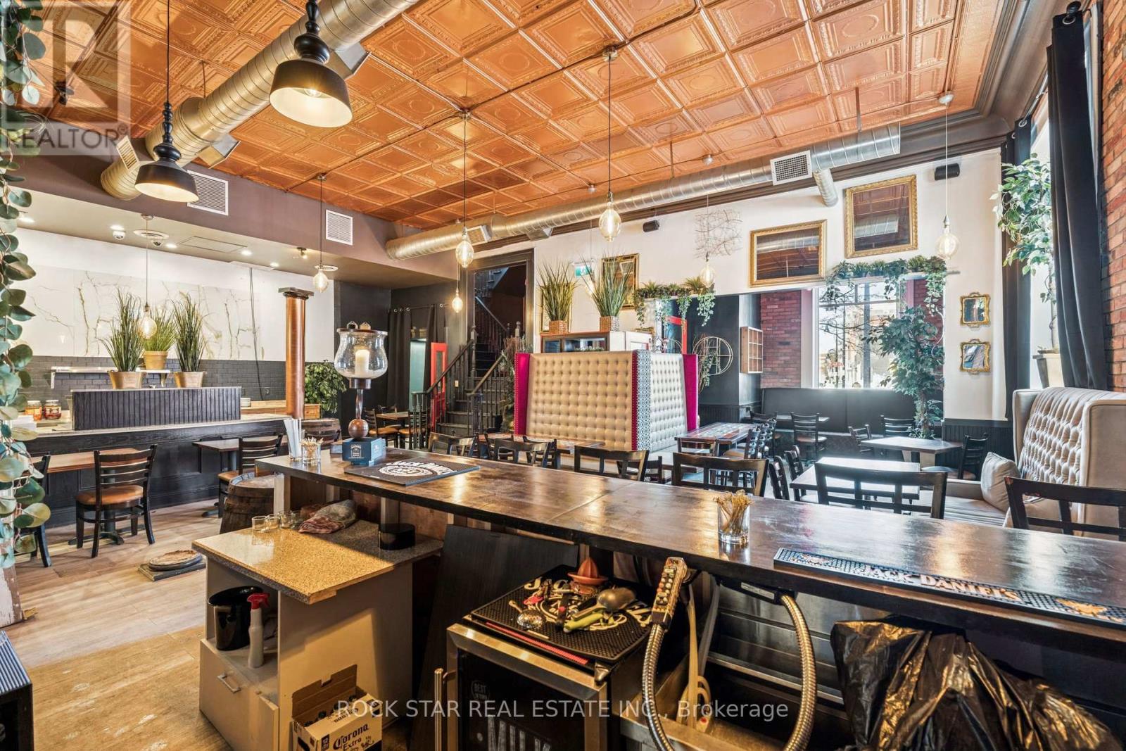 An exceptional leasing opportunity in the heart of downtown St. Catharines, offering unmatched character, visibility, and flexibility in a well-maintained historic two-storey commercial building. Originally constructed as a turn-of-the-century bank, the property features a striking open-concept main floor with high ceilings, excellent natural light, gas fireplace, bar and island area, ample cabinetry, appliances included, a two-piece washroom, and distinctive architectural details including the original bank vault. The space has previously operated as both a café and pizza restaurant and is well suited for food and beverage use, including the potential to open a restaurant or pizzeria, with a wood-burning oven in place and existing furniture such as tables and chairs. The second floor provides additional flexible usable space ideal for offices, meeting rooms, creative or event-style use and includes two two-piece washrooms, a separate shower room with sink, a kitchenette, and multiple storage areas. A full basement offers additional storage and utility space, one parking space is included at the rear, and the property is ideally located just steps from the Meridian Centre, First Ontario Performing Arts Centre, and the downtown core's shops, restaurants, and amenities. Property is also available for lease. (id:4555)