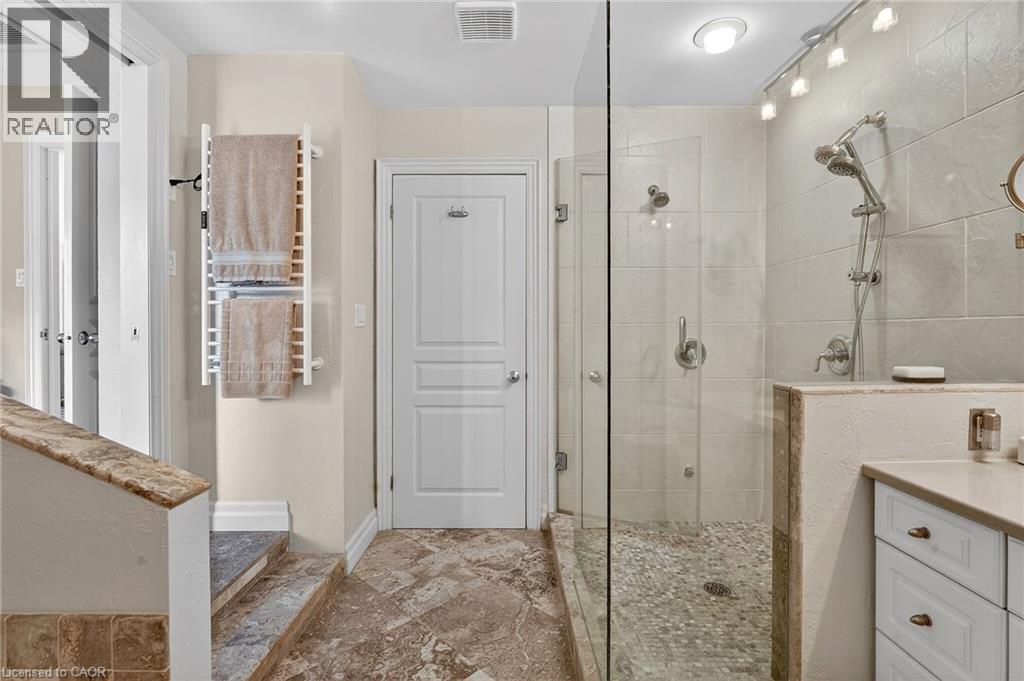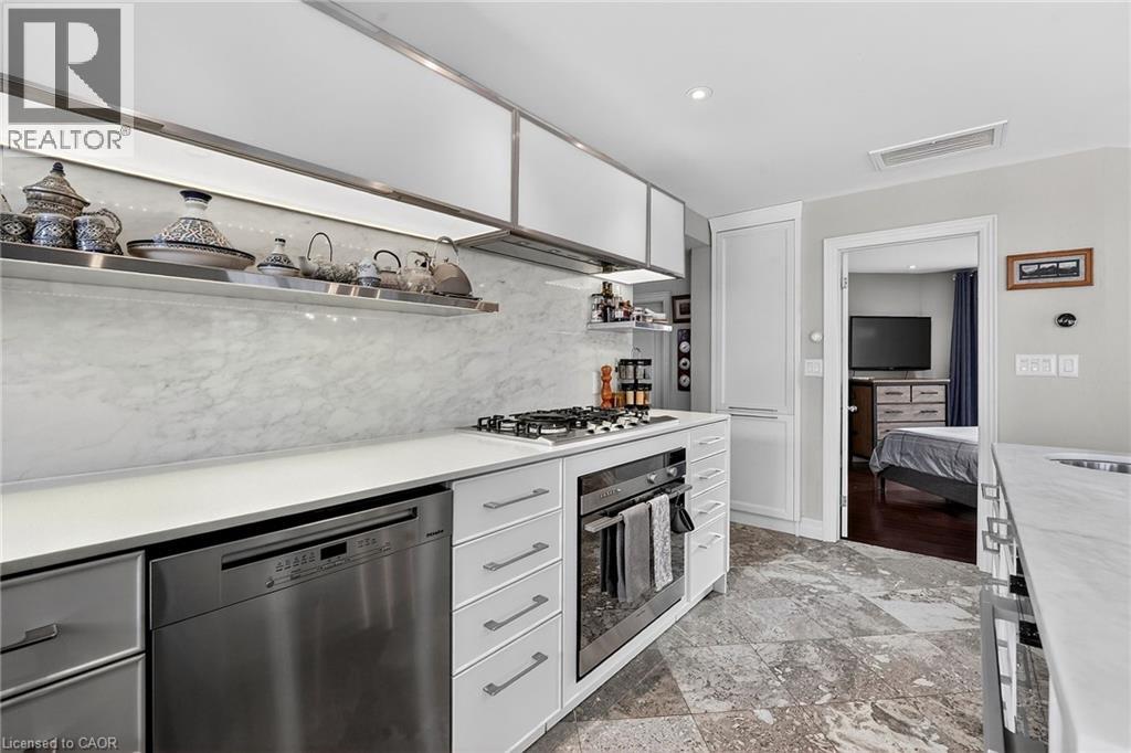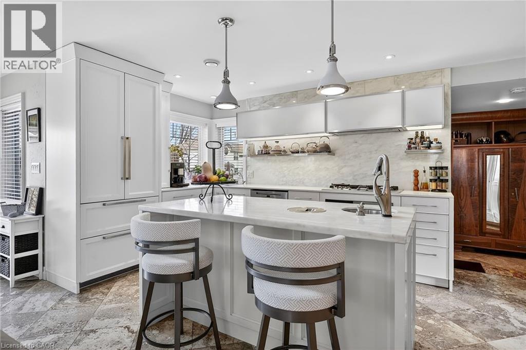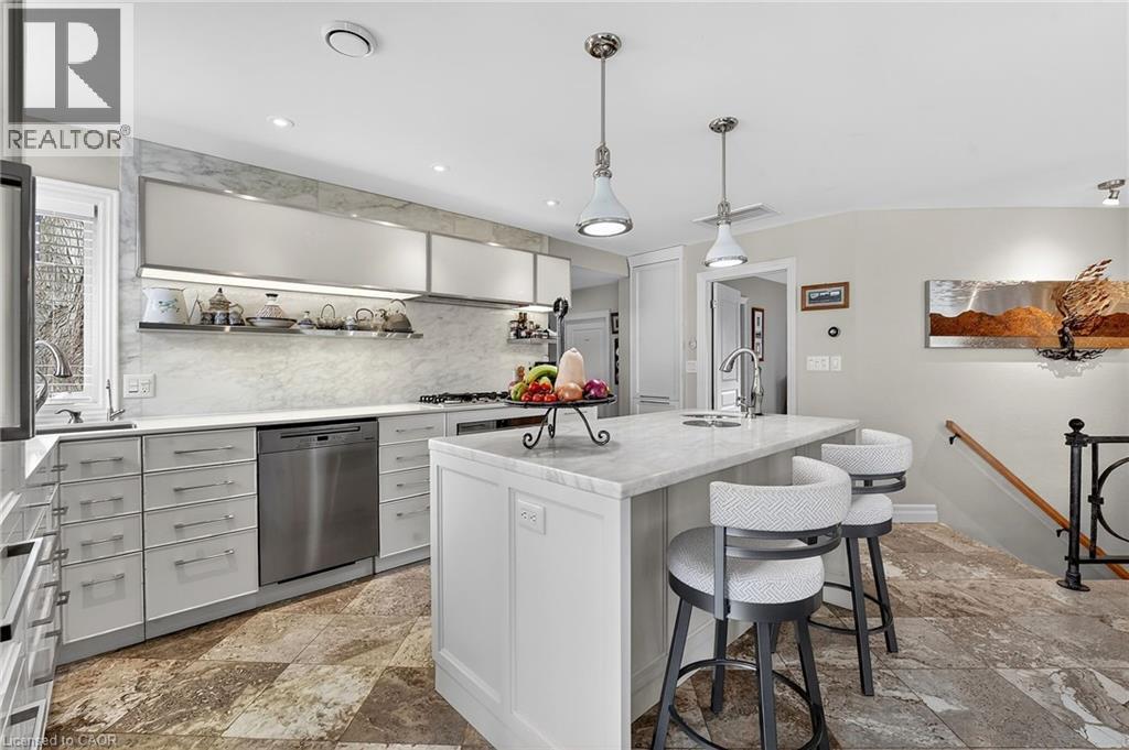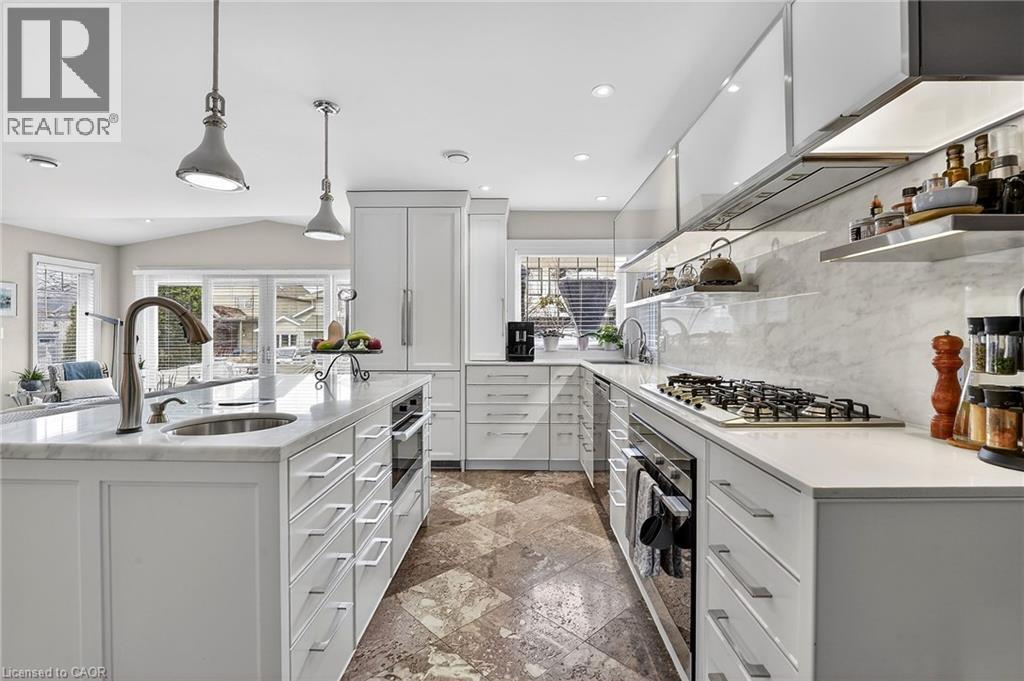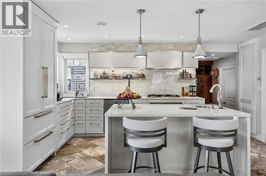 Beautifully appointed bungalow steps away from Lake Ontario, located in Port Dalhousie's exclusive cottage district. Enter into the welcoming foyer and step into this custom home that showcases a spacious and bright open main floor plan starting with the show stopping chef's kitchen! Luxury Miele and Fisher Paykel built-in appliances with floor-to-ceiling custom cabinetry, French limestone floors with in-floor heating in the kitchen and centre island with sink, ideal for gathering around for all occasions! The same luxury French limestone floors flow seamlessly into the great room which is centred around a focal gas fireplace. Vaulted ceilings and strategically placed pot lights provide a soft, relaxing feel. Sliding doors opens to a new deck with custom railing, perfect for enjoying with friends and faces the lake side. The great room melds with formal dining area, making this open plan the perfect space to entertain in all occasions! The primary suite is serene and offers generous walk-in closet and stunning ensuite spa bath with jacuzzi soaker tub, stand alone glass shower with raindrop shower head and separate handheld attachments. This ensuite also enjoys the comfort of in-floor heating. Back in the bedroom, there is access to private outside deck that runs the width of the house and displays flowerbed, quiet bbq area and shed. The fully finished basement with family room is a great area to hang out or watch a movie on the huge wall-mounted TV. Gorgeous 3-piece bath with in-floor heating. So many built-ins on which to showcase your collectibles. Niagara is known as Wine Country - so for the discerning oenophile, a spacious wine cellar with plenty of space to store vintages! Kitchenette/laundry room makes this lower living space the perfect retreat. Office has a tasteful murphy bed to accommodate guests staying overnight. Plenty of storage w/ shelving in furnace room. Perfectly sized lot for retirement or weekend getaway. Walk to Lakeside Park. Close to QEW! (id:4555)