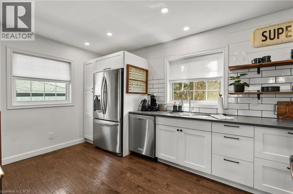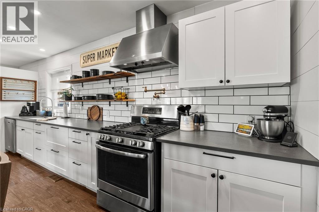 This beautifully updated North End St. Catharines bungalow brings a warm, Magnolia-inspired charm to everyday living. Sunlight pours through the open-concept main floor, drawing attention to the engineered hardwood and the bright, inviting kitchen that naturally becomes the heart of the home. Thoughtfully reimagined, the layout offers an easy, intuitive flow—equally suited to quiet mornings or lively gatherings. With 2 bedrooms and 2 bathrooms, plus a fully finished basement with a kitchenette, the home offers exceptional flexibility for extended family, guests, or a private workspace. The lower level also features a refreshed 3-piece bathroom, a dedicated laundry room, an additional room for storage or hobbies, and a generous open area ideal for a gym, media room, or family hangout. A practical mudroom connects directly to the attached garage, adding everyday convenience. Wrapped in insulated white siding, the exterior feels fresh, bright, and timeless. Outdoor living is just as inviting: a charming front porch with a pergola creates the perfect spot for morning coffee, watching the game, or chatting with neighbours. The fully fenced front yard offers a safe, contained space for children or pets, while the concrete driveway accommodates up to four vehicles. Located in a highly desirable pocket close to Port Dalhousie—under a 10-minute drive and just over a 2 km walk to waterfront trails—this home blends comfort, charm, and convenience. Renovated from top to bottom, it’s truly move-in ready and waiting for you to begin your next chapter. (id:4555)
