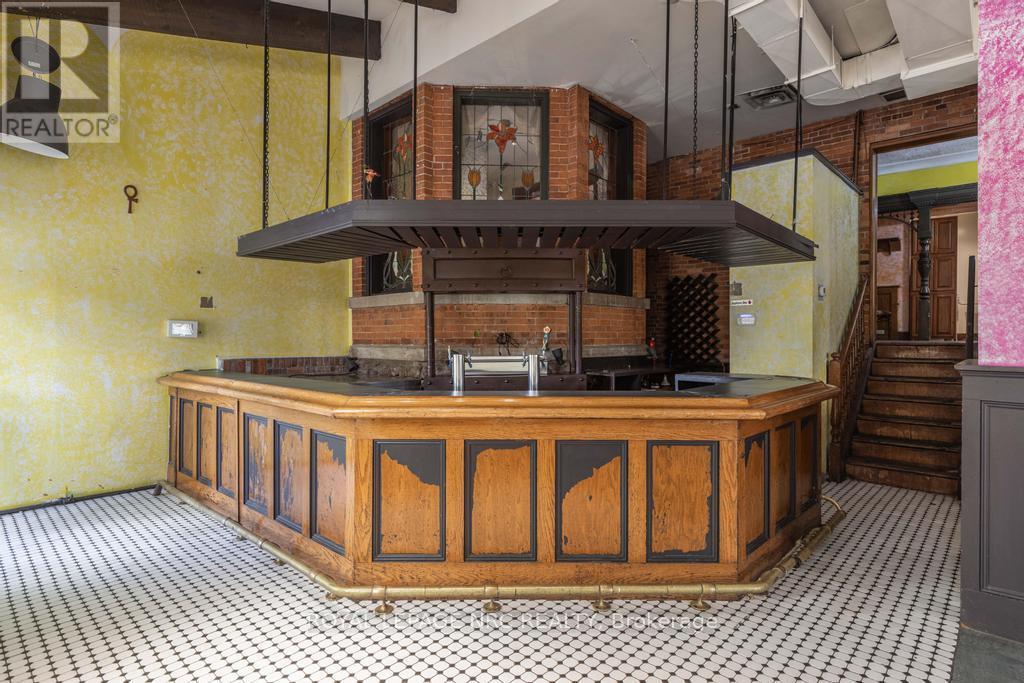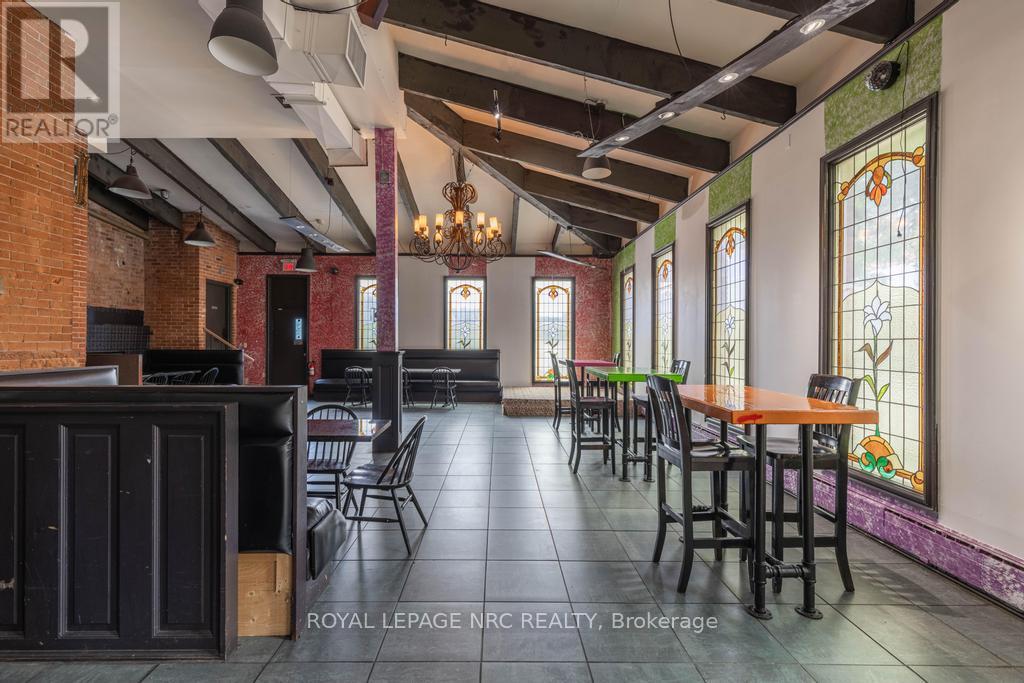 If you have been waiting for a downtown asset with scale, flexibility, and real upside, this is the one for you! Zoned M2 and located in the heart of downtown, this high-visibility property offers approximately 10,835 sq ft above-grade plus unfinished basement space. The main floor is currently configured with 2 commercial kitchens, a full bar, dining areas, and expansive open zones. Multiple entrances support strategic reconfiguration, including the potential to divide the space into 3 micro commercial units, opening the door to diversified revenue streams and stronger long-term stability for tenants and ownership alike. The second floor includes 3 residential units, with potential to add a 4th unit on the main level, strengthening the overall income profile. The existing mixed-use layout provides opportunities for immediate revenue while leaving room to optimize and intensify over time. From a systems standpoint, the infrastructure is already in place to support commercial-scale operations. The building is well-equipped with 400amp service to the commercial space and 200amp to the residential units. It also includes an industrial water tank under 10 years old, a water filtration system, approximately 1.5 to 2-inch water feed, 2 grease traps, basement chillers for pop guns, and a bar keg setup. Fire safety measures are in place with a fire safety plan, suppression systems, interconnected fire pulls, and dedicated exits for each residential unit. Additionally, 7 on-site parking spaces plus ample nearby public parking further support commercial and residential use. To support the next stage of development or repositioning, the seller is open to a 3-year VTB. The rare combination of zoning, square footage, and central positioning creates multiple avenues for income today and development potential for tomorrow. (id:4555)