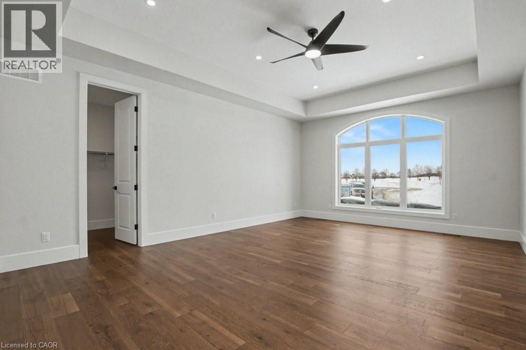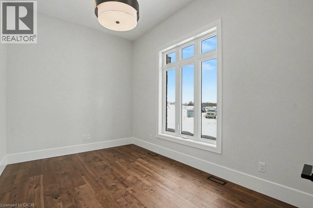 Welcome to this newly built custom home offering 2,375 sq ft of thoughtfully designed living space in the charming community of St. Clements, just minutes from Waterloo. This home features 2 bedrooms plus a den, with the den easily functioning as a third bedroom or home office. The open-concept layout is enhanced by 10'4-foot ceilings, with 9-foot primary bathroom ceilings, 8-foot doors, abundant natural light, and pot lights throughout, creating a bright and modern atmosphere. The custom kitchen is a focal point of the home, showcasing a tutor frame design, stone countertops and backsplash, and quality craftsmanship. From the kitchen, enjoy views of the private backyard, lined with mature trees and fencing. Step outside to the covered deck, ideal for outdoor living and entertaining. The home includes a full basement with the floor spray-foamed and roughed-in for in-floor heating, along with direct stair access from the garage. A rare offering, the property boasts an impressive 5-car garage with man doors to both the front and back of the home. Completing the package is a detached 21’ x 34’ shed featuring 13.5 foot ceilings, a 12-foot garage door, with a man door—perfect for storage, a workshop, or recreational vehicles. This exceptional custom-built home combines modern design, functional spaces, and a peaceful setting in a sought-after rural community close to city conveniences. (Photos may include virtual and AI staging. Some images have been enhanced to illustrate potential and may not reflect the property’s current condition - such as landscaping) (id:4555)
