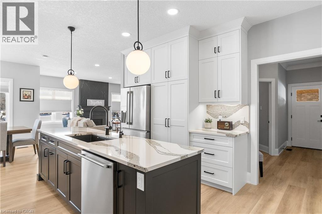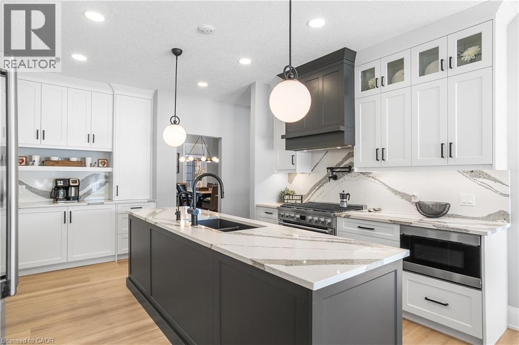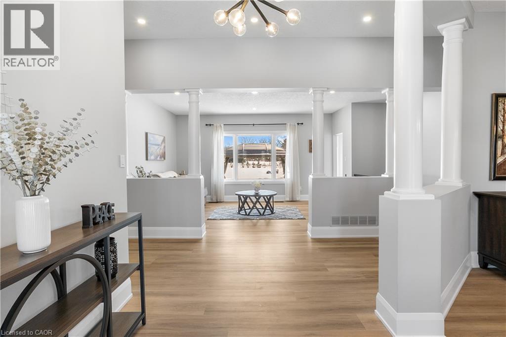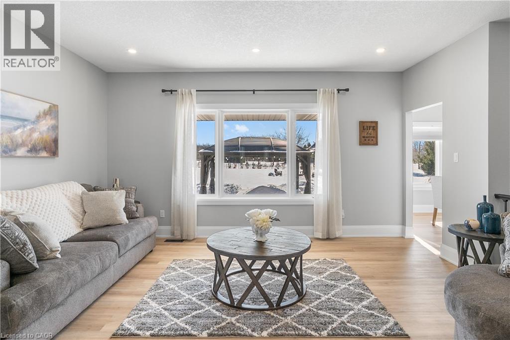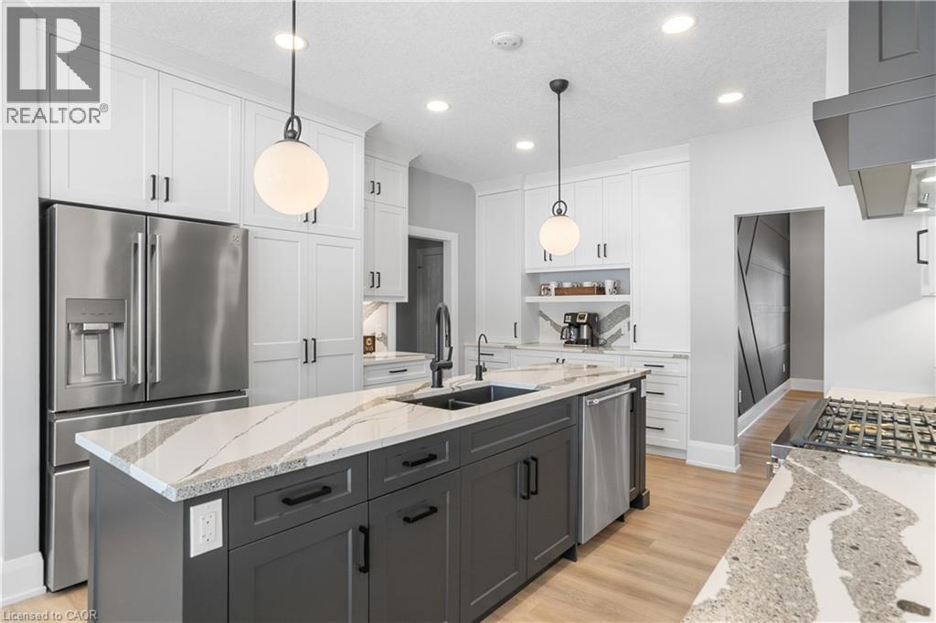 Welcome to one of St. George’s most scenic estate communities, where the approach is as impressive as the destination. Introducing 2 Cloverlea Crescent, an extensively upgraded custom bungalow situated on a beautifully landscaped 1.7-acre lot, offering almost 5,500 sq. ft. of thoughtfully designed living space that balances comfort, functionality, and timeless style. The interior showcases soaring 9’, 10’, and 11’ ceilings, a bright open-concept layout, and carefully selected finishes and lighting throughout. Statement feature walls and architectural details add character while maintaining a warm, cohesive feel. Ideal for entertaining or multi-generational living, the home features two fully equipped kitchens, each with generous island space, upgraded appliances, and efficient layouts designed for everyday use and hosting alike. The main level offers spacious principal rooms with excellent flow, along with direct access to the rear yard from both the kitchen and the primary bedroom. Outdoor living is equally inviting, with a covered front porch, a large rear patio, and space to relax or entertain while enjoying open views of the surrounding property. Designed with versatility in mind, the lower level includes a separate walk-up entrance, providing excellent in-law or extended family potential. With 4+ bedrooms, 4.5 bathrooms, two kitchens, and two laundry rooms, the layout allows for privacy and flexibility. Garage accommodations are equally impressive, featuring an attached heated 3-car garage and a recently built heated detached garage with space for up to four additional vehicles. The detached garage also includes a staircase leading to approximately 800 sq. ft. of finished upper-level space, suitable for a variety of uses. A rare opportunity to own a spacious, well-appointed estate property in a sought-after setting. (id:4555)