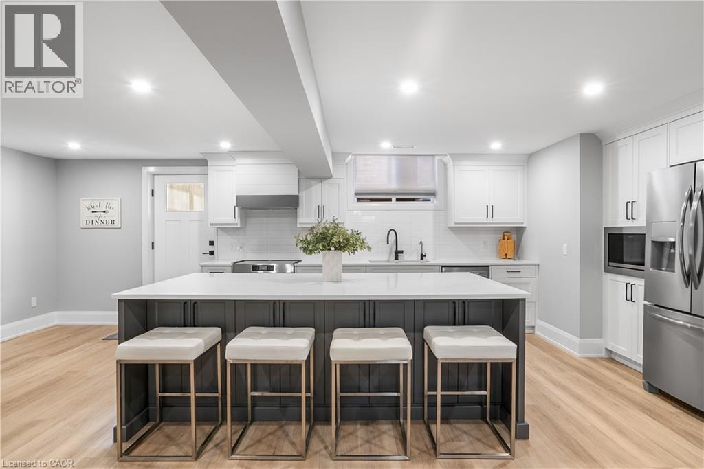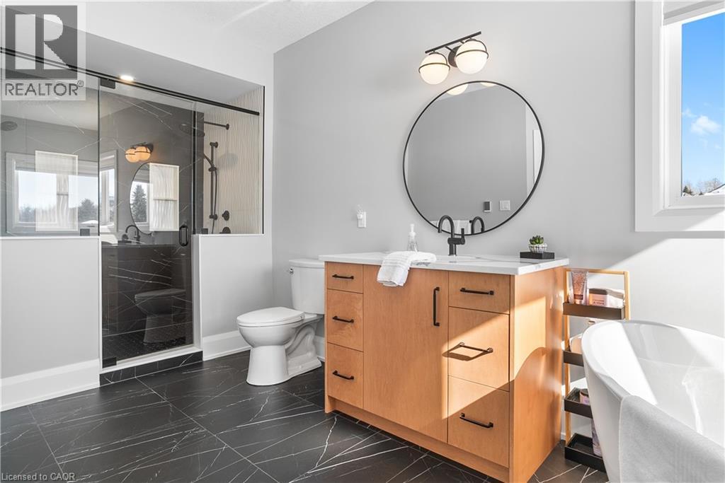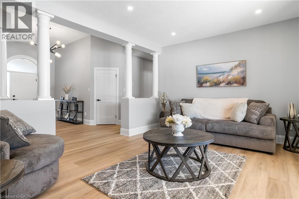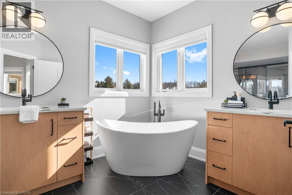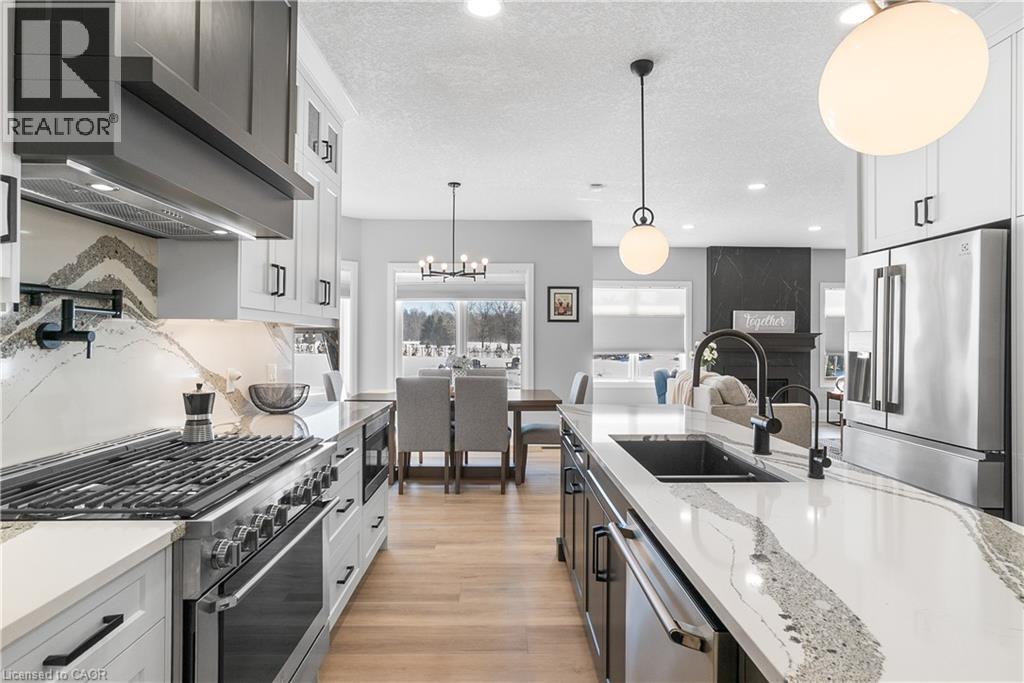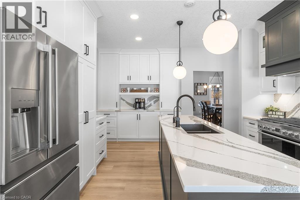 Welcome to one of St. George’s most scenic estate communities, where the approach is as impressive as the destination. Introducing 2 Cloverlea Crescent, an extensively upgraded custom bungalow situated on a beautifully landscaped 1.7-acre lot, offering almost 5,500 sq. ft. of thoughtfully designed living space that balances comfort, functionality, and timeless style. The interior showcases soaring 9’, 10’, and 11’ ceilings, a bright open-concept layout, and carefully selected finishes and lighting throughout. Statement feature walls and architectural details add character while maintaining a warm, cohesive feel. Ideal for entertaining or multi-generational living, the home features two fully equipped kitchens, each with generous island space, upgraded appliances, and efficient layouts designed for everyday use and hosting alike. The main level offers spacious principal rooms with excellent flow, along with direct access to the rear yard from both the kitchen and the primary bedroom. Outdoor living is equally inviting, with a covered front porch, a large rear patio, and space to relax or entertain while enjoying open views of the surrounding property. Designed with versatility in mind, the lower level includes a separate walk-up entrance, providing excellent in-law or extended family potential. With 4+ bedrooms, 4.5 bathrooms, two kitchens, and two laundry rooms, the layout allows for privacy and flexibility. Garage accommodations are equally impressive, featuring an attached heated 3-car garage and a recently built heated detached garage with space for up to four additional vehicles. The detached garage also includes a staircase leading to approximately 800 sq. ft. of finished upper-level space, suitable for a variety of uses. A rare opportunity to own a spacious, well-appointed estate property in a sought-after setting. (id:4555)