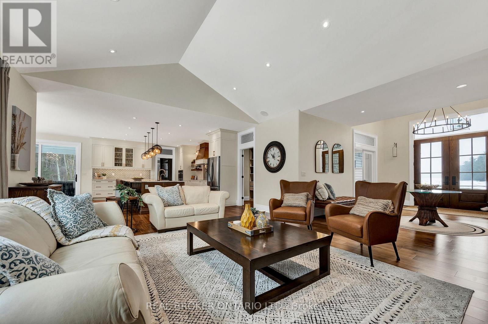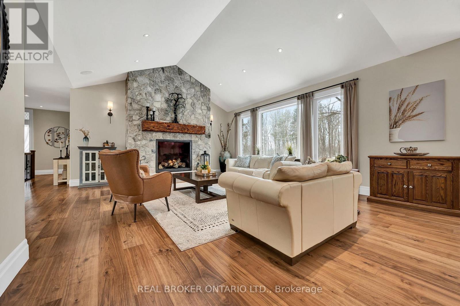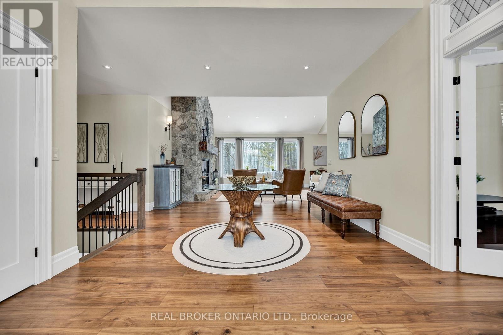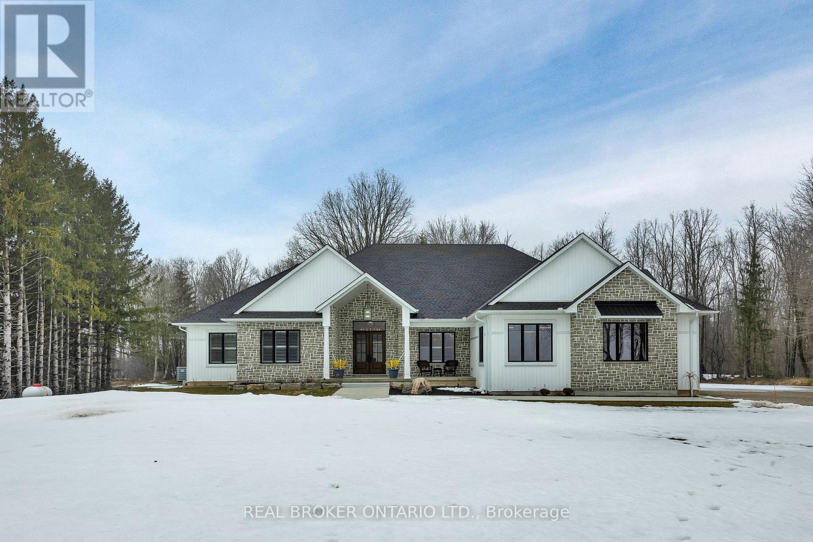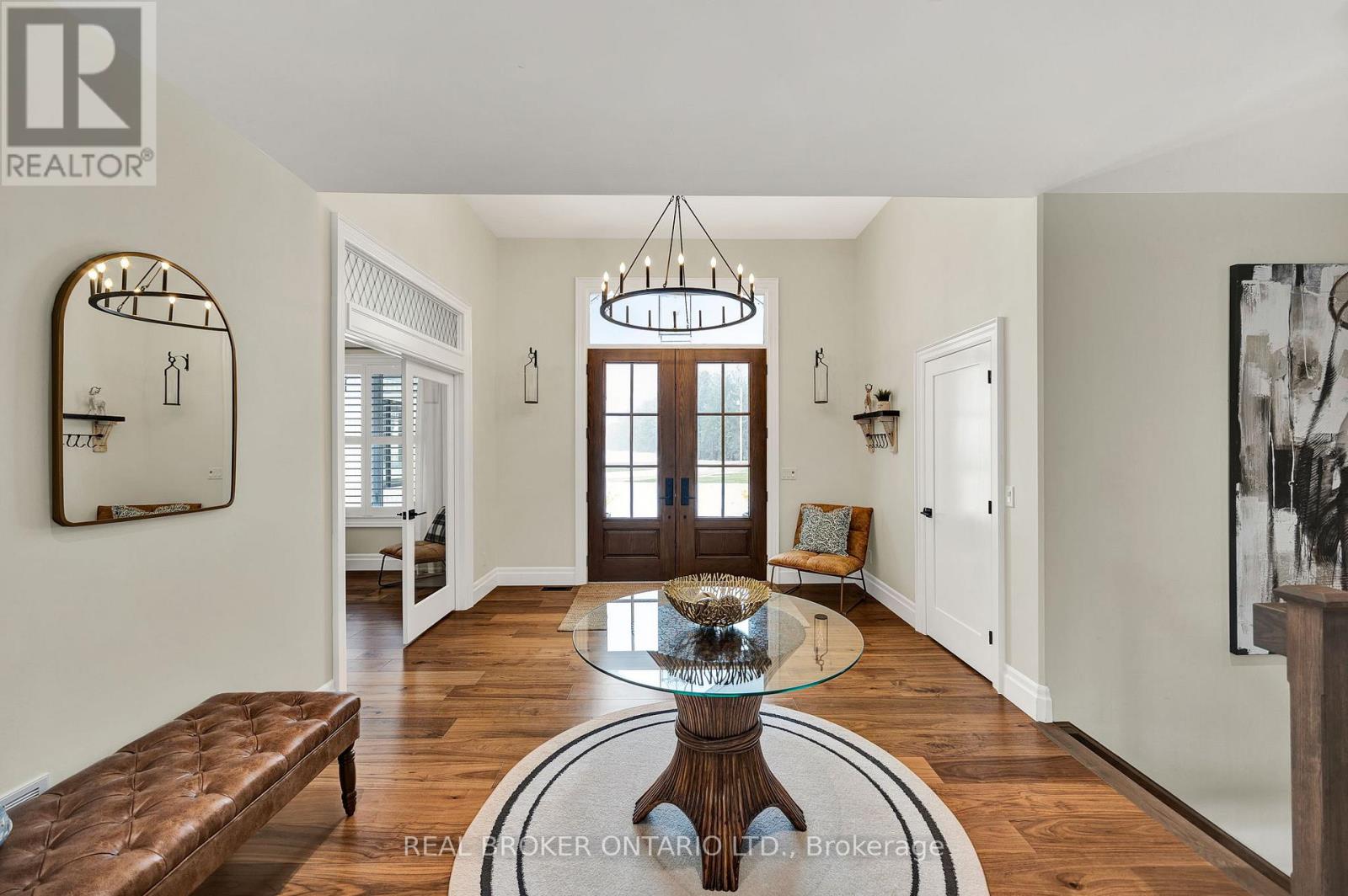 Set on just over 12 acres of hardwood forest, this exceptional custom-built home offers the perfect balance of privacy and luxury, just minutes from St. Marys and Stratford. Surrounded by nature and frequently visited by deer and other wildlife, this property provides a peaceful country lifestyle without sacrificing convenience. Inside, the home features 5,592 sq ft of beautifully finished living space with thoughtful design throughout. The main living area is anchored by a stunning stone fireplace and framed by large windows that flood the home with natural light while showcasing the views of the surrounding forest. The chef-inspired kitchen was designed for gathering and entertaining, featuring custom cabinetry, an impressive 5' x 11' island, and a premium LG Studio appliance package, including an induction cooktop, combination wall oven, french door refrigerator, and more. Elegant finishes continue throughout the home with premium engineered hardwood flooring, solid wood interior doors, interior transom windows, and more. The primary suite has coffered ceilings, two walk-in closets, a spa-inspired ensuite complete with a soaker tub, glass walk-in shower, and quartz counters.The finished basement, offers a large recreation room, home theatre with built-in surround sound, additional bedroom, bathroom, home gym, and storage. Oversized windows bring plenty of natural light into the space.You will appreciate the impressive 32' x 41' triple-car garage, offering plenty of room for vehicles, equipment, and workshop space. Step outside to enjoy the 20' x 20' covered porch, the perfect place to relax and take in the peaceful surroundings. With acres of mature hardwood forest, abundant wildlife, and thoughtfully designed living spaces, this property offers a rare opportunity to enjoy luxury country living in a truly breathtaking setting. A detailed property information package prepared for buyer review is available through MLS via your REALTOR. (id:4555)