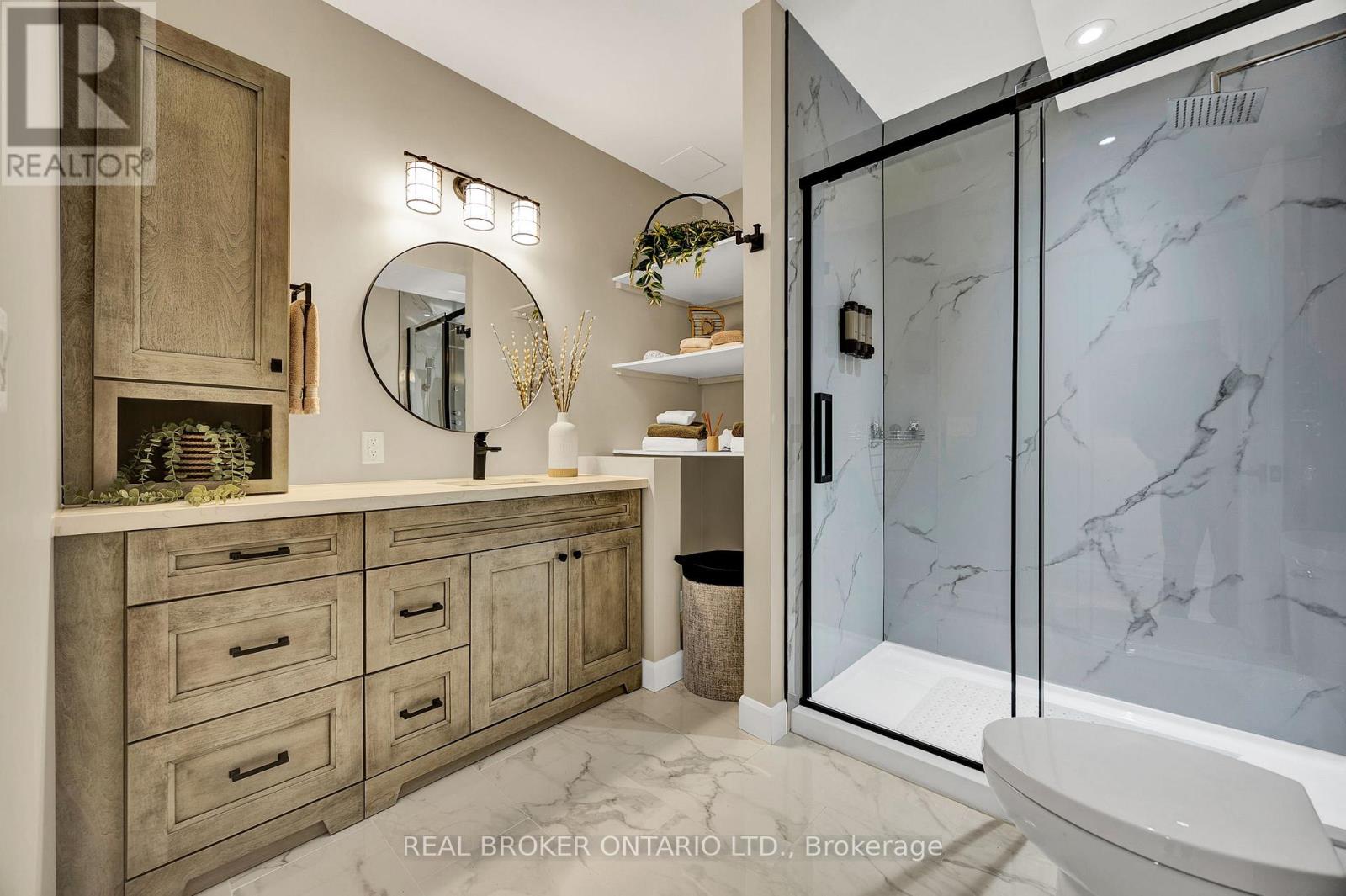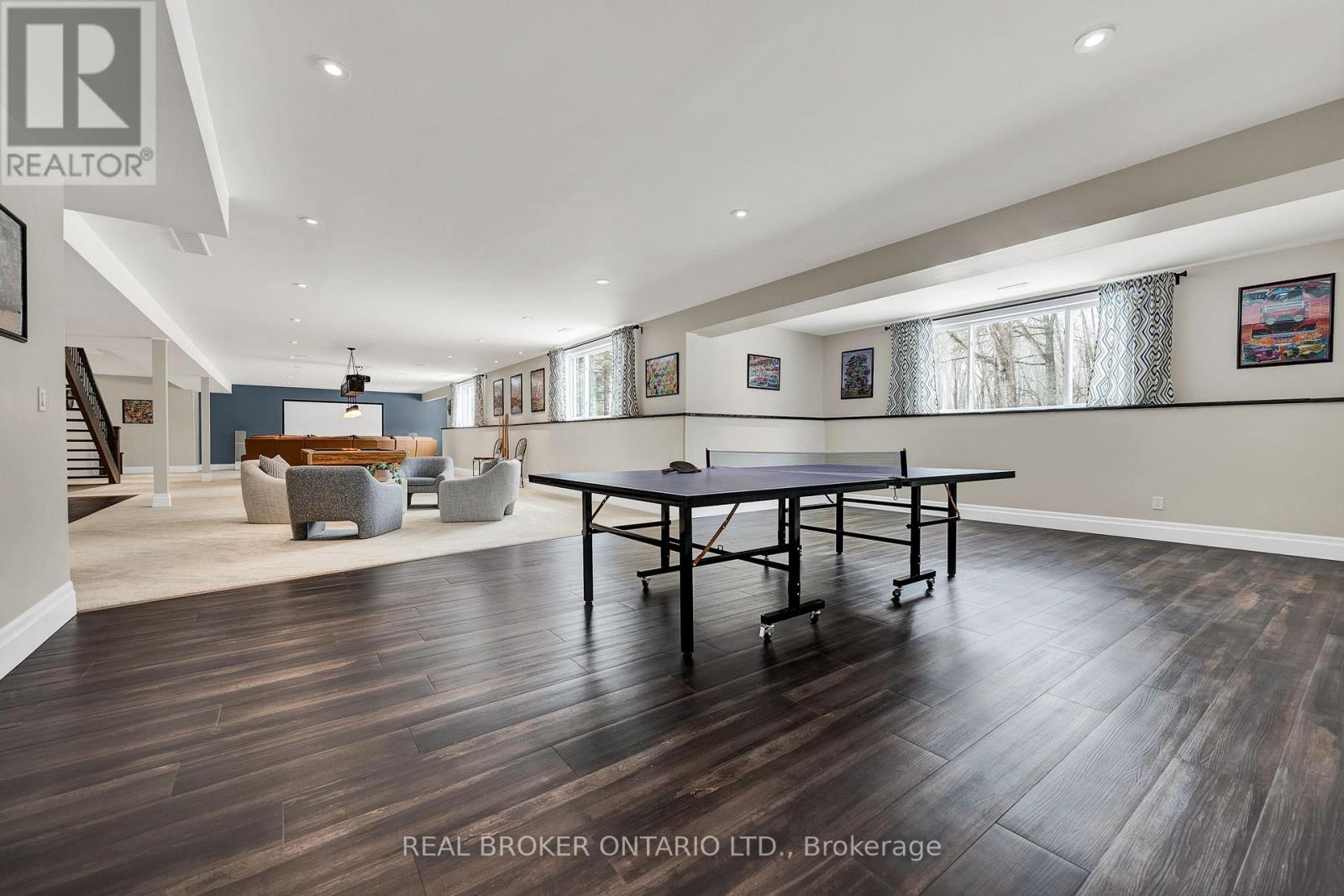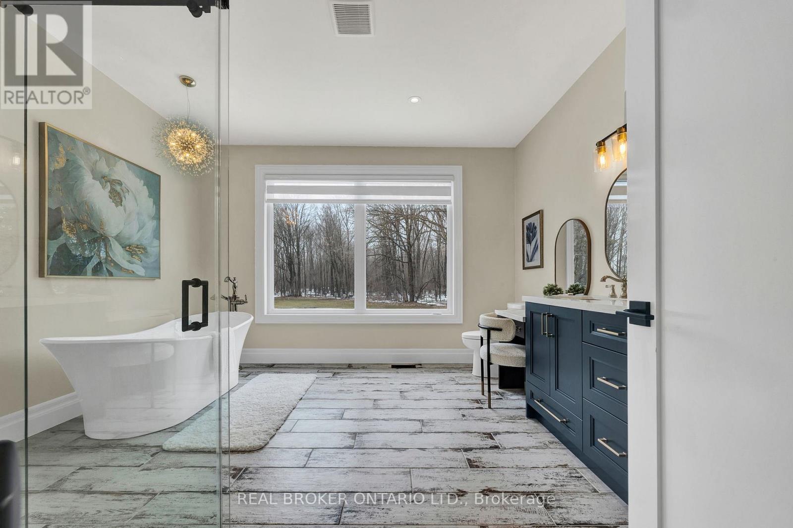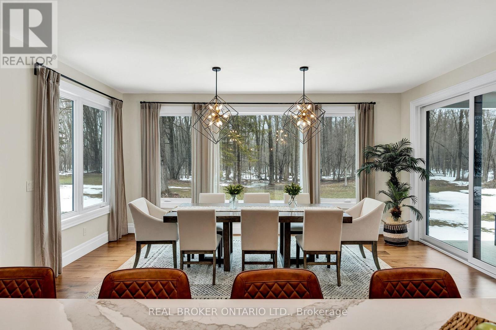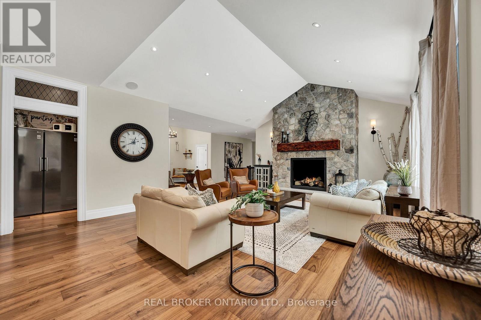 Set on just over 12 acres of hardwood forest, this exceptional custom-built home offers the perfect balance of privacy and luxury, just minutes from St. Marys and Stratford. Surrounded by nature and frequently visited by deer and other wildlife, this property provides a peaceful country lifestyle without sacrificing convenience. Inside, the home features 5,592 sq ft of beautifully finished living space with thoughtful design throughout. The main living area is anchored by a stunning stone fireplace and framed by large windows that flood the home with natural light while showcasing the views of the surrounding forest. The chef-inspired kitchen was designed for gathering and entertaining, featuring custom cabinetry, an impressive 5' x 11' island, and a premium LG Studio appliance package, including an induction cooktop, combination wall oven, french door refrigerator, and more. Elegant finishes continue throughout the home with premium engineered hardwood flooring, solid wood interior doors, interior transom windows, and more. The primary suite has coffered ceilings, two walk-in closets, a spa-inspired ensuite complete with a soaker tub, glass walk-in shower, and quartz counters.The finished basement, offers a large recreation room, home theatre with built-in surround sound, additional bedroom, bathroom, home gym, and storage. Oversized windows bring plenty of natural light into the space.You will appreciate the impressive 32' x 41' triple-car garage, offering plenty of room for vehicles, equipment, and workshop space. Step outside to enjoy the 20' x 20' covered porch, the perfect place to relax and take in the peaceful surroundings. With acres of mature hardwood forest, abundant wildlife, and thoughtfully designed living spaces, this property offers a rare opportunity to enjoy luxury country living in a truly breathtaking setting. A detailed property information package prepared for buyer review is available through MLS via your REALTOR. (id:4555)