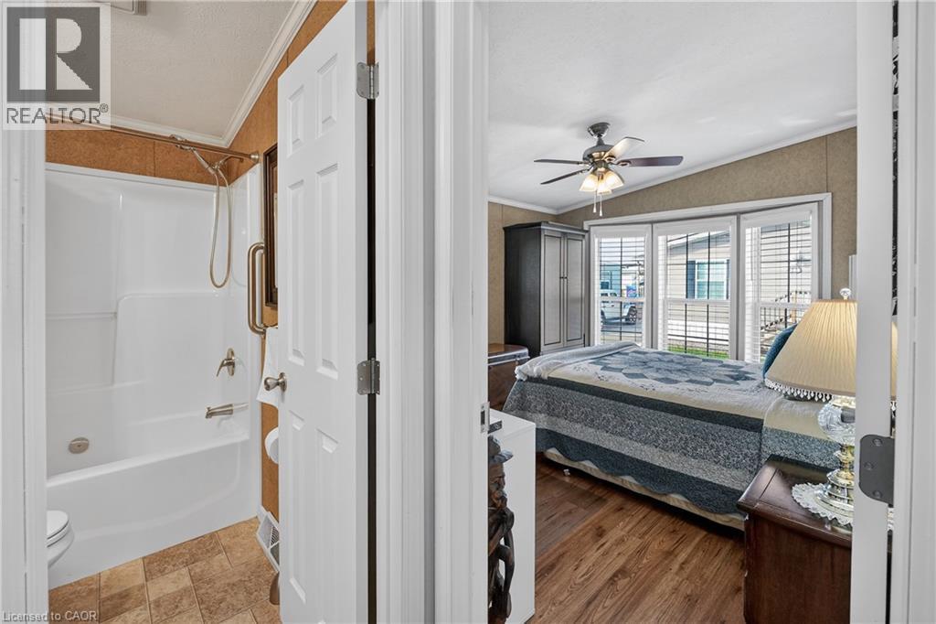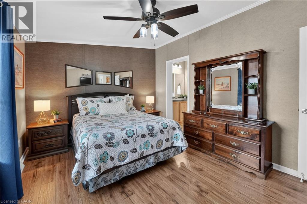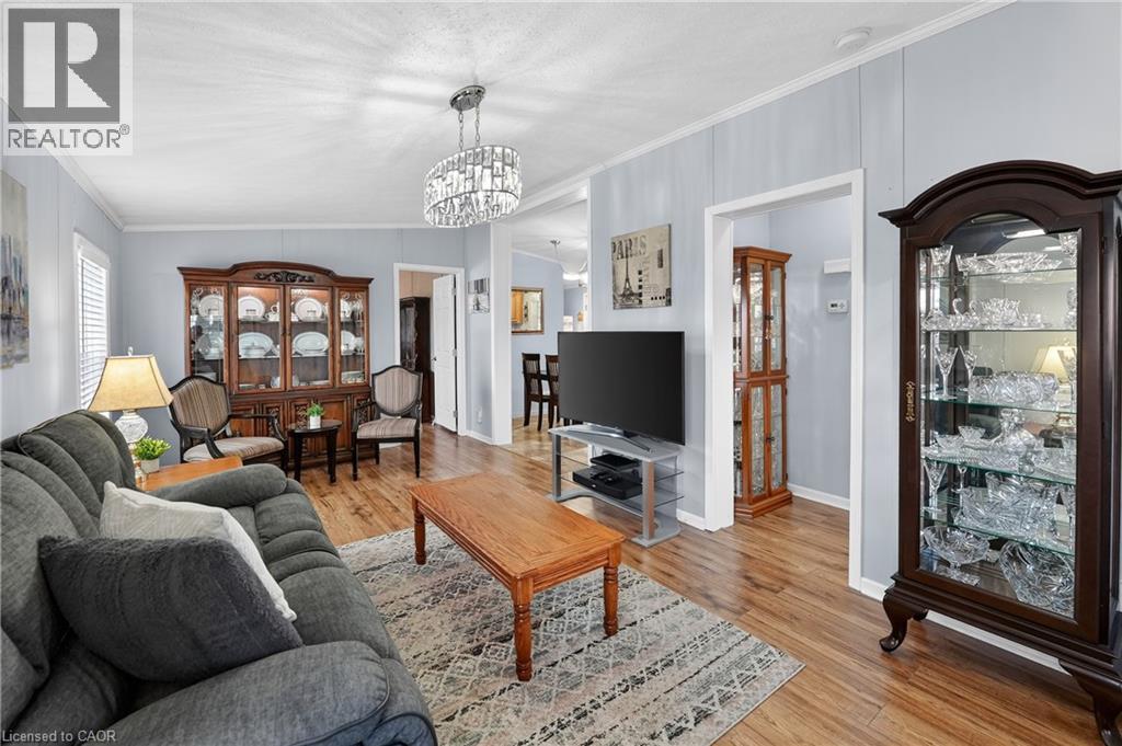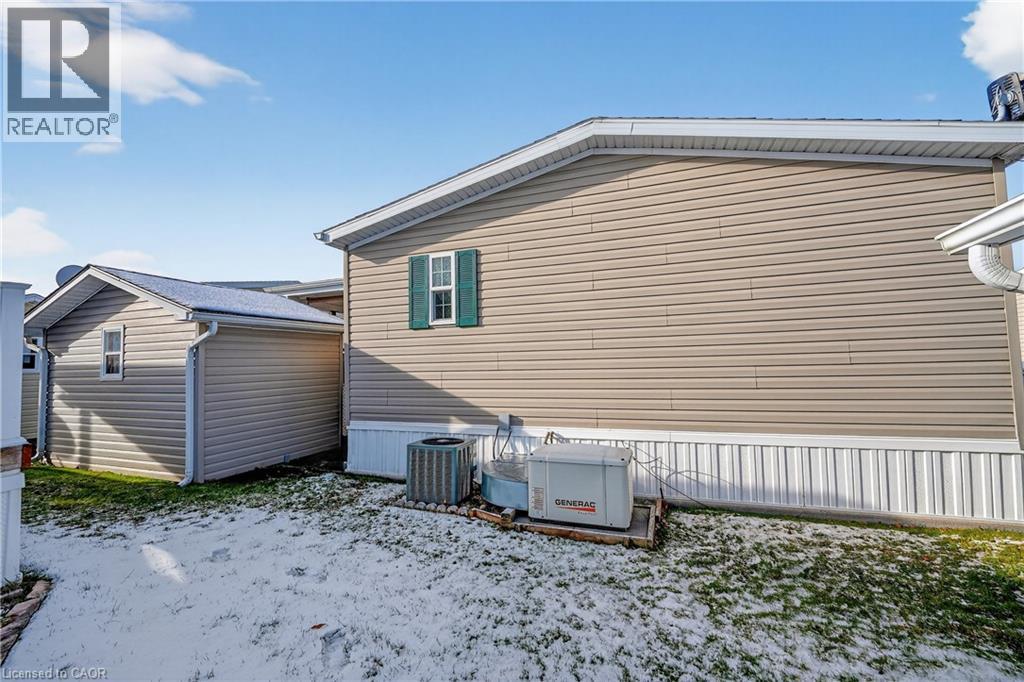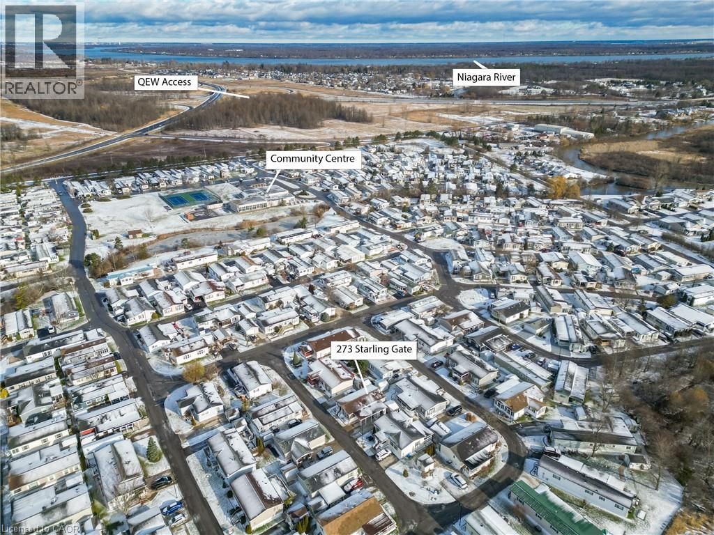 MODERN COMFORT, COMMUNITY LIVING … OPEN CONCEPT living shines throughout this bright and welcoming home at 273-3033 Townline Road (273 Starling Gate) in Stevensville’s sought-after Black Creek Adult Lifestyle Community. Natural light, updated flooring, and refreshed fixtures set a warm tone the moment you step inside. The spacious living room flows effortlessly into the eat-in kitchen, complete with a newer fridge and sink, gas stove, under-cabinet lighting, pantry, ample cabinetry, and convenient access to the laundry area featuring a newer washer and dryer. From here, walk out to the impressive 15.10’ x 11.7’ side deck - an XL outdoor extension perfect for entertaining, complete with patio lighting and permanent exterior GOVEE smart lights that offer an innovative and customizable ambiance at the touch of an app. The primary bedroom provides a peaceful retreat with a walk-in closet and its own 3-pc ensuite that includes a walk-in shower with a seat. A second bedroom offers flexibility for guests, a home office, or a cozy family room. The additional 4-pc bath, and both bathrooms feature raised toilets for added comfort and accessibility. Outside, an extended double concrete drive with carport allows parking for up to four vehicles, while the hydro-equipped garden shed adds valuable storage. BONUS ~ Generac Generator means peace of mind! Living here means more than just enjoying a beautiful, low-maintenance home - it means embracing a vibrant, gated community-focused lifestyle. Residents have full access to top-tier amenities: indoor and outdoor pools, sauna, clubhouse, shuffleboard, tennis/pickleball courts, fitness classes, and an active social calendar that keeps neighbours connected and engaged. If you’re seeking comfort, convenience, and community all in one, this Stevensville opportunity delivers. Monthly fees: $1102.12 ($850 land lease + $252.12 estimated taxes). CLICK ON MULTIMEDIA for virtual tour, drone photos, floor plans & more. (id:4555)