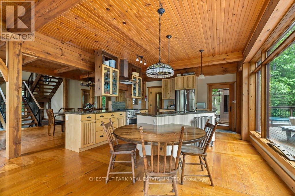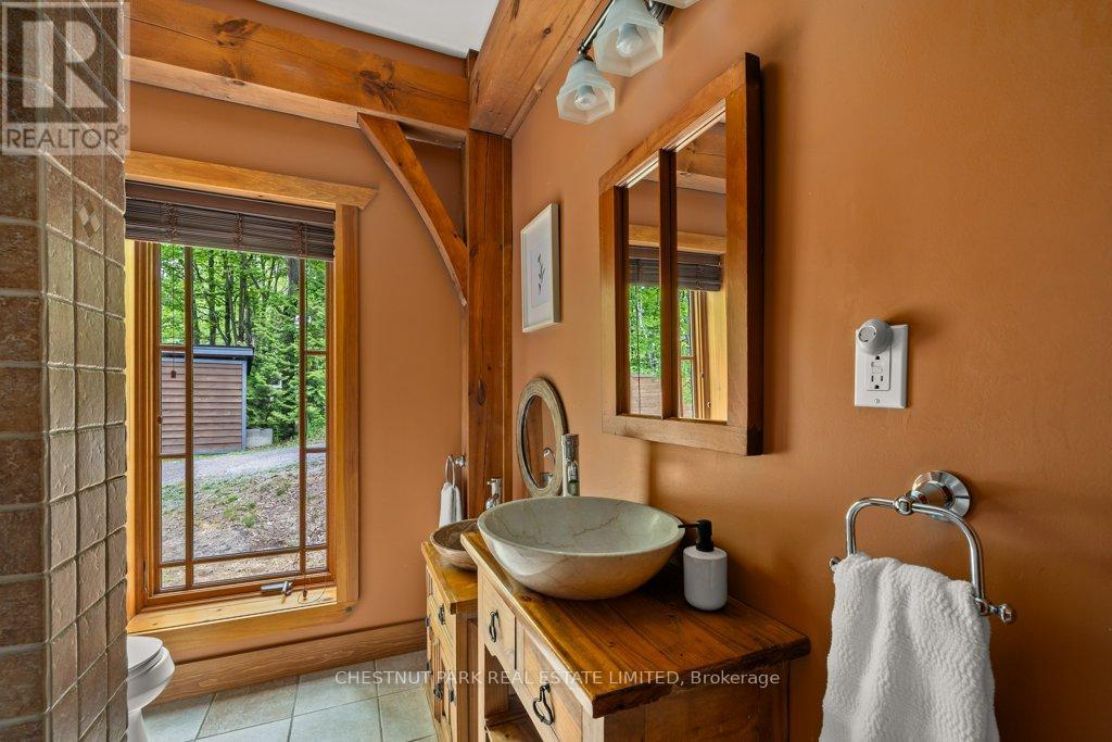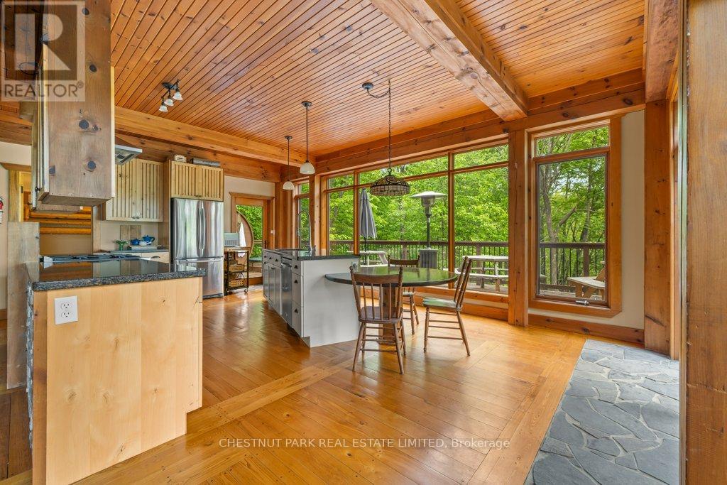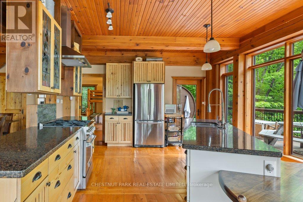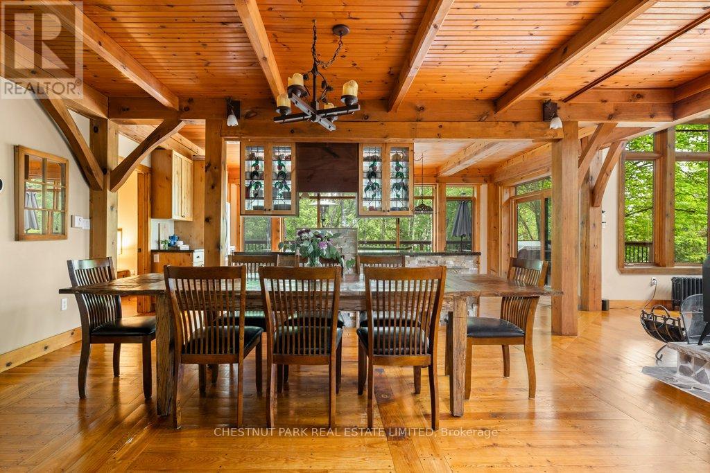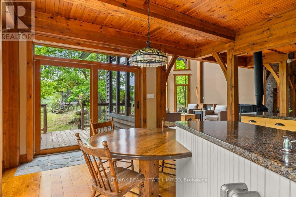 Welcome home to 488 Gull Creek Lane! A stunning timber frame home that features over 4,000 sq ft of living space, 5 bedrooms, 3 bathrooms on the crystal-clear waters of Sheffield Long Lake, just north of Tamworth. Expertly crafted with true timber joinery and no nails, this one-of-a-kind architectural gem features soaring cathedral ceilings, massive floor-to-ceiling windows, beautiful hardwood floors, and an open-concept layout filled with natural light. The chef's kitchen offers granite countertops, stainless steel appliances, and abundant workspace, flowing seamlessly to a wrap-around deck complete with sauna, hot tub, cold plunge, BBQ, and plenty of seating. The walkout basement includes a large rec room, two additional bedrooms, and a flex space ideal for a gym or studio. Enjoy two acres of property with over 350 feet of pristine private waterfront with a large dock and swim platform, plus a charming bunkie/art studio and a screened, covered patio perfect for entertaining. Completely off-grid, this property boasts a $100K solar and battery system, radiant in-floor heating, a drilled well, and a metal roof for year-round comfort. Located just 2h 45m from Toronto, 2h from Ottawa, and 45 minutes from Kingston, this is lakeside living at its finest! (id:4555)