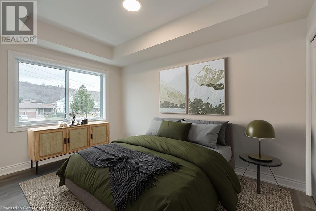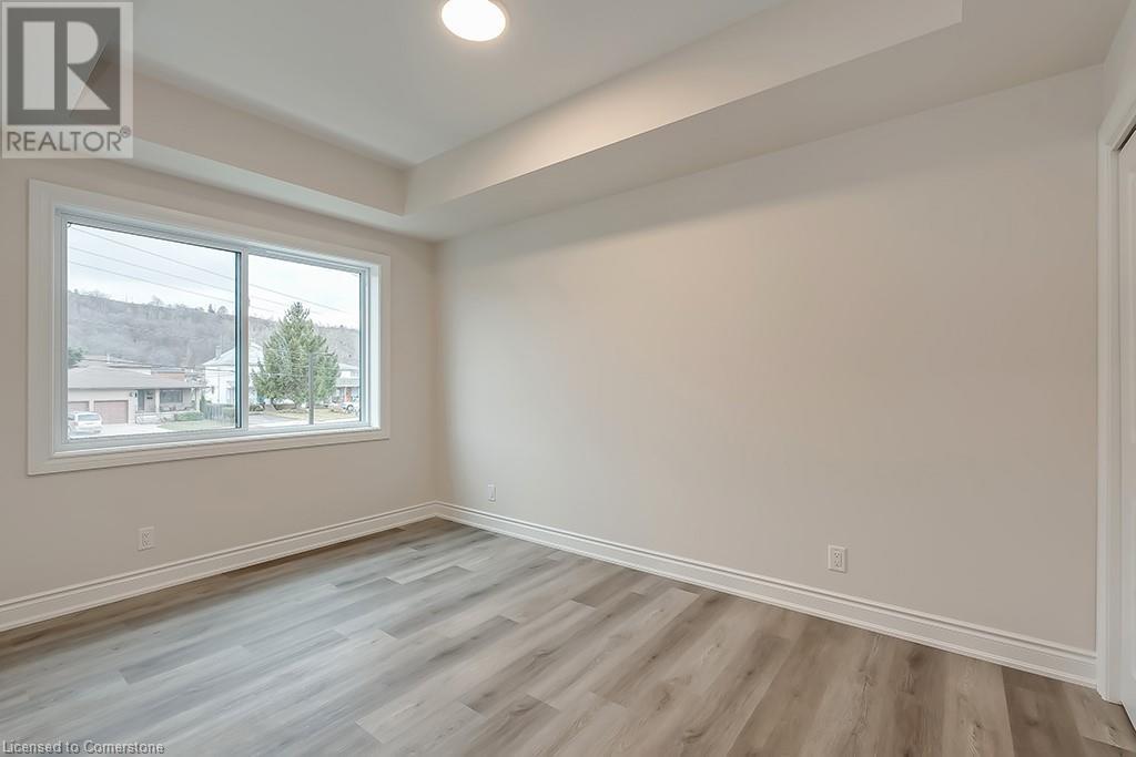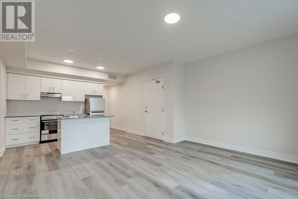 Be the first to live in this gorgeous 877 square foot open concept, 2-bedroom 1 bath unit in Stoney Creek. Beautiful modern finishes include vinyl flooring, stainless steel appliances, quartz counter tops, high ceilings, and in suite laundry. The unit includes one parking space (#24) and the BBQ picnic area, bike storage and visitor parking all make this boutique condominium a great place to live. Close to downtown Stoney Creek and all it has to offer as well as parks, shopping, and transit, this unit is ready for you to call home. (id:4555)