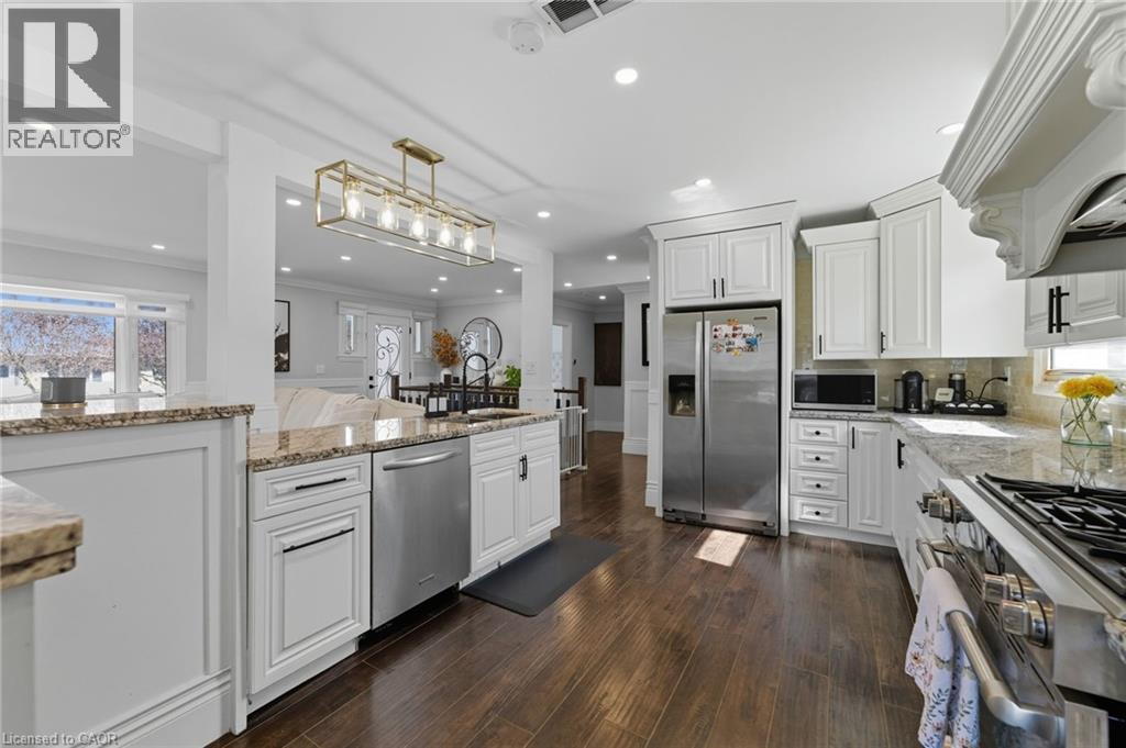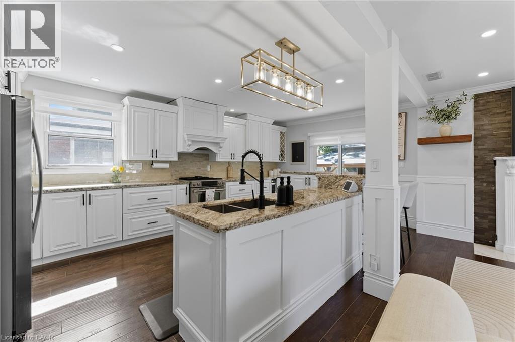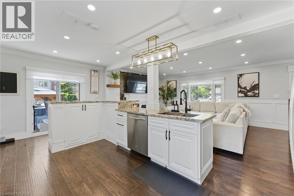 Welcome to this updated 2-bedroom bungalow on a 70 100 ft lot in one of Stoney Creeks family-friendly neighbourhoods. From the moment you arrive, the curb appeal stands out with a fresh stucco exterior, black accents, a new roof (2023), and an aggregate driveway with parking for 6 cars. Inside, youll find a bright, open-concept main floor with a living room featuring pot lights and a fireplace, flowing into the eat-in kitchen with granite countertops, plenty of cabinet space, and a walkout to the backyard perfect for everyday living and get-togethers. The main floor also includes two comfortable bedrooms and a 4-piece bathroom with double sinks! A fully enclosed mudroom connects the garage, main house, and both the front and back yards, keeping shoes, coats, and bags organized and making coming and going a breeze. The finished basement adds even more living space with a large rec room, extra bedroom or office area, and a second 3-piece bathroom. Outside, youll enjoy a private backyard with a patio and gazebo, ideal for barbecues, family time, or simply relaxing at the end of the day. Located close to parks, schools, and shopping, this home is ready for its next owners book your showing today. (id:4555)
