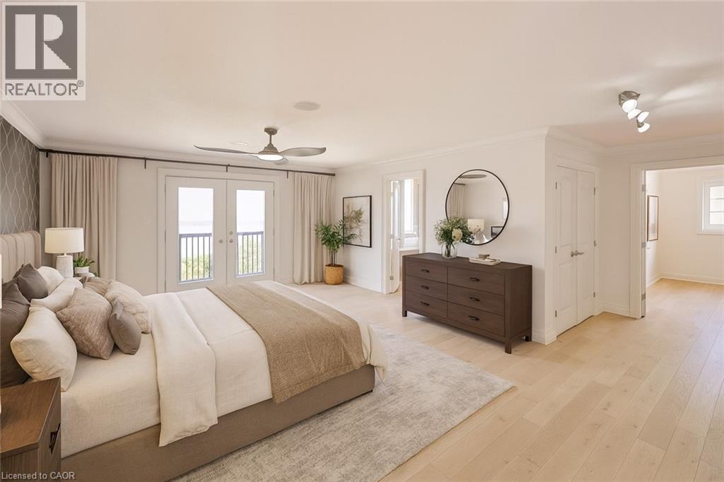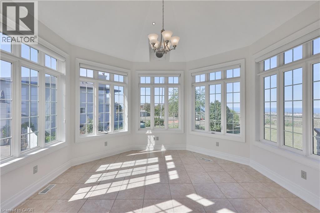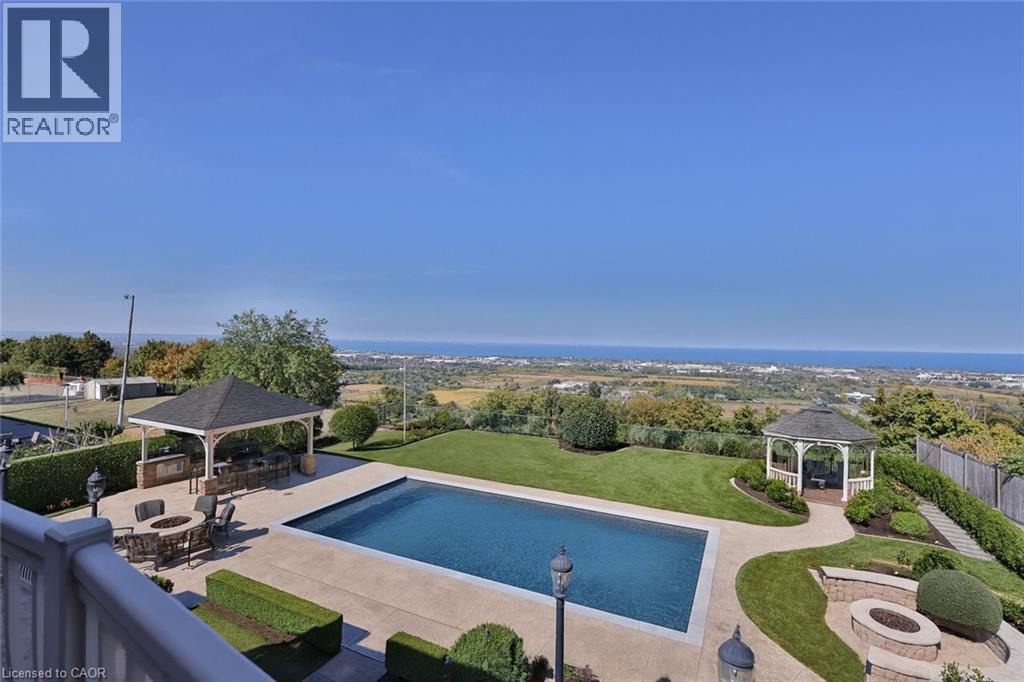Welcome to 803 Ridge Road an extraordinary custom-built residence set on a pristine 0.81 acre lot with breathtaking vistas of Lake Ontario and the Toronto skyline. Spanning nearly 9,000 sq.ft. of finished living space, this home masterfully combines timeless craftsmanship with modern luxury.Step into the grand foyer with 19 ceilings and an elegant oak and wrought-iron staircase. The expansive living and great rooms feature multiple fireplaces, soaring ceilings, and walls of windows that flood the home with natural light. A double-sided fireplace connects the great room to the breakfast area and kitchen area. A custom gourmet kitchen is a chefs dream, appointed with CAPITAL, Viking, and Electrolux appliances, built-in cabinetry, a spacious pantry, and a walk-out to the patio. A formal oversized dining room connected to the ventilated solarium ideal for a cigar lounge or private retreat and wet bar make this level perfect for entertaining. The primary suite is a true sanctuary with its own fireplace, private balcony overlooking the lake, a massive walk-in closet, and a spa-like 6-piece ensuite. Every bedroom offers its own ensuite, and two additional bedrooms enjoys a balcony with panoramic lake views. A cozy family room overlooking the front yard completes this level, providing a quiet retreat for evenings at home. The fully finished lower level was designed for both leisure and wellness. It includes two bedrooms plus full bathroom, a home theatre, a fitness room, and recreation room, a dumbwaiter for convenience and a wine cellar. Ample storage rooms make it as functional as it is luxurious. This is a rare offering a lakeview luxury estate with every amenity imaginable, minutes to Burlington, Oakville, and quick highway access. (id:4555)