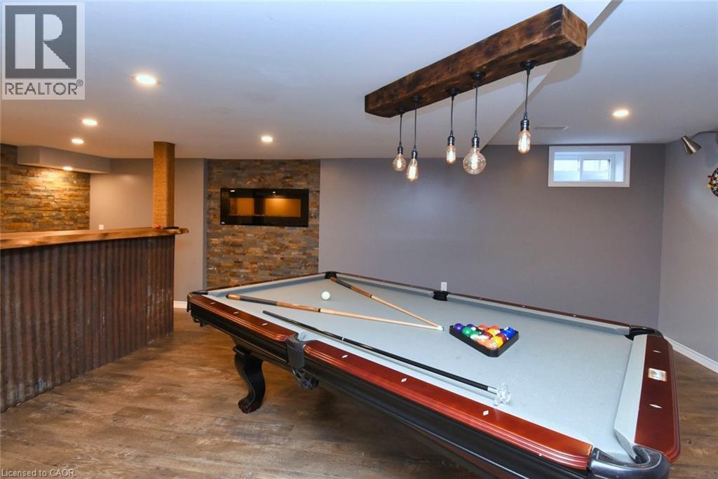 This beautiful 2 storey, 3.5 bathroom sits on pie shape lot in Prime Stoney Creek location. (36.52 x 172) 120 across in the back. Loads of features includes to brand new renovated upstairs bath & ensuite with his/hers sink with quartz counter tops, new flooring, paint, lighting, shower tile, facets. Hardwood floors & vinyl floors through-out (carpet free) beautiful staircase with iron spindles. Large sunken family room with gas fireplace. Bright large Eat-in Kitchen with stainless appliances. Totally finished lower level with vinyl flooring, pot lights, 3 piece bathroom, electric fireplace, wet bar and home theatre screen and projector. Beautiful modern kitchen with quartz counter tops. Heated garage. Large private pie shaped backyard to entertain your family & friends. Minutes to highway Toronto & Niagara, Costco and Lake. A must see, turn key move in condition. (id:4555)