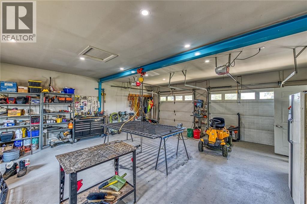 Welcome to breathtaking, beautiful home at 982 Highland Road E, Stoney Creek. A rare opportunity to own unique property in rural Stoney Creek by escaping city traffic, while staying just minutes from city conveniences. Renovated and updated large bungalow features 3 spacious bedrooms with hardwood flooring, open concept kitchen, dining room, living room, 5 pcs bathroom (heated floor) and sun room on main floor. Fully finished lower level features In-Law suite set up, with another large eat-in-kitchen, bedroom, full bathroom (heated floor), laundry and plenty of storage space. Step outside to humongous family friendly back yard, with large covered sitting area between garage and home for enjoyment and entertainment of summer days/nights. Standout feature of this property is detached double car garage/workshop. This is dream come true for hobbyist, trades people, or anyone needing ample storage or parking spaces that can fit up to 14-15 cars. Endless possibilities are here. Property offers the ideal combination of function, comfort, and accessibility. Call today to make this versatile, family oriented property your own! 100x200 lot. RSA (id:4555)