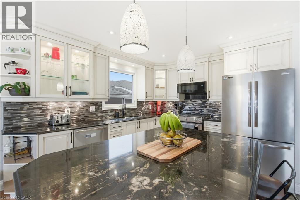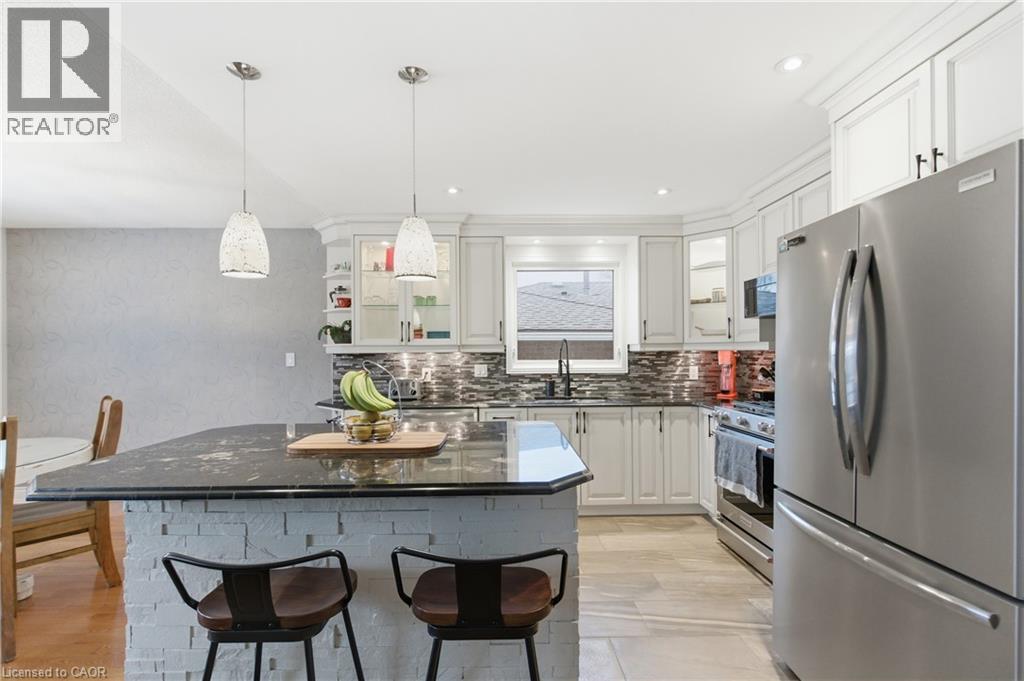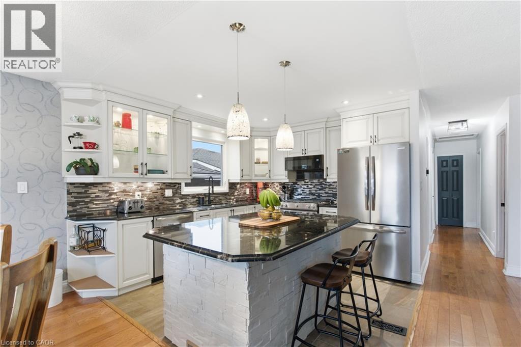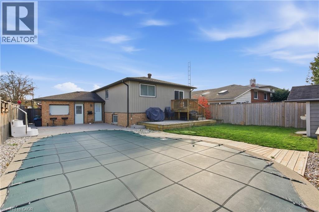 Welcome to 71 Allanbrook Street in a welcoming Stoney Creek Mountain community. This raised bungalow offers 3 + 2 bedrooms and 2 full baths. A bright foyer opens into a warm and inviting living space, enhanced by hardwood floors. The spacious living and dining area flows into a custom kitchen featuring granite countertops, stainless steel appliances, and attractive board and batten detailing. The primary bedroom includes sliding doors to a private deck. Two additional bedrooms and a well-appointed 5-pce bathroom complete the upper level. The lower level provides a generous rec room, 2 bedrooms, a 3-pce bathroom, and a laundry area with a tankless water heater. Step outside to a private backyard oasis complete with a heated in ground pool and an expansive entertaining area. An attached garage, exposed aggregate driveway, and updated siding add to the home’s appeal. Conveniently located close to the Red Hill, Linc, QEW, hiking trails, schools, the community centre, and shopping. (id:4555)