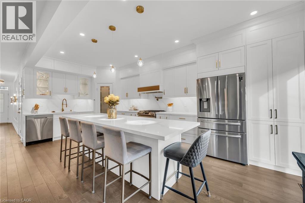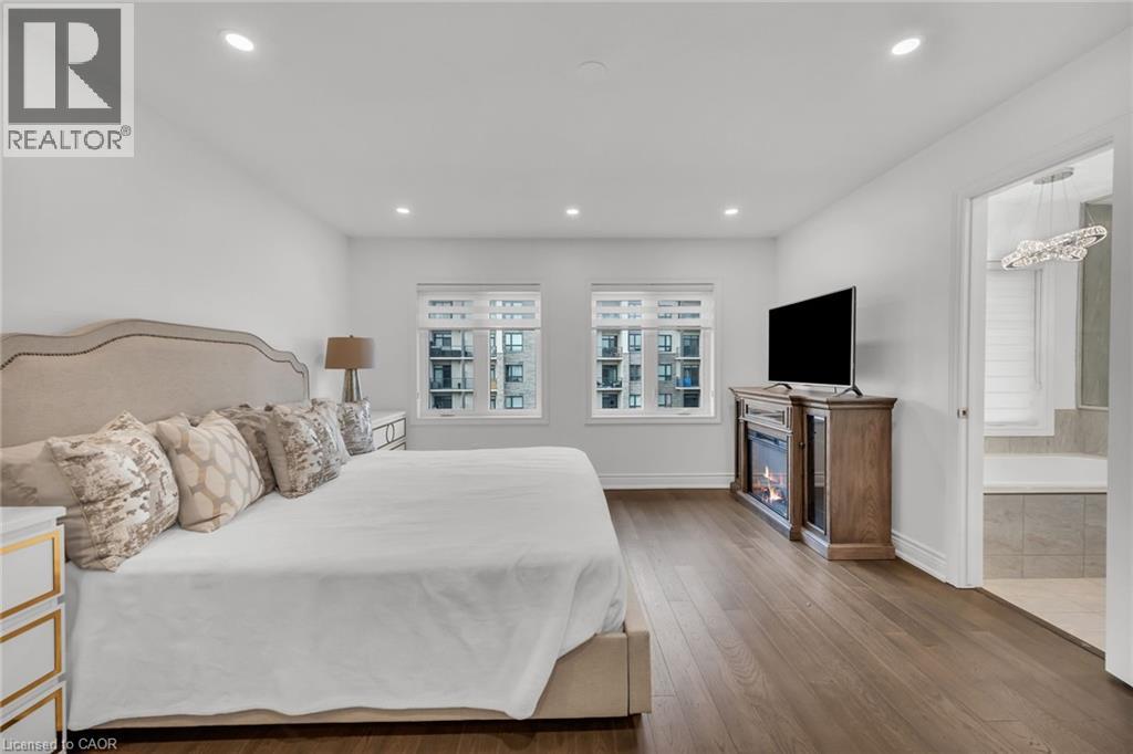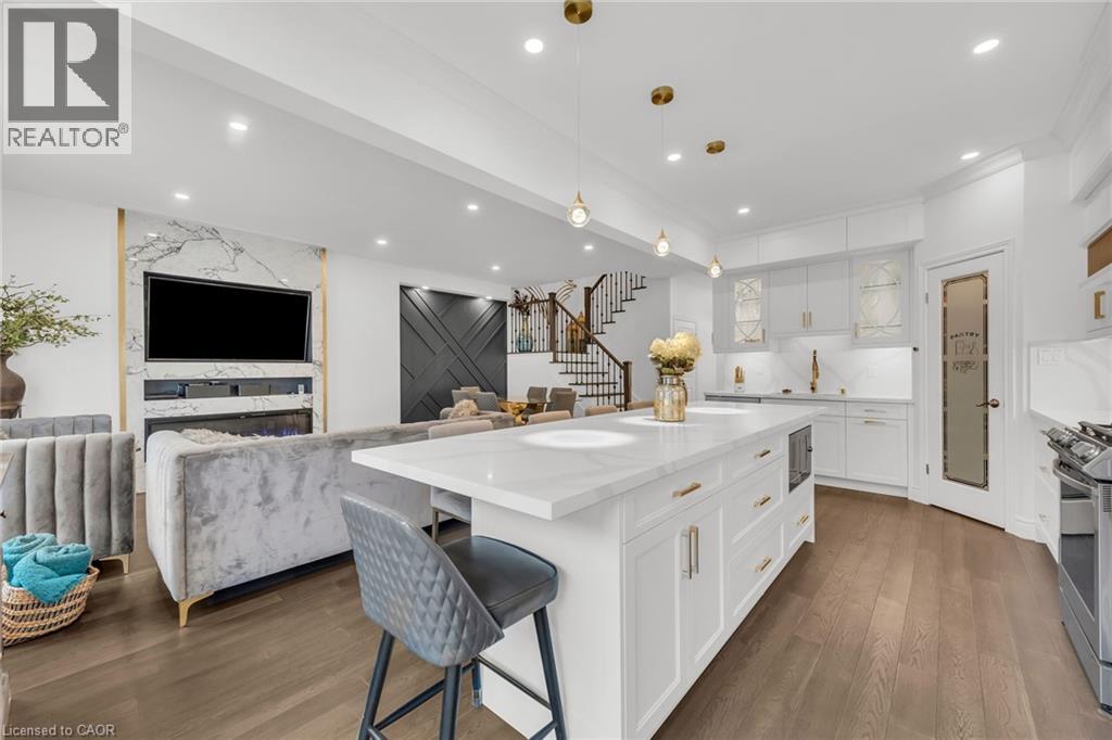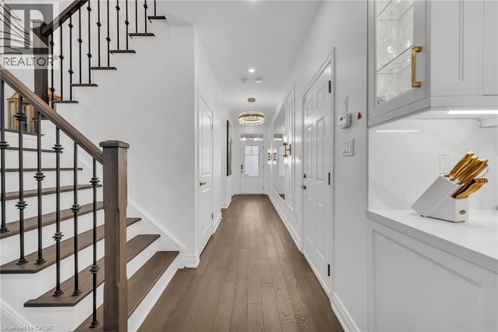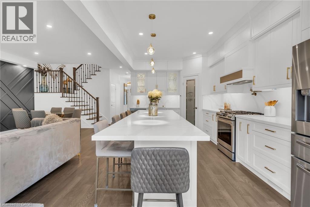 Luxury Lakefront Living along with Lakeside Trails & Sandy Beach. Main floor Features 9 Foot Ceilings Throughout with Open Concept Main Floor, Private Office Space & custom designer powder room with upgraded light fixtures and cascade window shades add to the upscale feel of the home. The custom kitchen is a chef's dream, with quartz counters, custom backsplash, under valance lighting, pantry, pot filler, glass Rinser, garburator, huge Island with storage & all stainless-steel appliances for entertaining indoors. The open concept kitchen area leads to the fully fenced maintenance free yard complete with concrete floors, outdoor island, mini fridges, string lights & greenery for privacy. A perfect spot to relax or enjoy the company of family and friends. Leading via oak stairs with iron pickets to the 2nd floor you have the convenience of laundry room with custom cabinets and custom walk in closet. The primary bedroom is spacious with views of the lake, spa like ensuite bath with separate tub and glass shower and a separate huge custom made walk in closet. An additional main bath with 2 spacious bedrooms with pot lights & Cascade window shades complete the upper level. The whole house is carpet free and the paint used on walls is Scuff-X from Benjamin Moore. Close to HWY and New GO Station. Parking for 3 cars. (id:4555)
