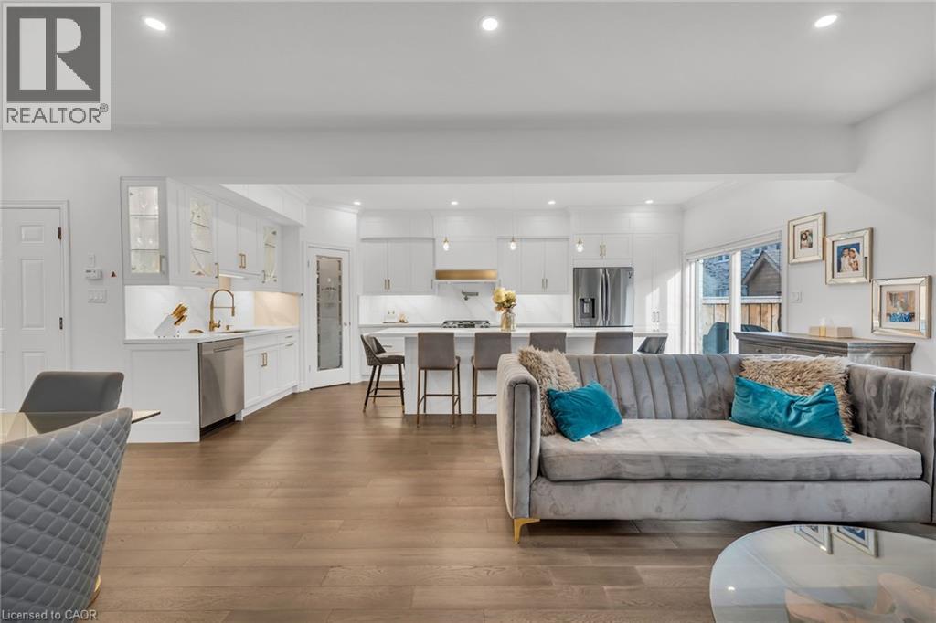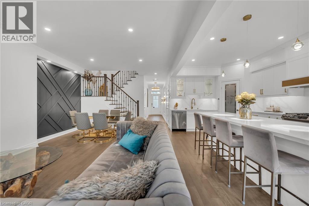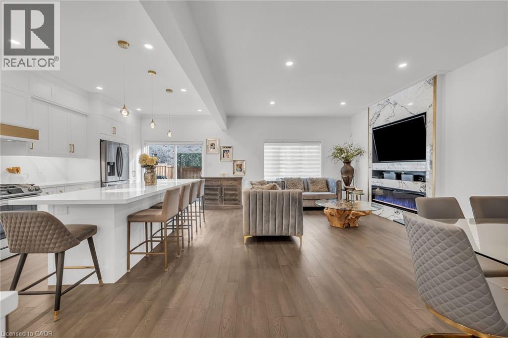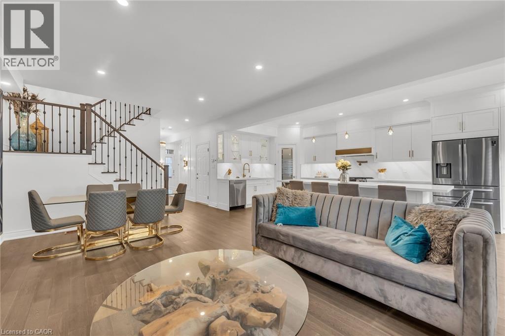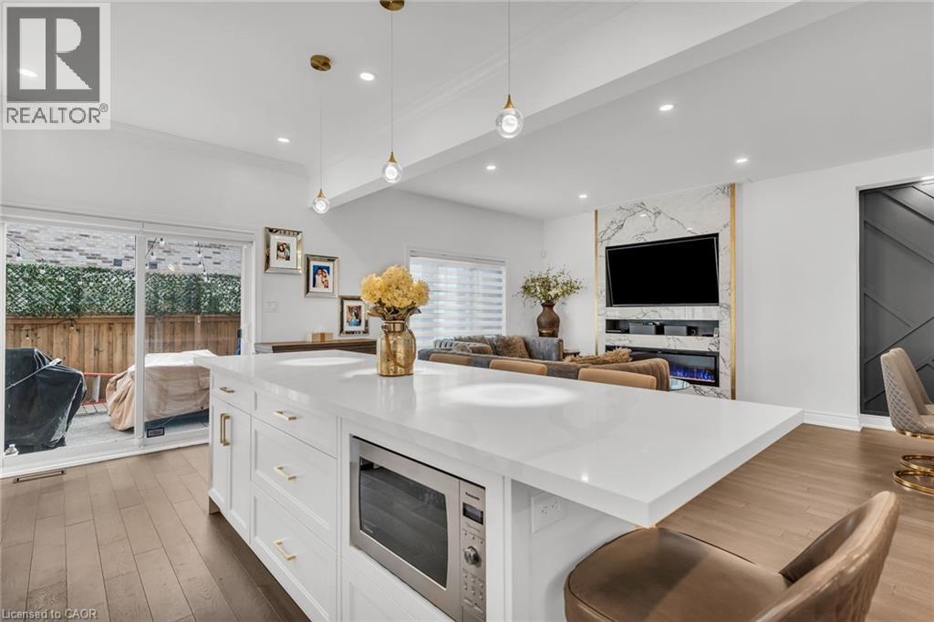 Luxury Lakefront Living along with Lakeside Trails & Sandy Beach. Main floor Features 9 Foot Ceilings Throughout with Open Concept Main Floor, Private Office Space & custom designer powder room with upgraded light fixtures and cascade window shades add to the upscale feel of the home. The custom kitchen is a chef's dream, with quartz counters, custom backsplash, under valance lighting, pantry, pot filler, glass Rinser, garburator, huge Island with storage & all stainless-steel appliances for entertaining indoors. The open concept kitchen area leads to the fully fenced maintenance free yard complete with concrete floors, outdoor island, mini fridges, string lights & greenery for privacy. A perfect spot to relax or enjoy the company of family and friends. Leading via oak stairs with iron pickets to the 2nd floor you have the convenience of laundry room with custom cabinets and custom walk in closet. The primary bedroom is spacious with views of the lake, spa like ensuite bath with separate tub and glass shower and a separate huge custom made walk in closet. An additional main bath with 2 spacious bedrooms with pot lights & Cascade window shades complete the upper level. The whole house is carpet free and the paint used on walls is Scuff-X from Benjamin Moore. Close to HWY and New GO Station. Parking for 3 cars. (id:4555)