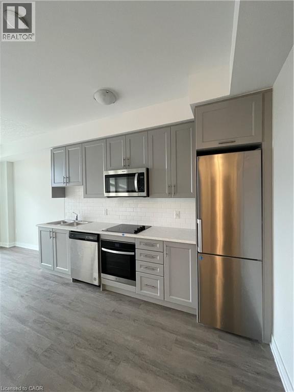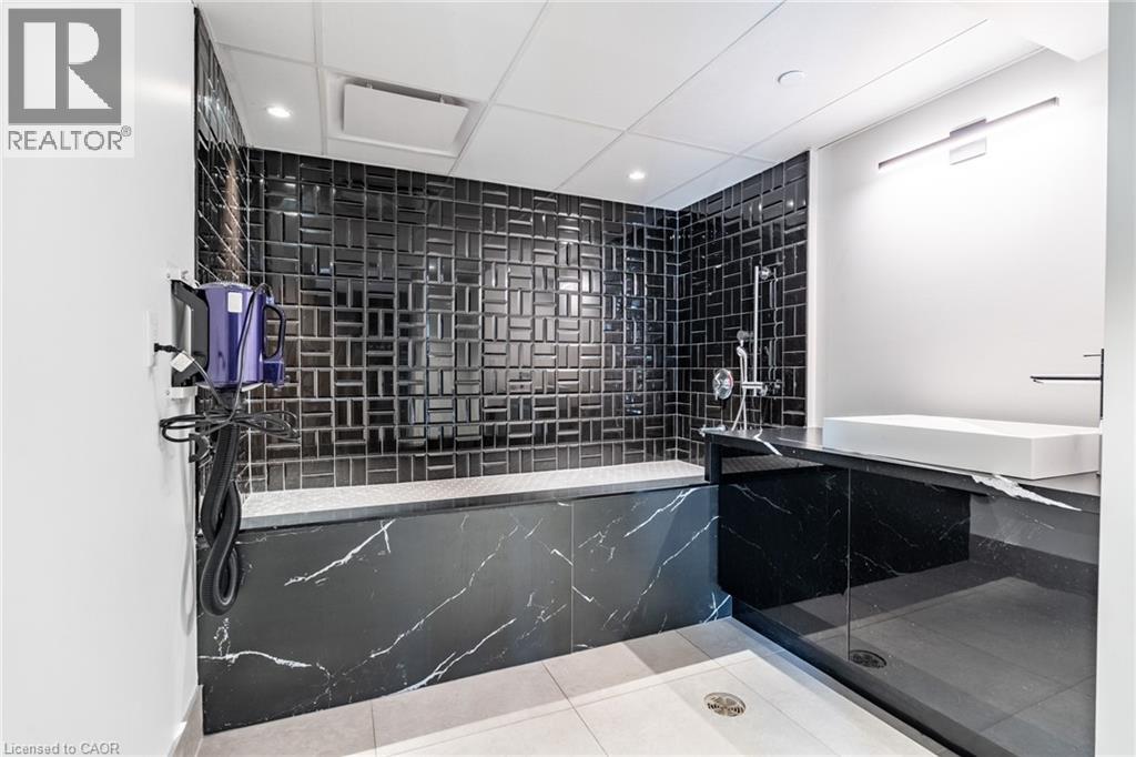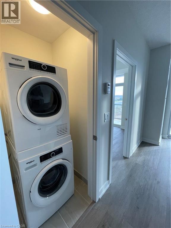 Welcome to this charming one-bedroom, one-bathroom suite, boasting 9-foot ceilings, a modern kitchen equipped with a five-piece appliance package, a sleek glass shower, and attractive vinyl plank flooring throughout. Enjoy the convenience of an in-suite washer and dryer, and step out onto the 80-square-foot balcony for fresh air and relaxation. Here, this suite offers an array of enticing amenities, including a rooftop terrace with barbecue grills, comfortable seating, and breathtaking views of Lake Ontario. You'll also have access to a media room, a spacious party room, a pet grooming spa, an on-site dog park, and secure bicycle storage. Located conveniently near the QEW highway, 1 surface parking and 1 locker included. (id:4555)