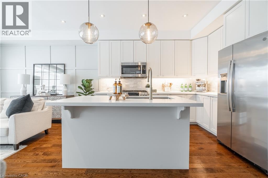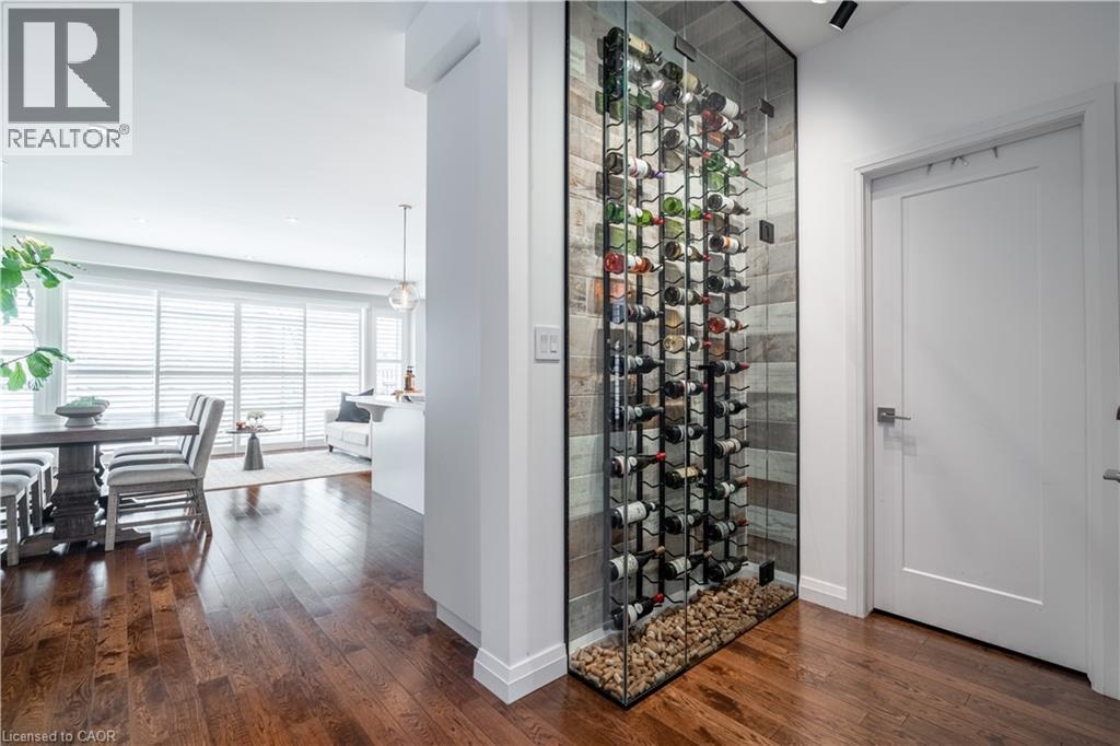 Welcome to this beautifully upgraded end-unit townhome offering 3 bedrooms and 4 bathrooms, thoughtfully designed for modern living with timeless style. Hardwood flooring throughout, 9-foot ceilings, and California shutters on every window create a bright and inviting atmosphere filled with natural light. The chef-inspired kitchen features stainless steel appliances and quartz countertops, ideal for both everyday living and entertaining. The upper level offers a spacious primary bedroom with a custom walk-in closet and private ensuite, while the top-floor family room opens to a private rooftop terrace—perfect for hosting or enjoying a quiet morning coffee. The carefully renovated basement includes a full bathroom, ample storage, and versatile space ideal for a second suite, home office, gym, or additional living area. Outside, relax in a serene, private backyard offering a peaceful outdoor escape. Exceptional upgrades include luxury wall paneling, a custom one-of-a-kind wine cellar, a striking powder room with imported stone, smart home technology, and an EV charger, all coming together to complete this exceptional home. (id:4555)