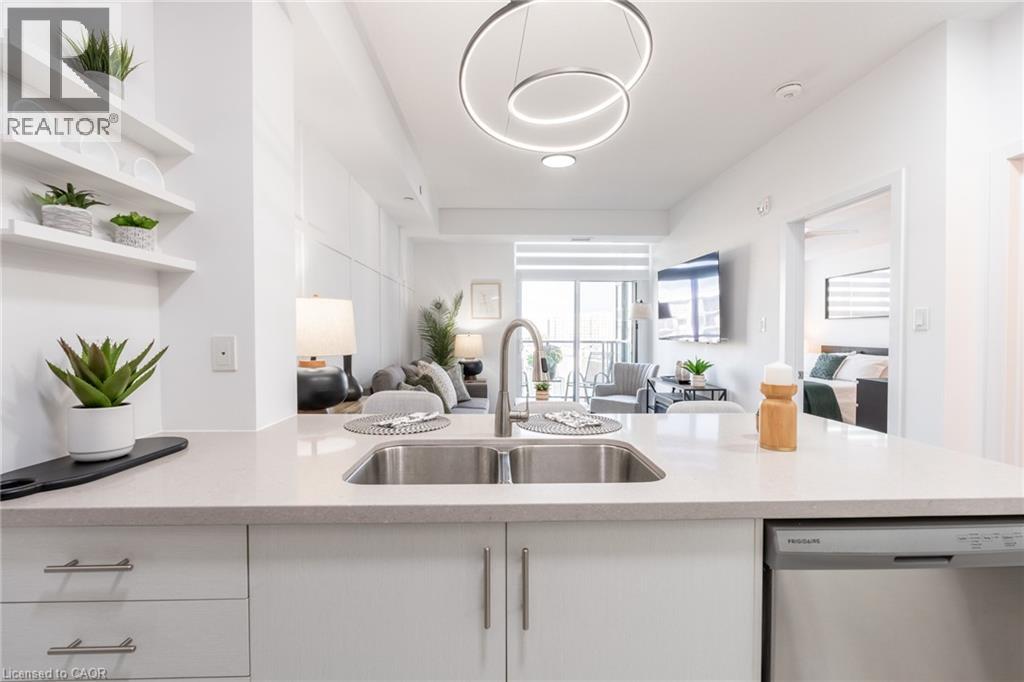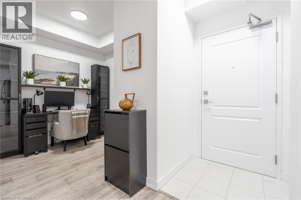 This 668 square foot lakeside condo in the Community Beach area of Stoney Creek combines style and convenience. It features a bright, open layout with one bedroom and a flexible den—perfect for a home office or reading nook. The modern kitchen is equipped with quartz countertops, subway tile backsplash and stainless-steel appliances, while the living room is highlighted by a stylish feature wall. The primary bedroom comes with a walk-in closet and ceiling fan and the bathroom includes a quartz vanity. Not to be missed are the updated light fixtures, laminate floors that provide warmth and ease of maintenance, and floor-to-ceiling windows providing loads of natural sunlight. Step out onto your private balcony where you can take in views of Lake Ontario. Step out onto your private balcony where you can take in views of Lake Ontario. Residents can enjoy building amenities such as a rooftop patio, gym, and a party room for gatherings. This unit comes with one underground parking space and one locker. You’ll love the location being able to walk along the waterfront, going to the beach and parks and quick access to the highway. Don’t be TOO LATE*! *REG TM. RSA (id:4555)