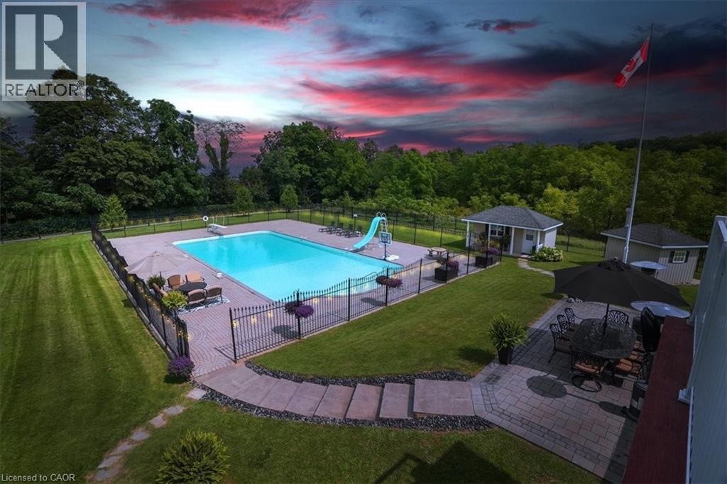 Perched atop the breathtaking Niagara Escarpment, this exceptional home offers seasonal panoramic views of Lake Ontario and the Toronto skyline. Rarely available, it features over 5,100 sq. ft. of beautifully finished living space across three levels, showcasing thoughtful design and custom craftsmanship throughout. Enjoy private access to the Bruce Trail, with waterfalls and scenic hikes just steps from your backyard — a nature lover’s dream without sacrificing city convenience. The main floor blends elegance and warmth with new hardwood floors, a custom staircase, and stylish lighting. A formal living room with a wood-burning fireplace flows into a dining room made for entertaining. The chef-inspired kitchen with custom cabinetry opens to a welcoming family room with a new gas fireplace. Upstairs offers four spacious bedrooms, including a luxurious primary suite with a walk-in closet, spa-like ensuite, and private balcony — perfect for peaceful morning views. The bright, fully finished lower level features large windows, custom woodwork, a gas fireplace, bedroom, kitchenette, and separate entrance, ideal for in-law, nanny, or multi-generational living. Explore the potential to sever a second lot or add an auxiliary unit. Outside, your private retreat awaits with a 30 x 60 in-ground pool (16 ft. deep), wrought iron fencing, pool house, and custom shed — perfect for summer entertaining. Recent updates include power blinds, 2023 HVAC systems, refreshed porch, and pool and landscape upgrades. A rare escarpment gem where nature, privacy, and luxury meet. (id:4555)