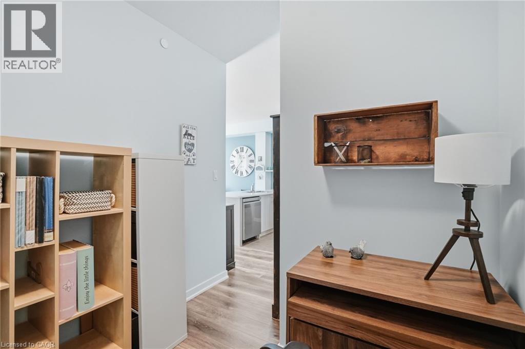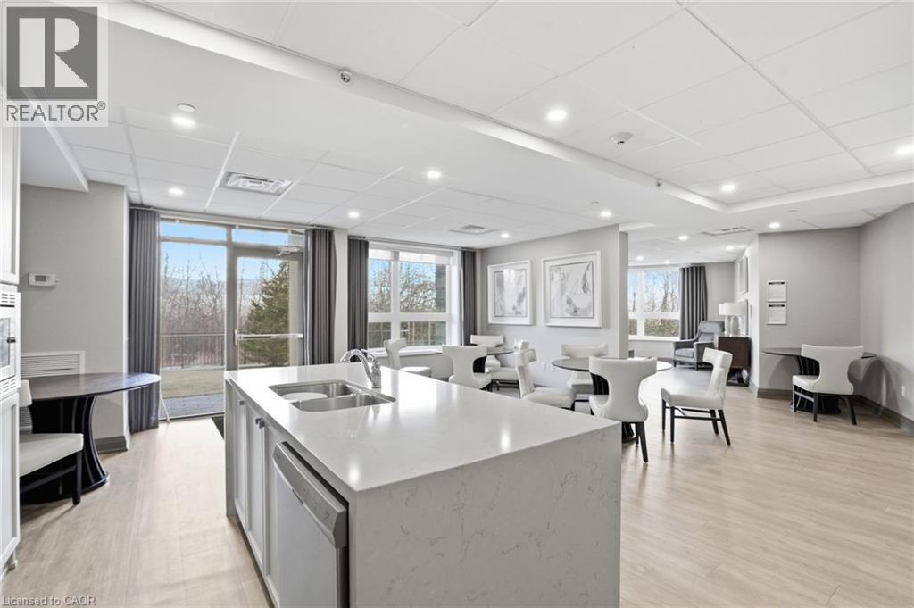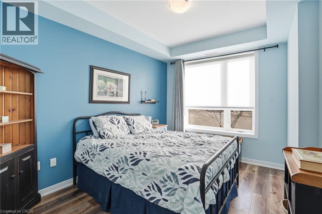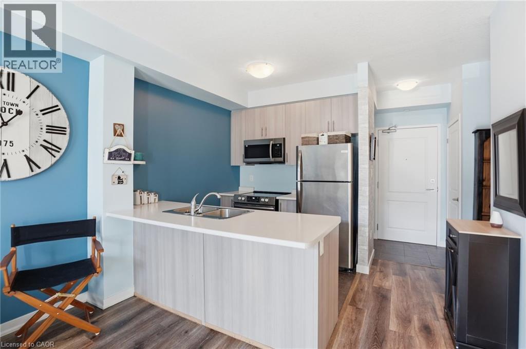 Situated along the shores of Lake Ontario, this beautifully maintained 1 bedroom + den suite offers the perfect blend of comfort and convenience. Ideally located on the main level, this carpet free home is perfect for easy everyday living; no elevators to wait for when unloading groceries, bringing in packages, or welcoming guests. The open-concept kitchen features stainless steel appliances and breakfast bar seating, flowing seamlessly into the bright living area with sliding doors leading to your private patio, ideal for morning coffee or stepping out for a sunset stroll along the waterfront trails. The spacious primary bedroom includes a walk-in closet, while the versatile den makes an excellent home office or guest space. A 4-piece bathroom and in-suite laundry add to the practical layout. Sapphire residents enjoy exceptional amenities including a rooftop terrace with breathtaking lake views, fitness centre, party room, bicycle storage, underground parking, storage locker, and ample visitor parking. Expansive green space surrounds the building, with walking and biking trails at your doorstep and the sandy beach just a two-minute walk away. With quick QEW access and everyday amenities nearby, this is low-maintenance waterfront living designed for ease. Move in, unpack, and enjoy the lake. (id:4555)
