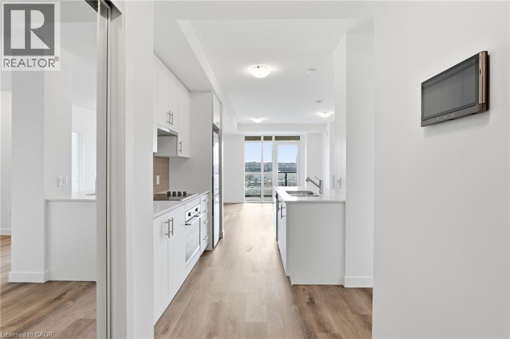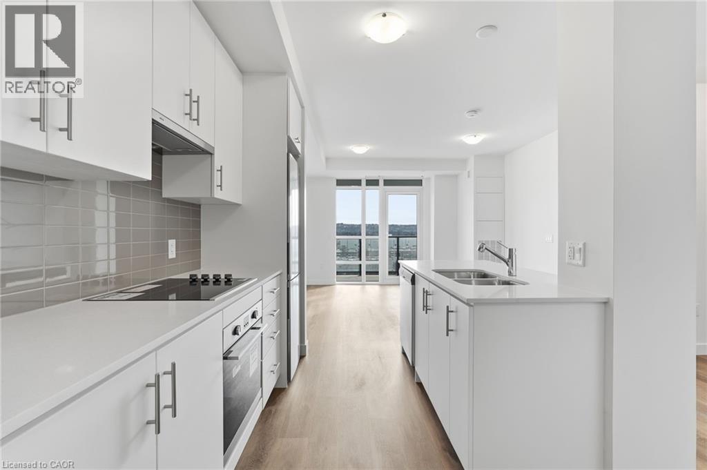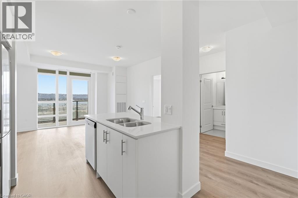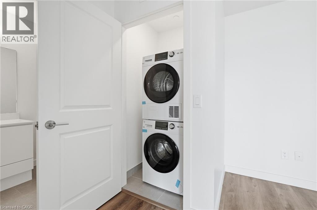 Beautiful 8th floor suite in the brand new Muse building in lower Stoney Creek. Bright, open concept with lovely flow throughout and plenty of great sized nooks for maximum use of space. 1 bedroom with 1 underground parking space and storage locker. Efficient Geo-Thermal heating & cooling. Upgraded kitchen with quartz counters & tiled backsplash with convenient breakfast island and spacious bathroom with generous storage space. Stacked laundry in main area. High ceilings, floor to ceiling windows with custom blinds included. All appliances included. Balcony has clear views of the escarpment across the whole extra long terrace. Amenities include: exercise room, party room, rooftop patio with BBQ area for your enjoyment. Steps away from the lake and local park. Minutes to Confederation parks, trails, bike paths, and restaurants! Easy access to QEW, shopping and entertainment! (id:4555)