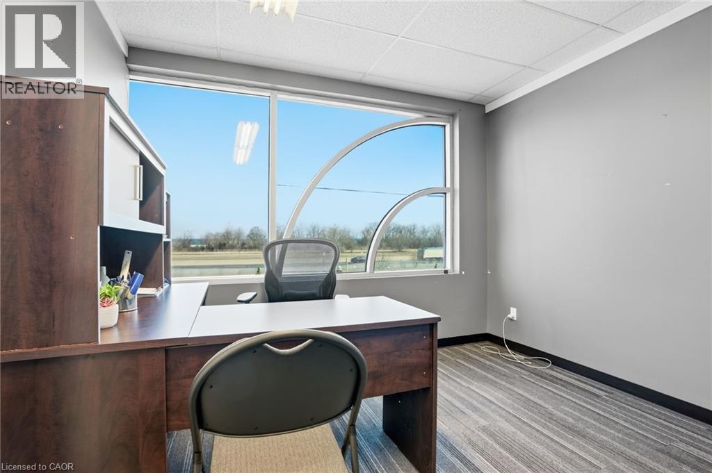 Upper floor office and showroom space available for lease, offering an abundance of natural light throughout. Ideally positioned along the QEW, this location provides direct highway access and outstanding visibility, making it well suited for a variety of professional or showroom uses. The current layout features two private offices and a large finished open workspace or showroom area, creating a flexible environment for collaborative work, client meetings, or product display. Large windows enhance the bright and inviting atmosphere, contributing to a professional setting. The rear portion of the unit offers additional space ideal for storage, or it can be customized and finished to accommodate the specific needs of a new tenant. A prime opportunity for businesses seeking a highly accessible location with strong exposure and adaptable space. (id:4555)